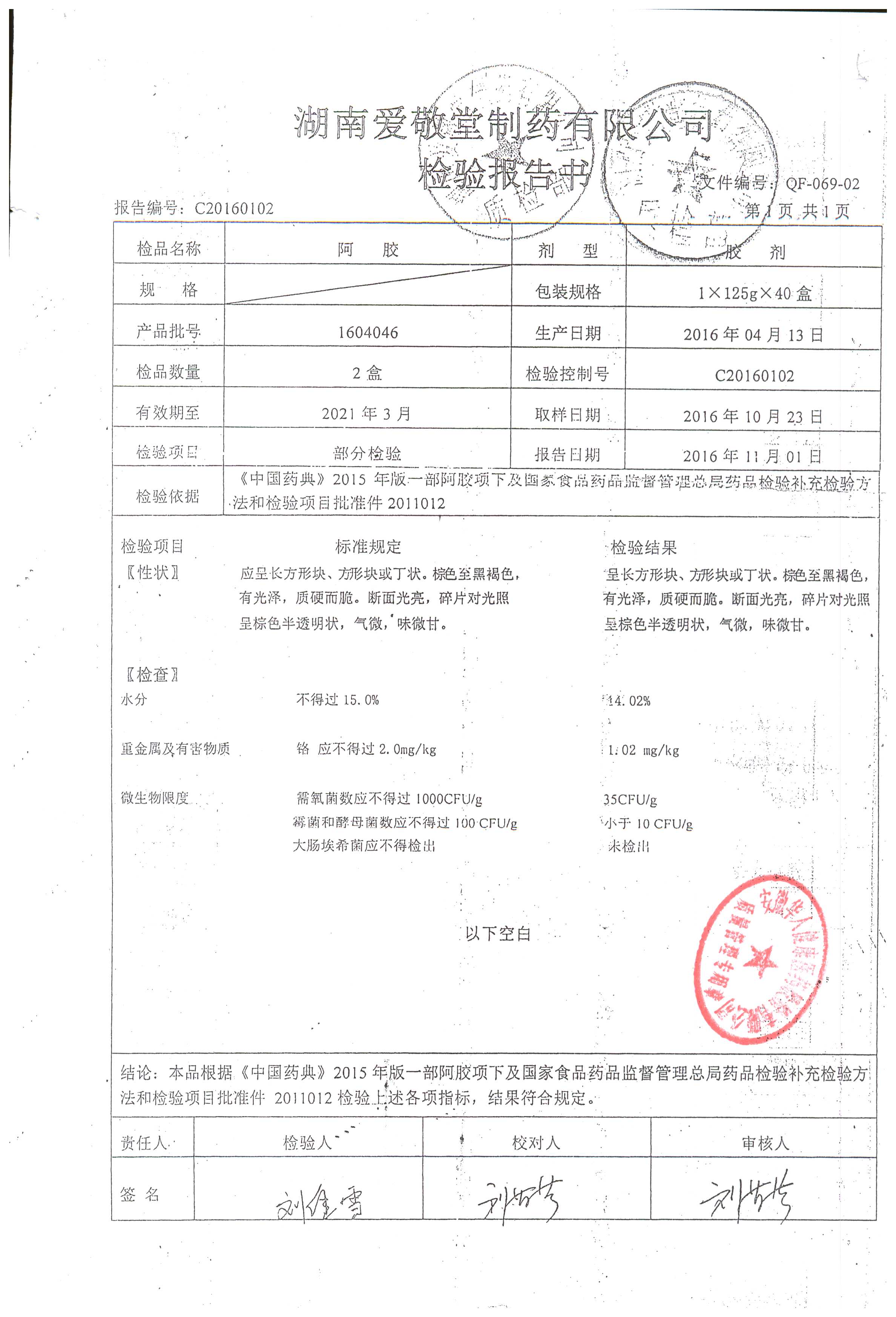 | 阿膠 | 125g/盒 | 161006(2/2) | 查看詳情 |