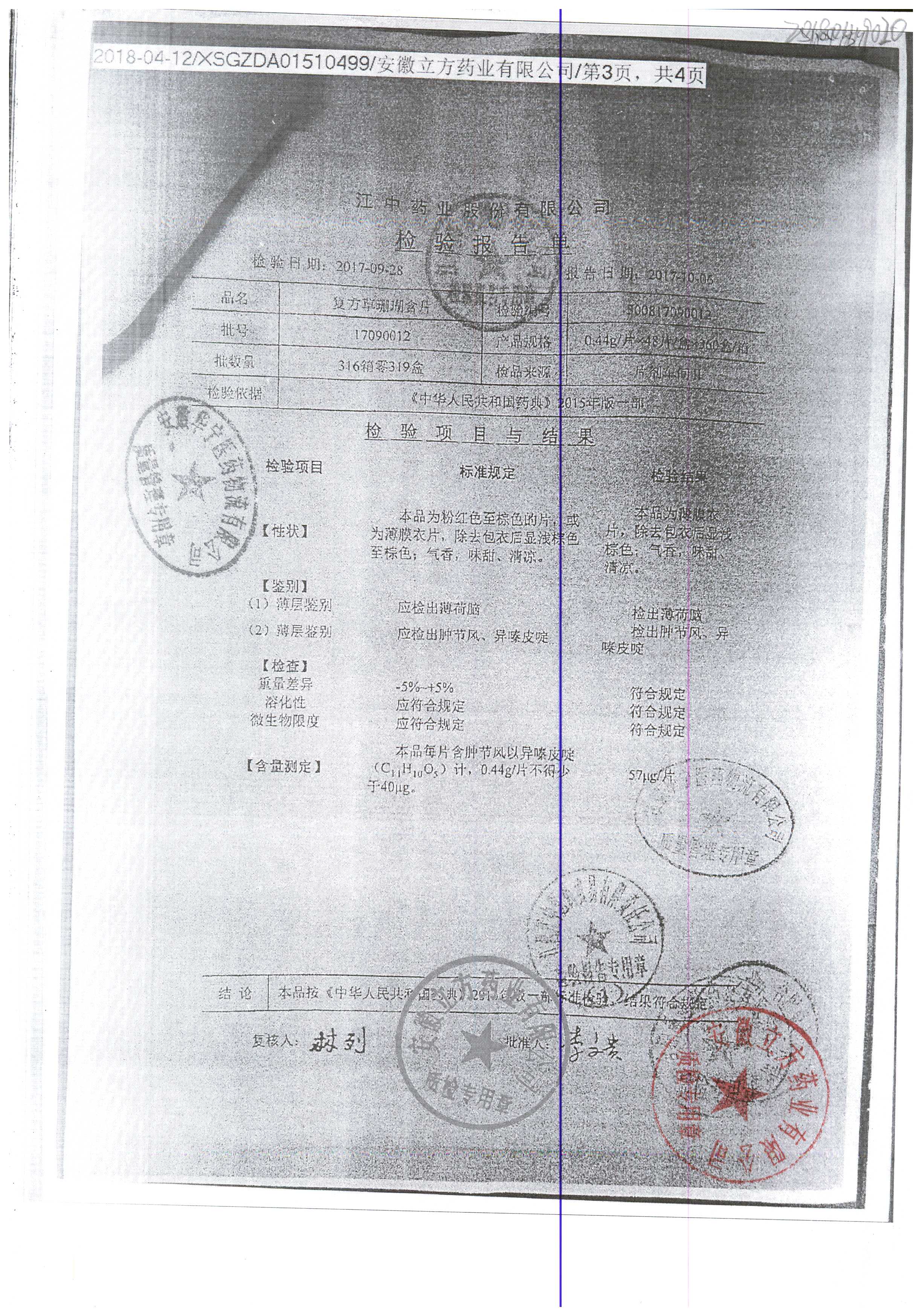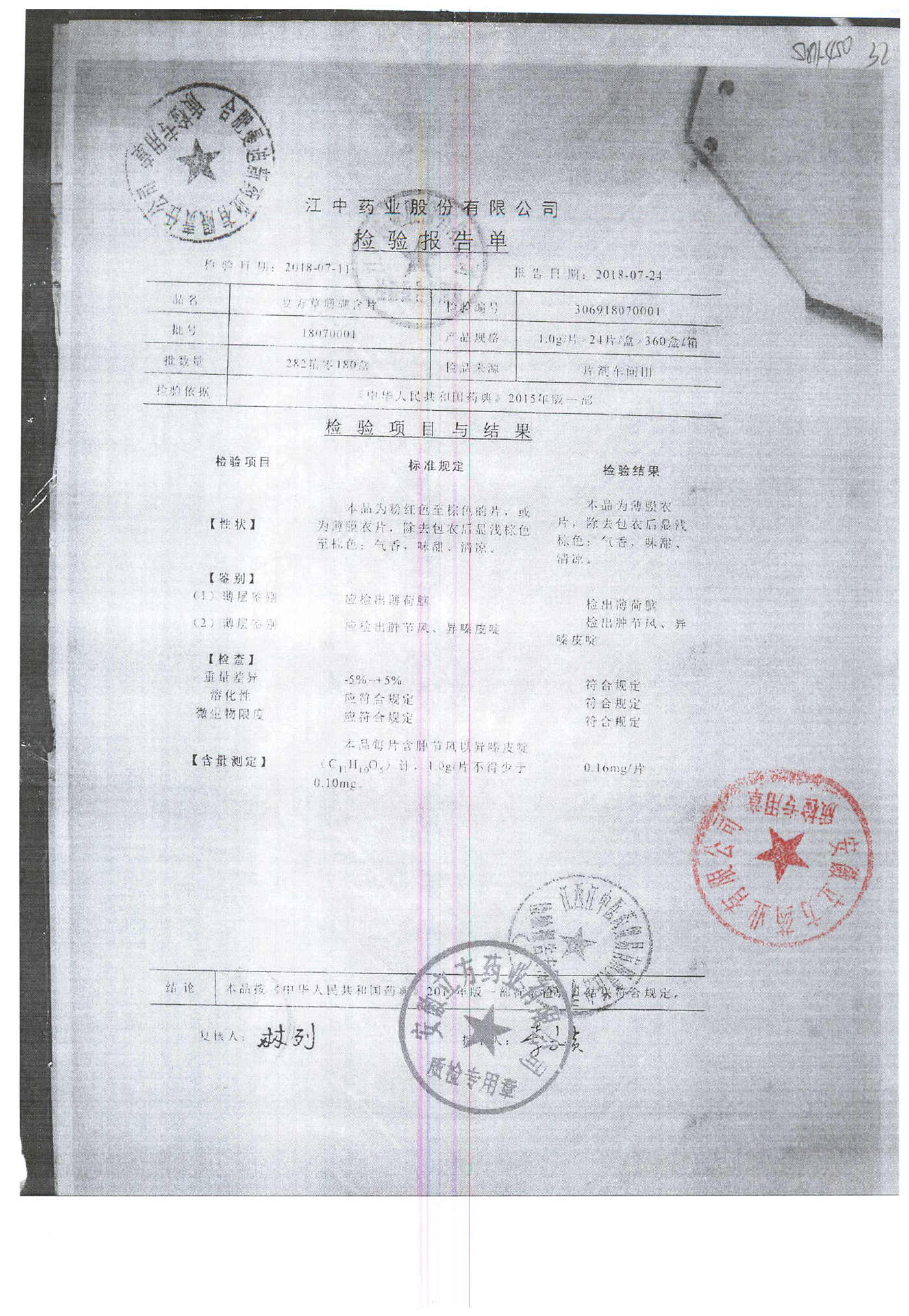 名稱 規格 批號 藥檢報告
