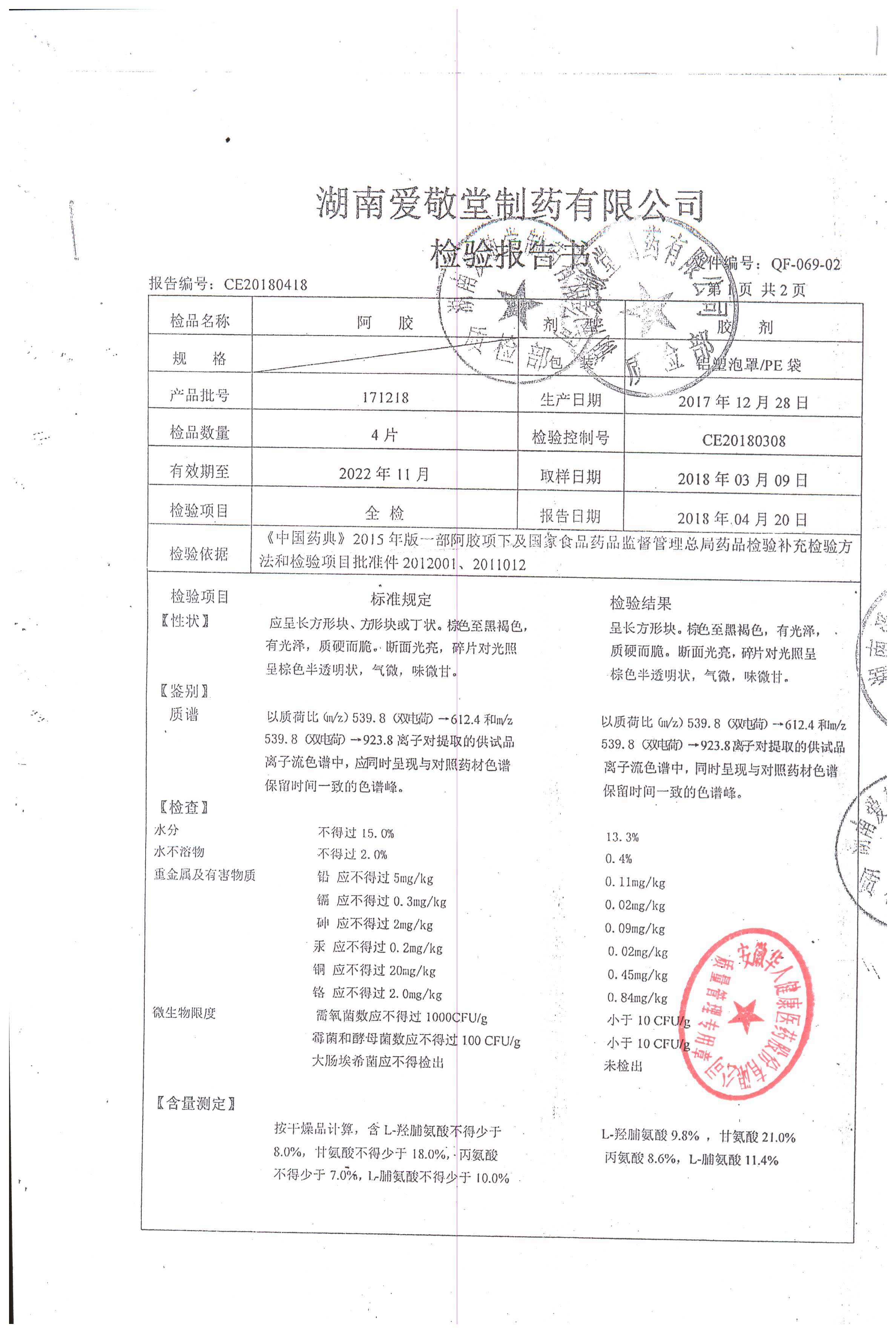 | 阿膠 | 252g/盒 | 170808(2/2) | 查看詳情 |