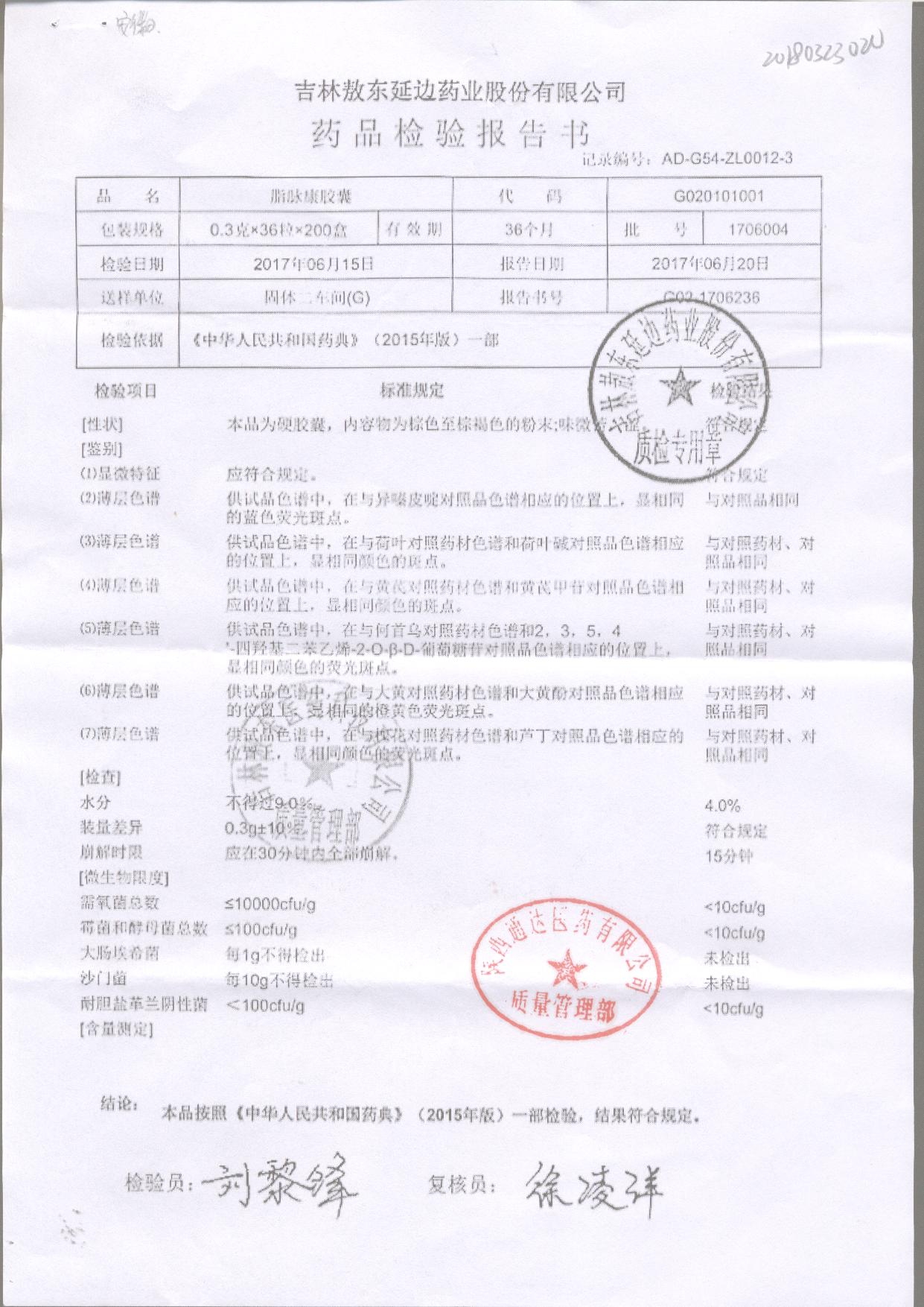 | 脂脈康膠囊 | 0.3g*36s | 2104004 | 查看詳情 |