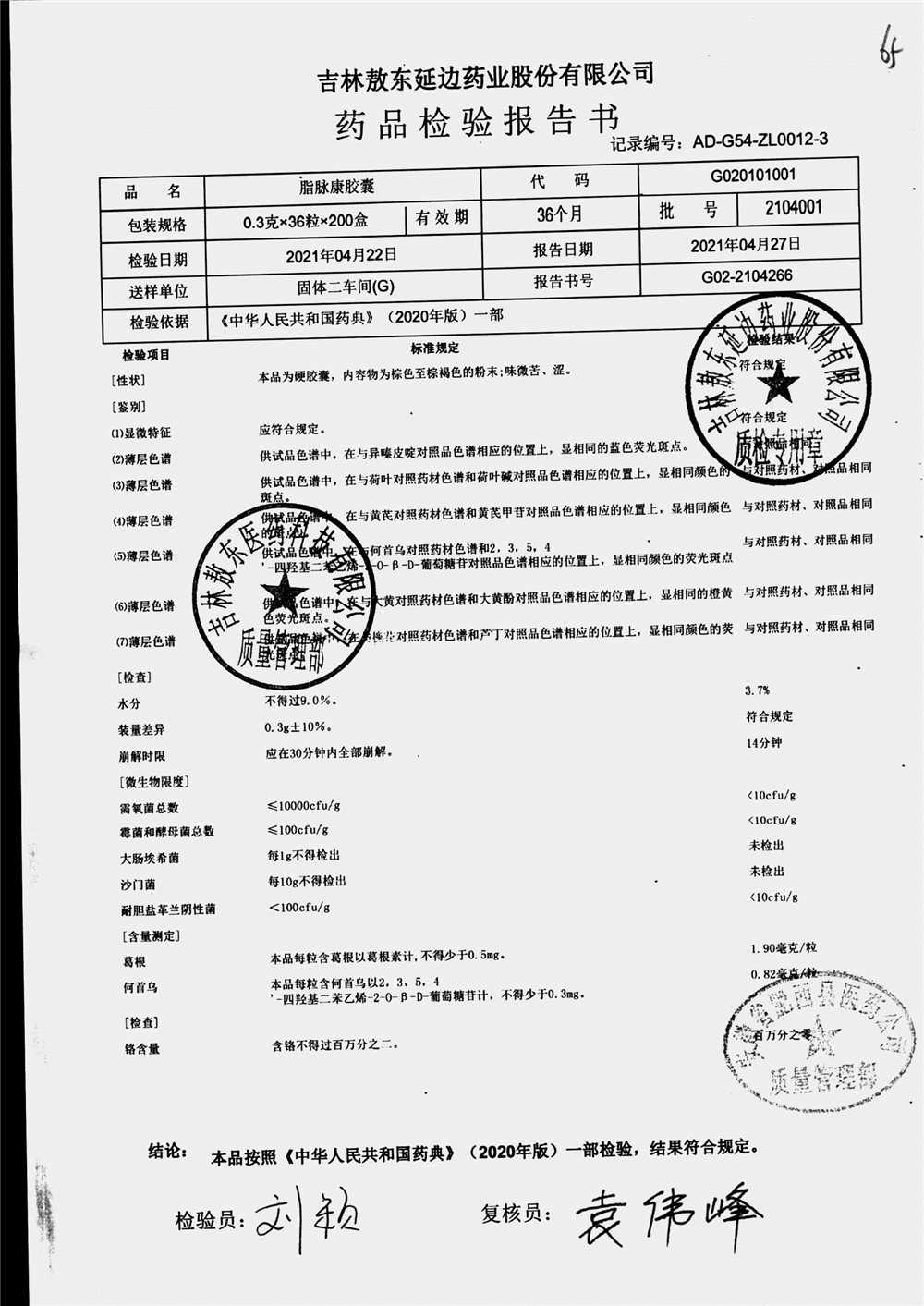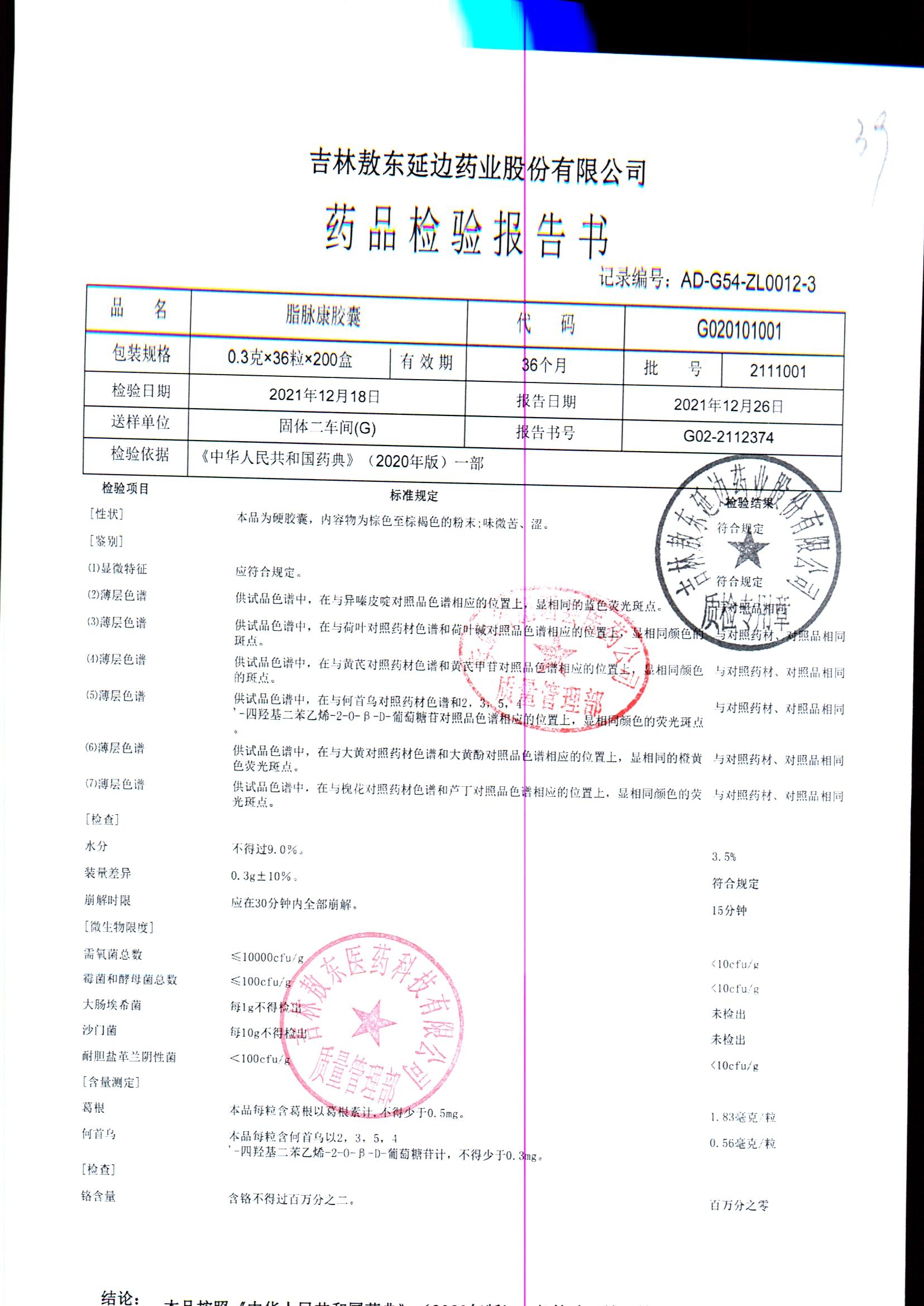 | 脂脈康膠囊 | 0.3g*36s | 2108002 | 查看詳情 |