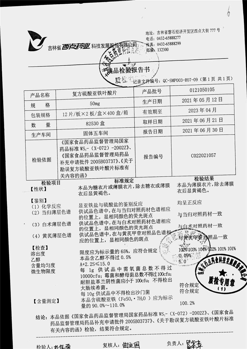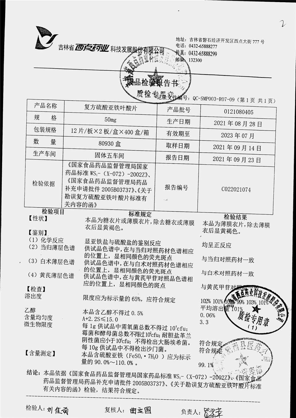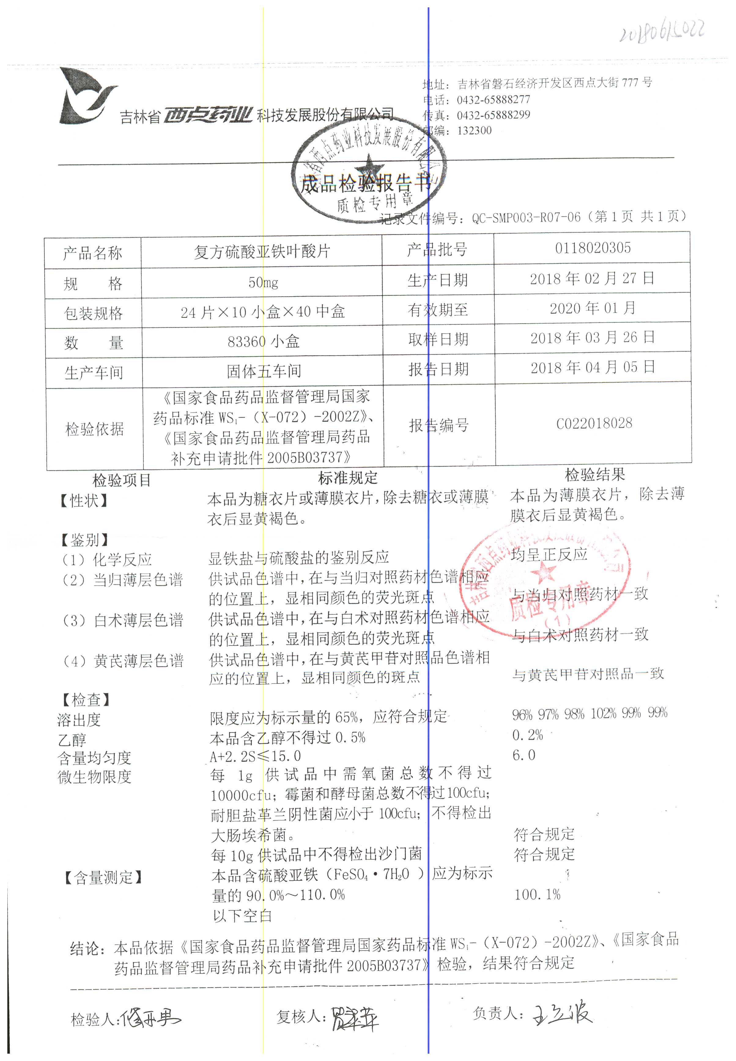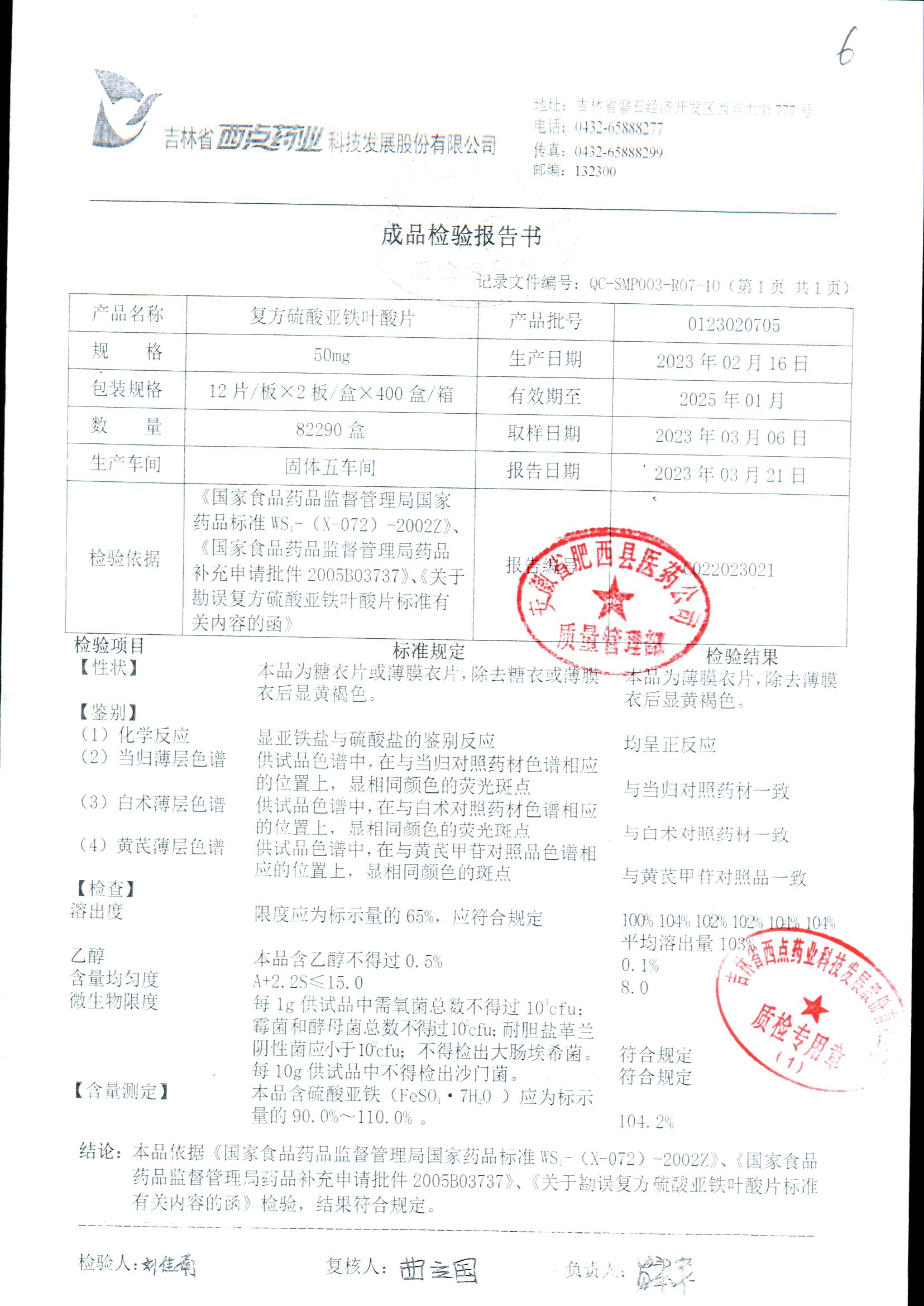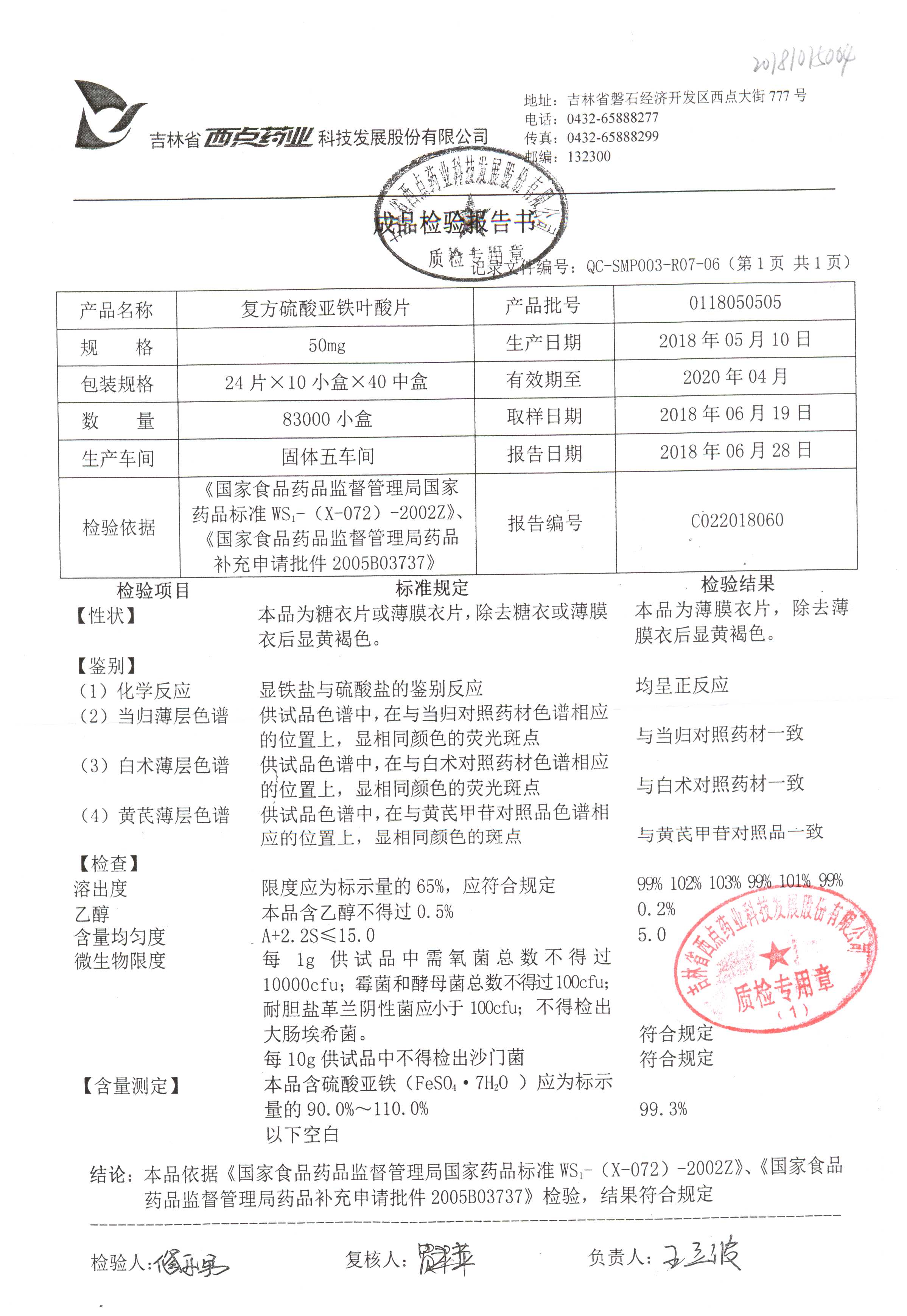 | 復方硫酸亞鐵葉酸片 | 50mg*24s | 0120120705 | 查看詳情 |