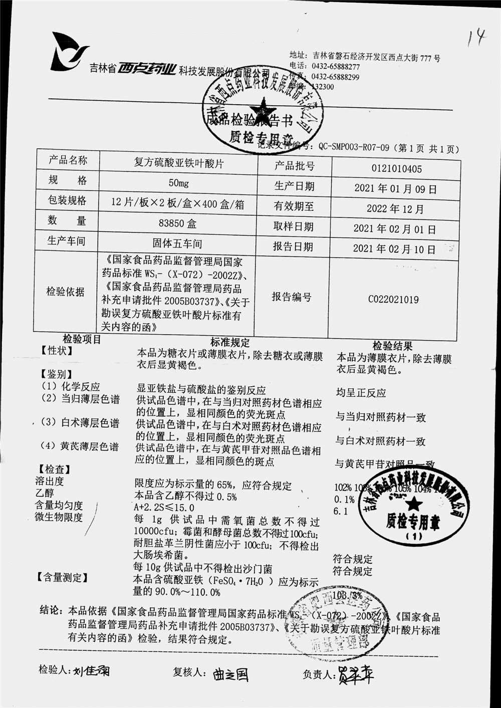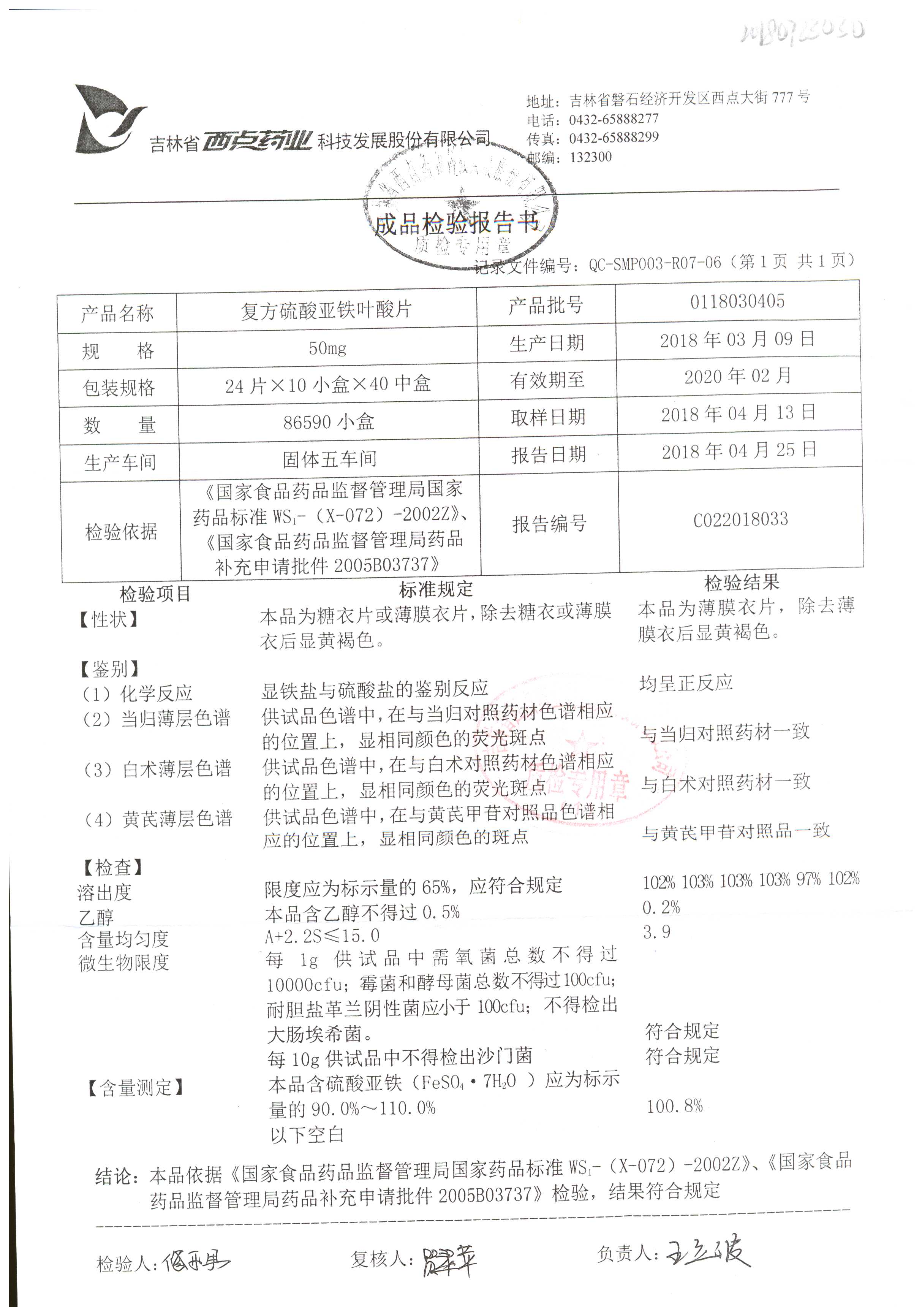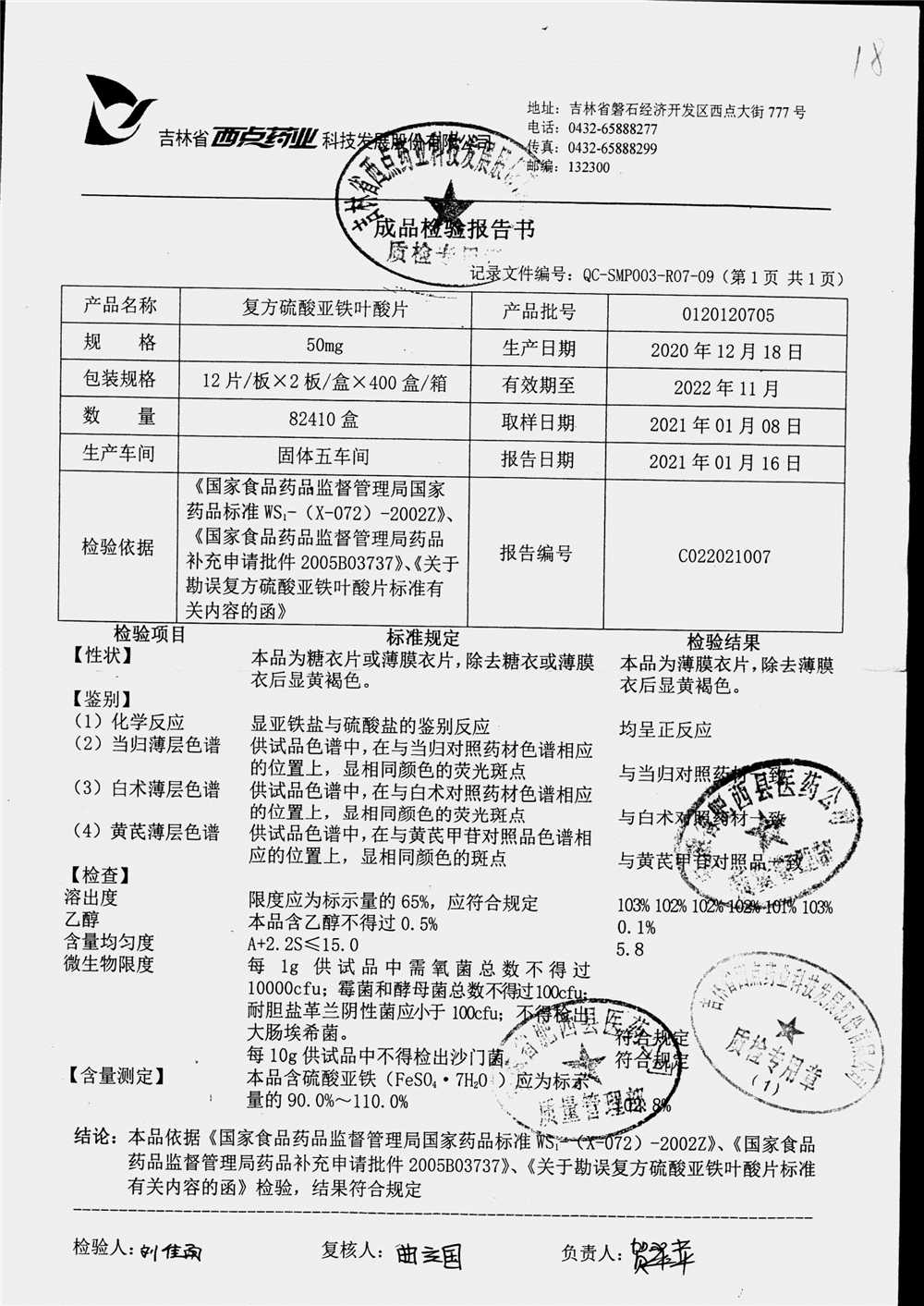 | 復方硫酸亞鐵葉酸片 | 50mg*24s | 0118030405 | 查看詳情 |