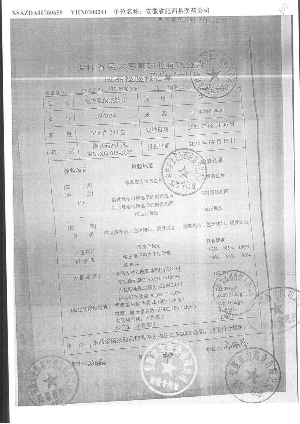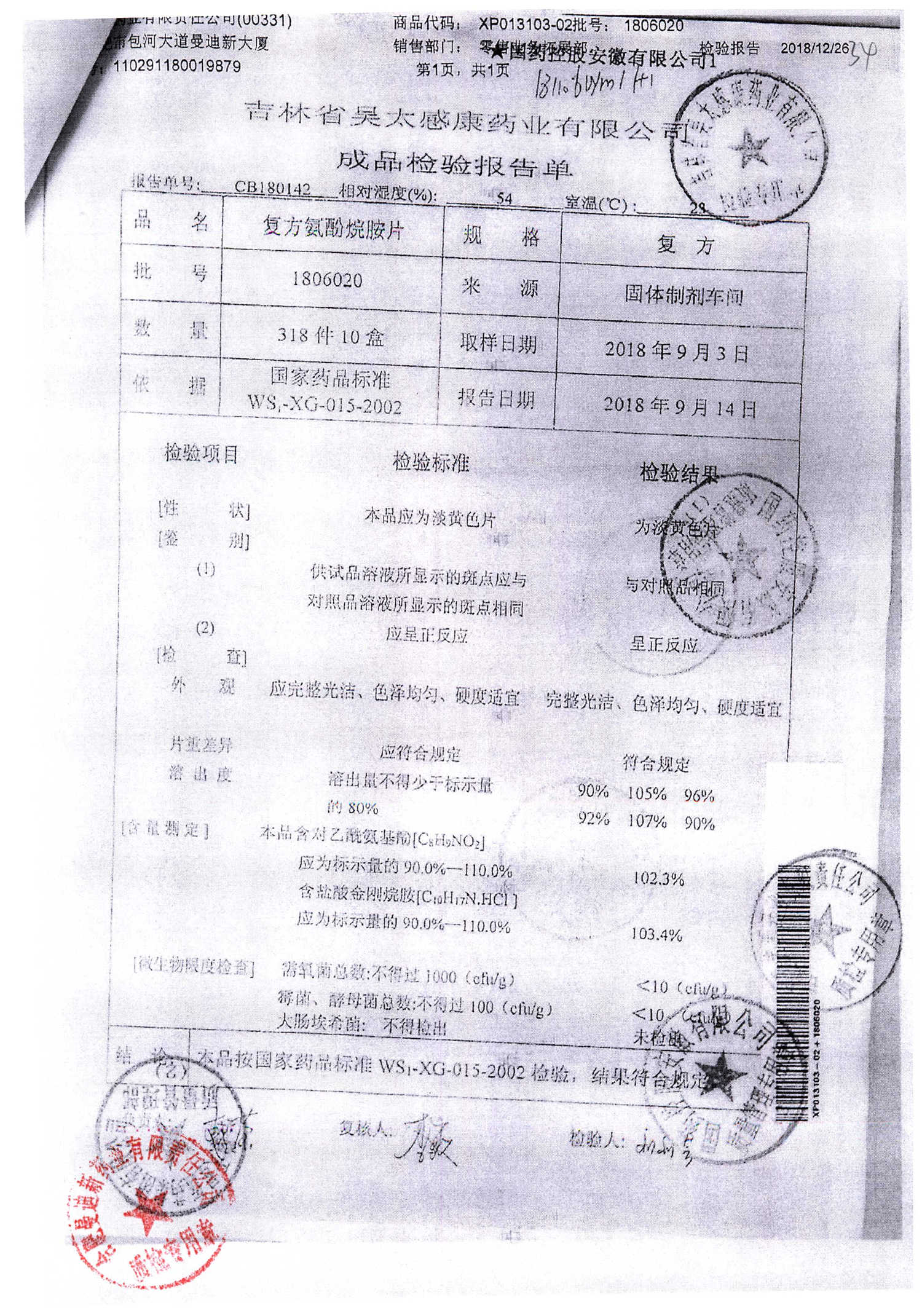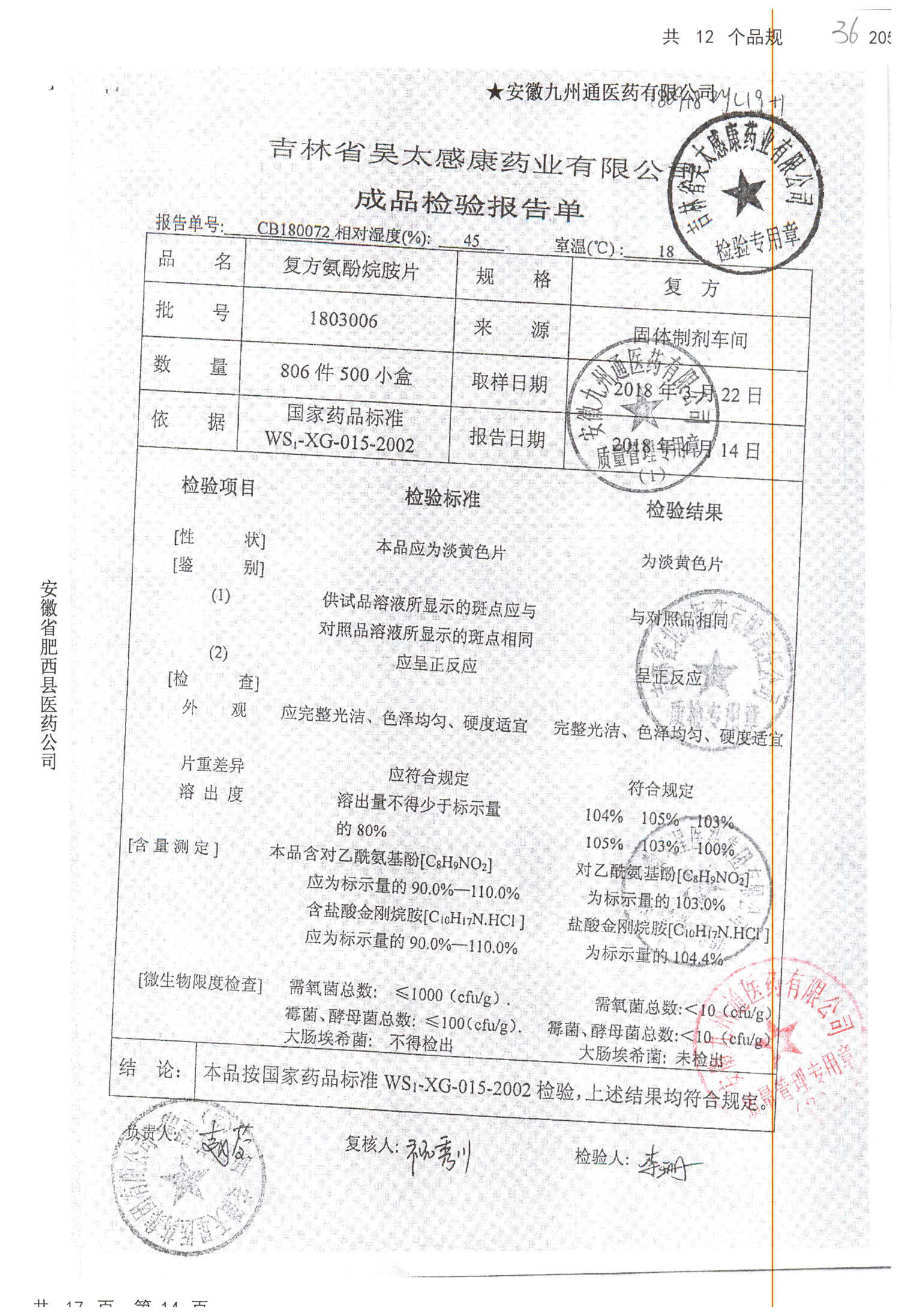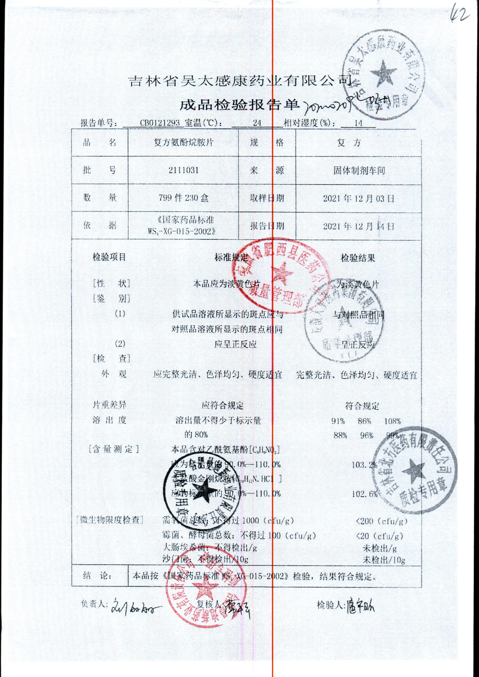 | 復方氨酚烷胺片 | 復方 | X201142 | 查看詳情 |