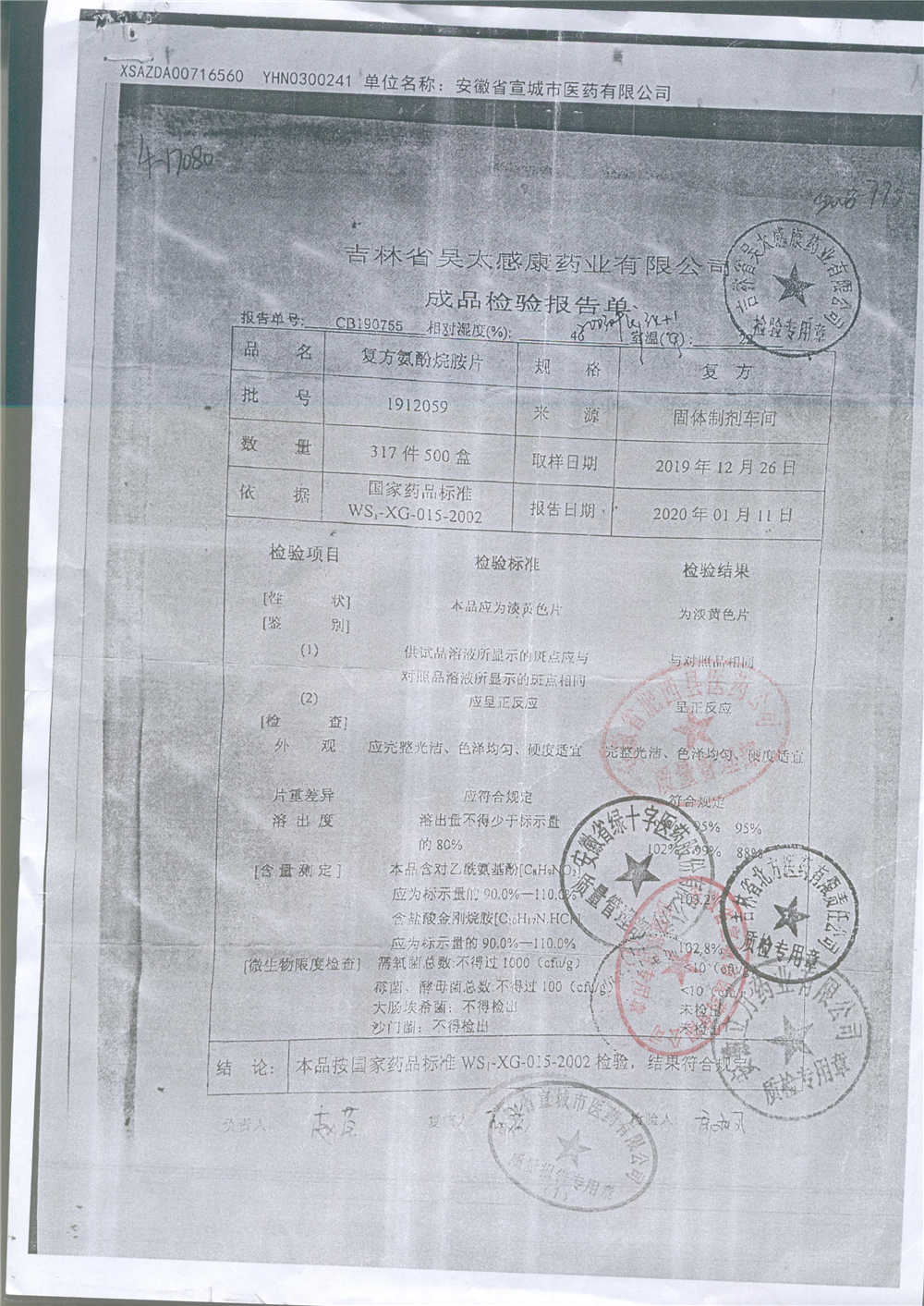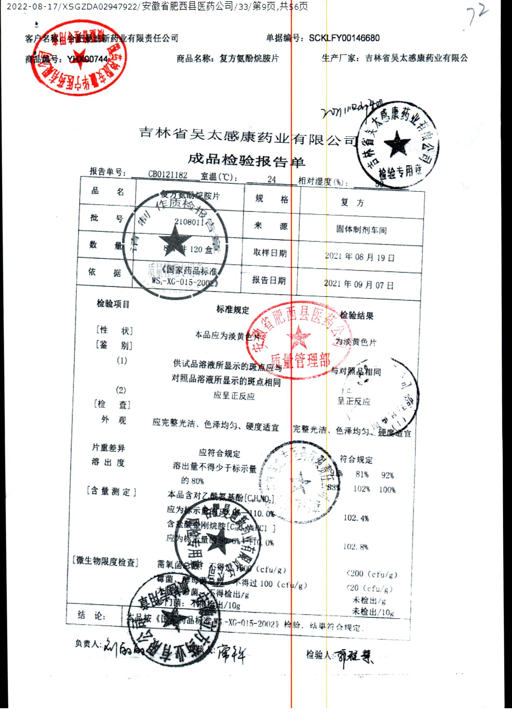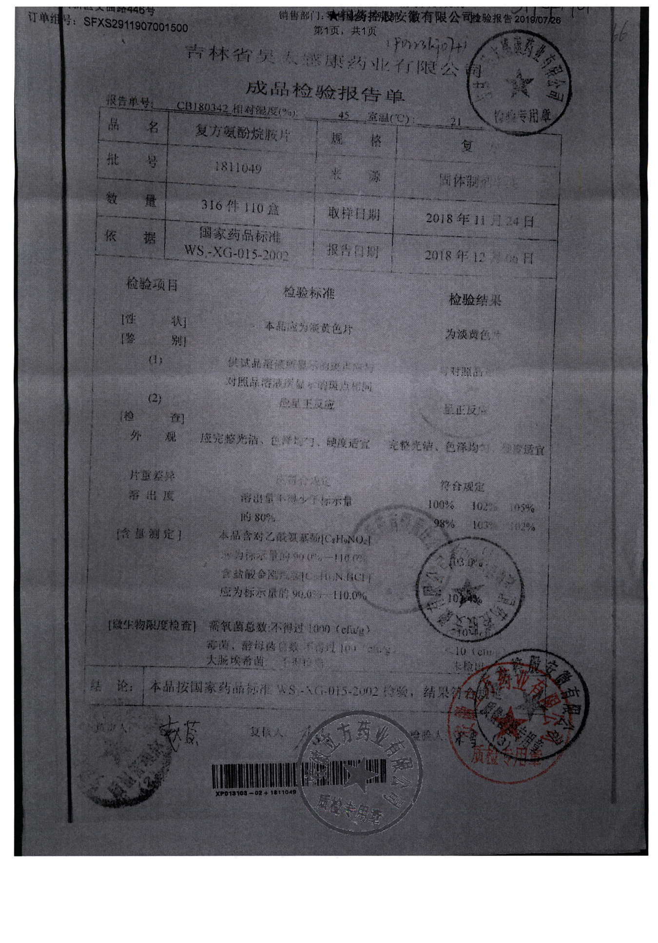 | 復方氨酚烷胺片 | 復方 | X201142 | 查看詳情 |