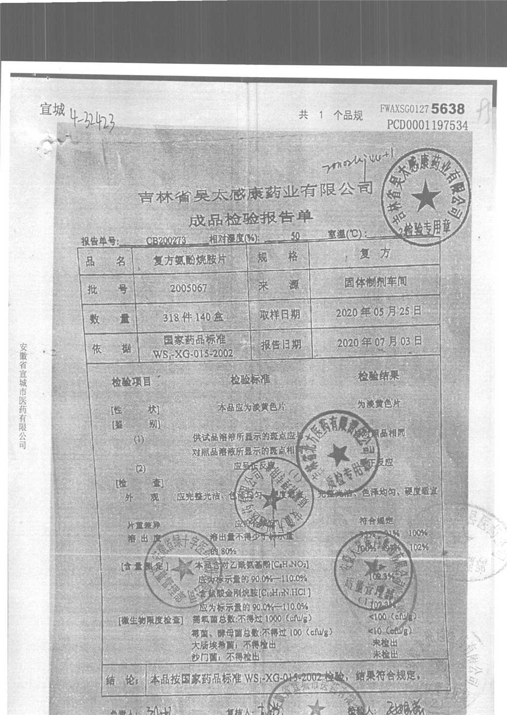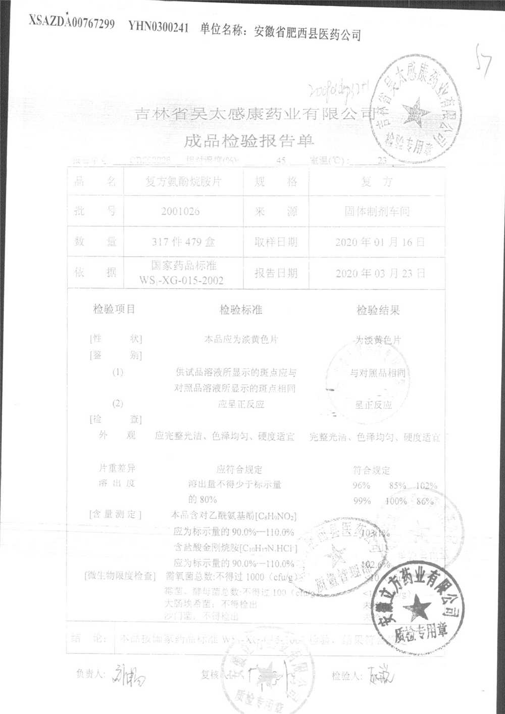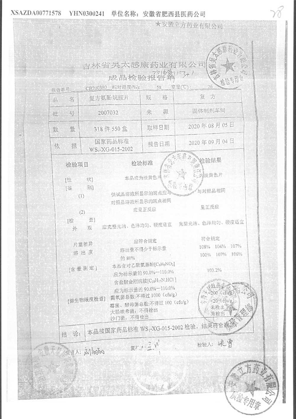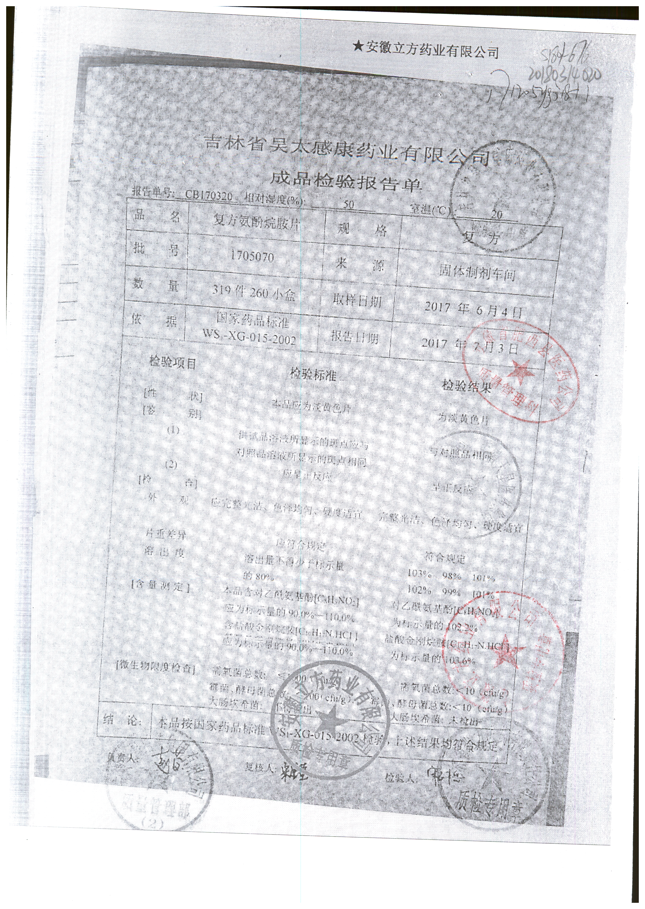 | 復方氨酚烷胺片 | 復方 | X201142 | 查看詳情 |