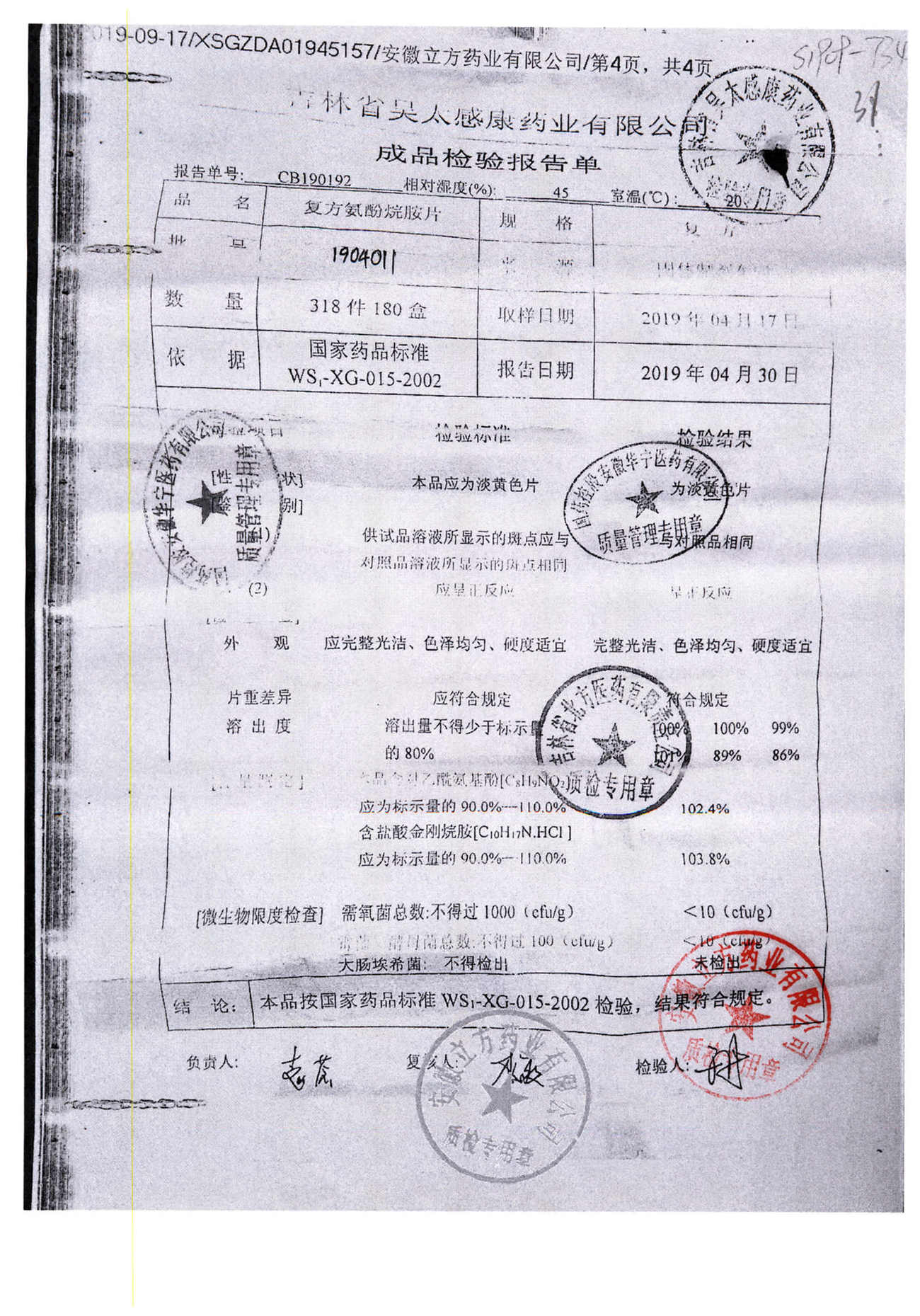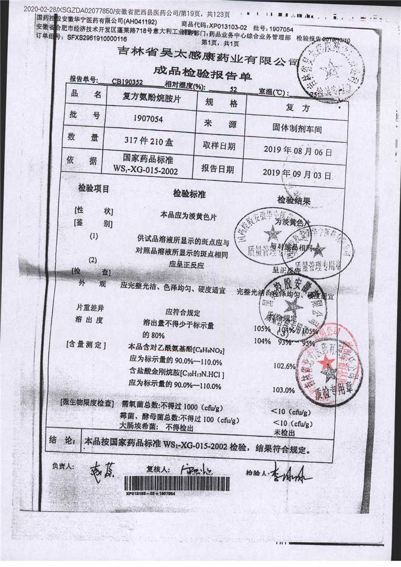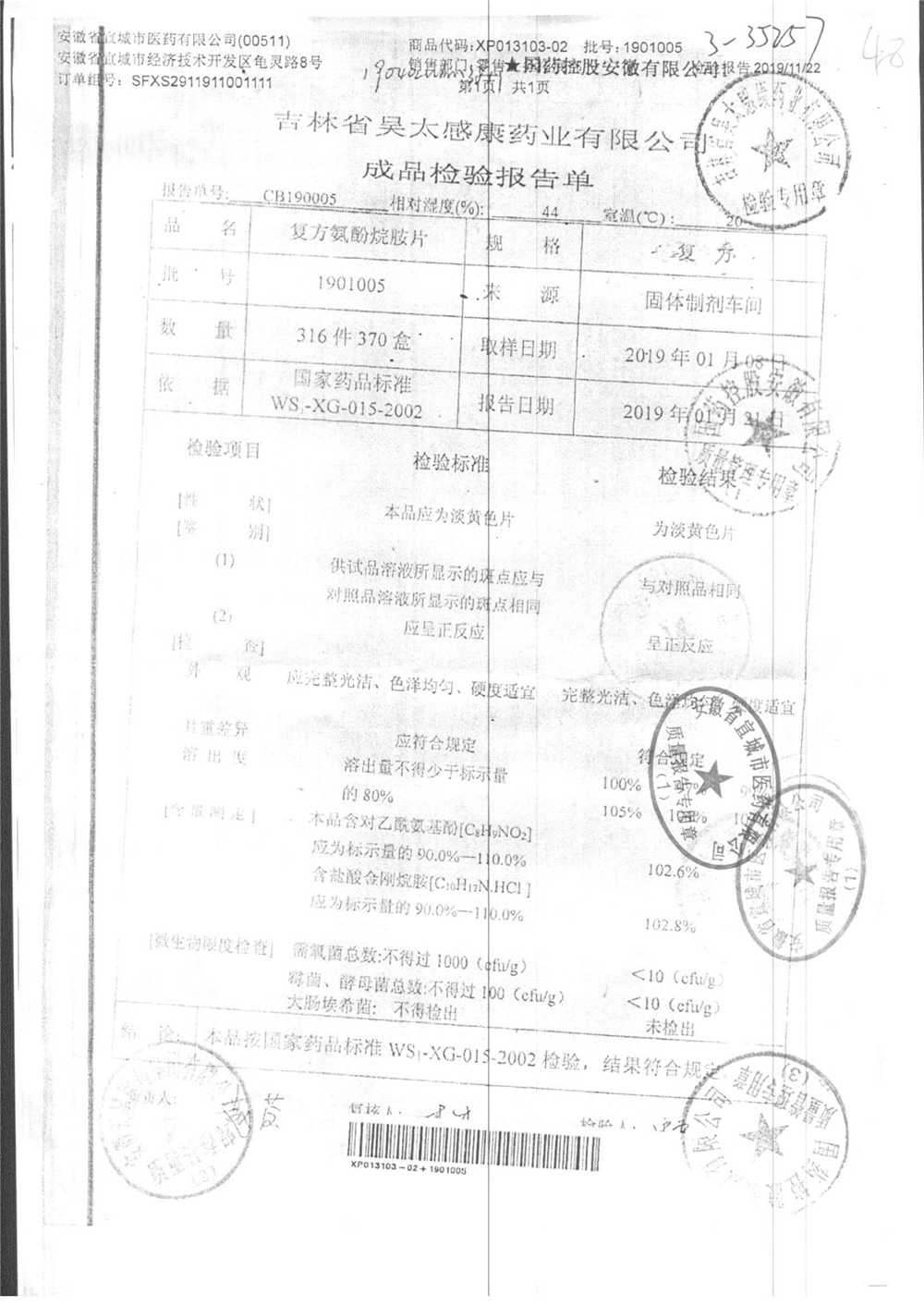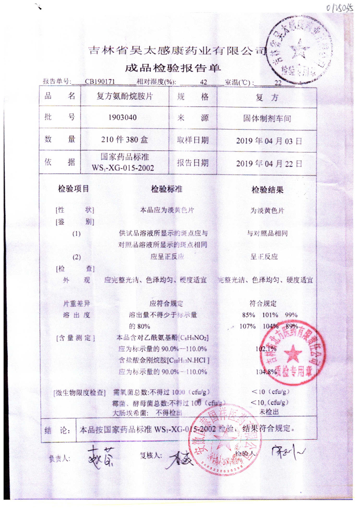| 復方氨酚烷胺片 | 復方 | 1904011 | 查看詳情 |