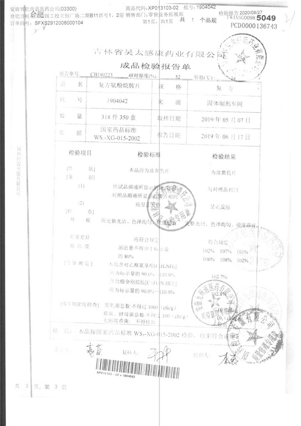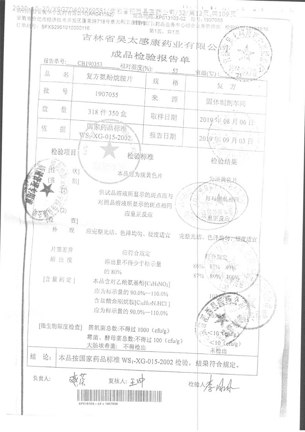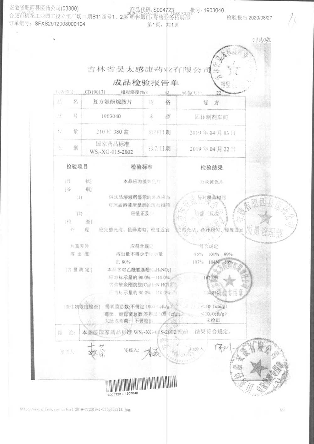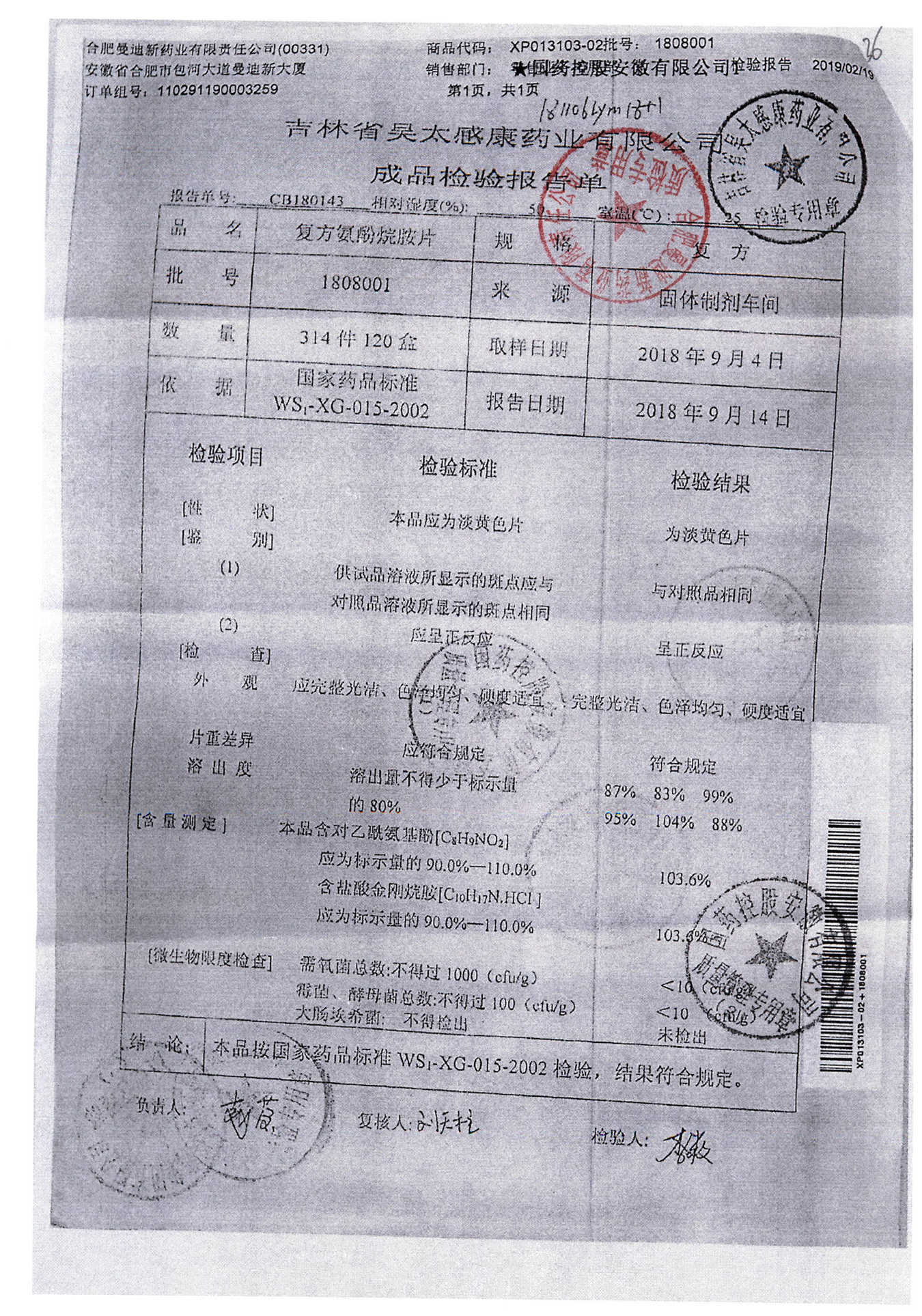 | 復方氨酚烷胺片 | 復方 | 1904011 | 查看詳情 |