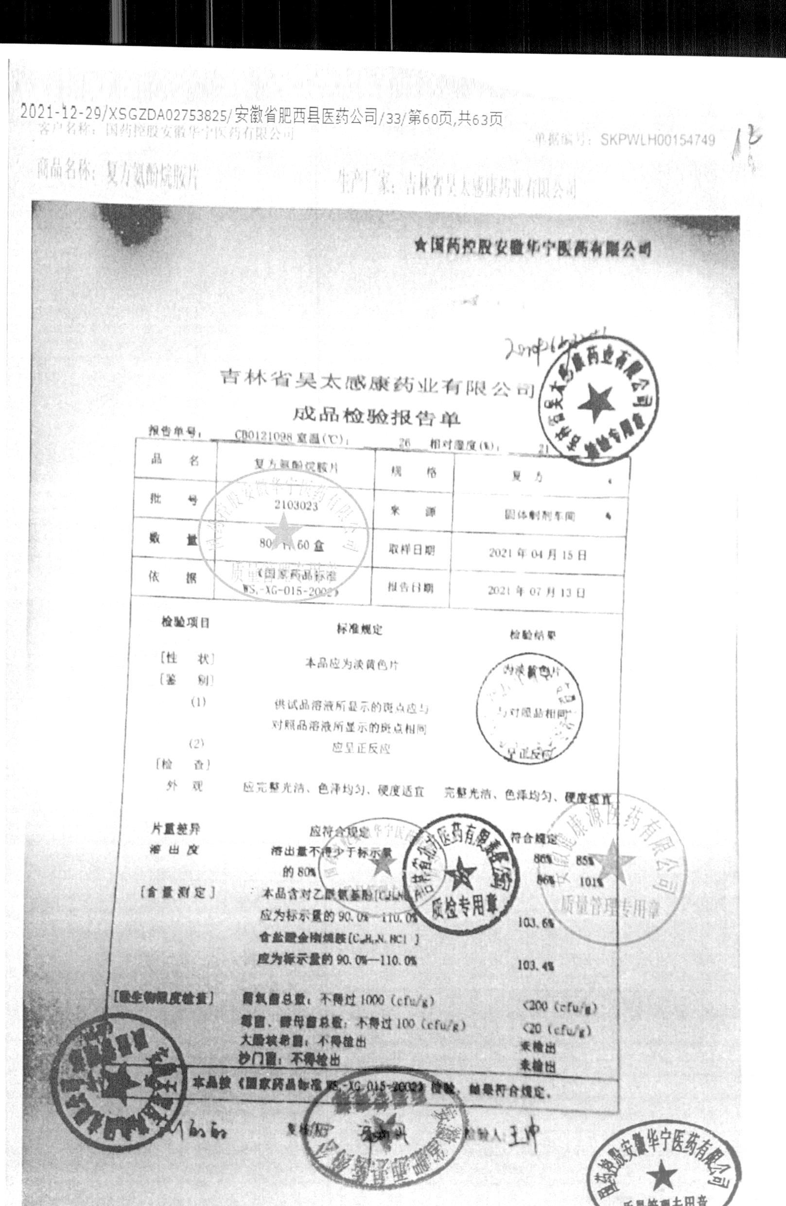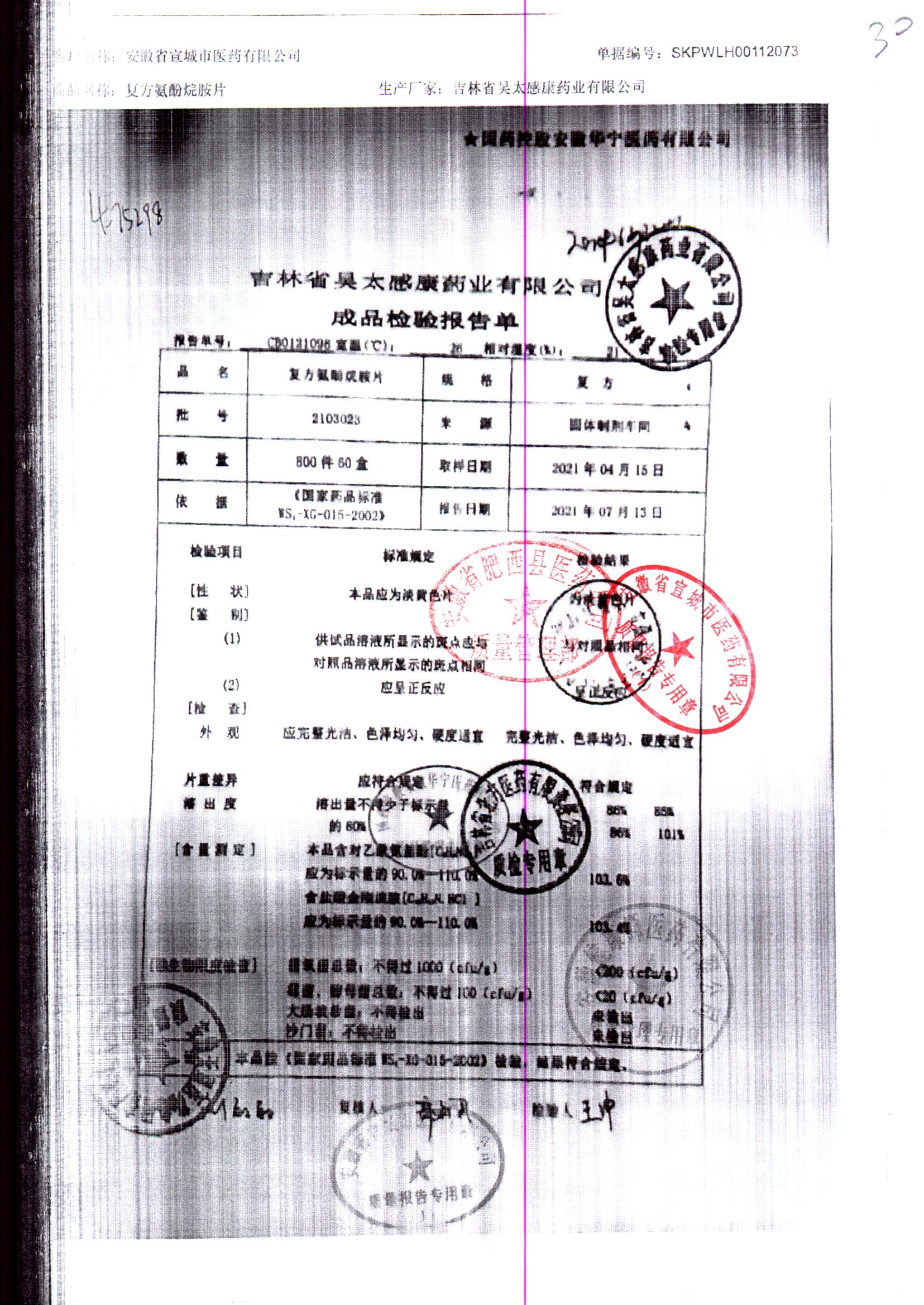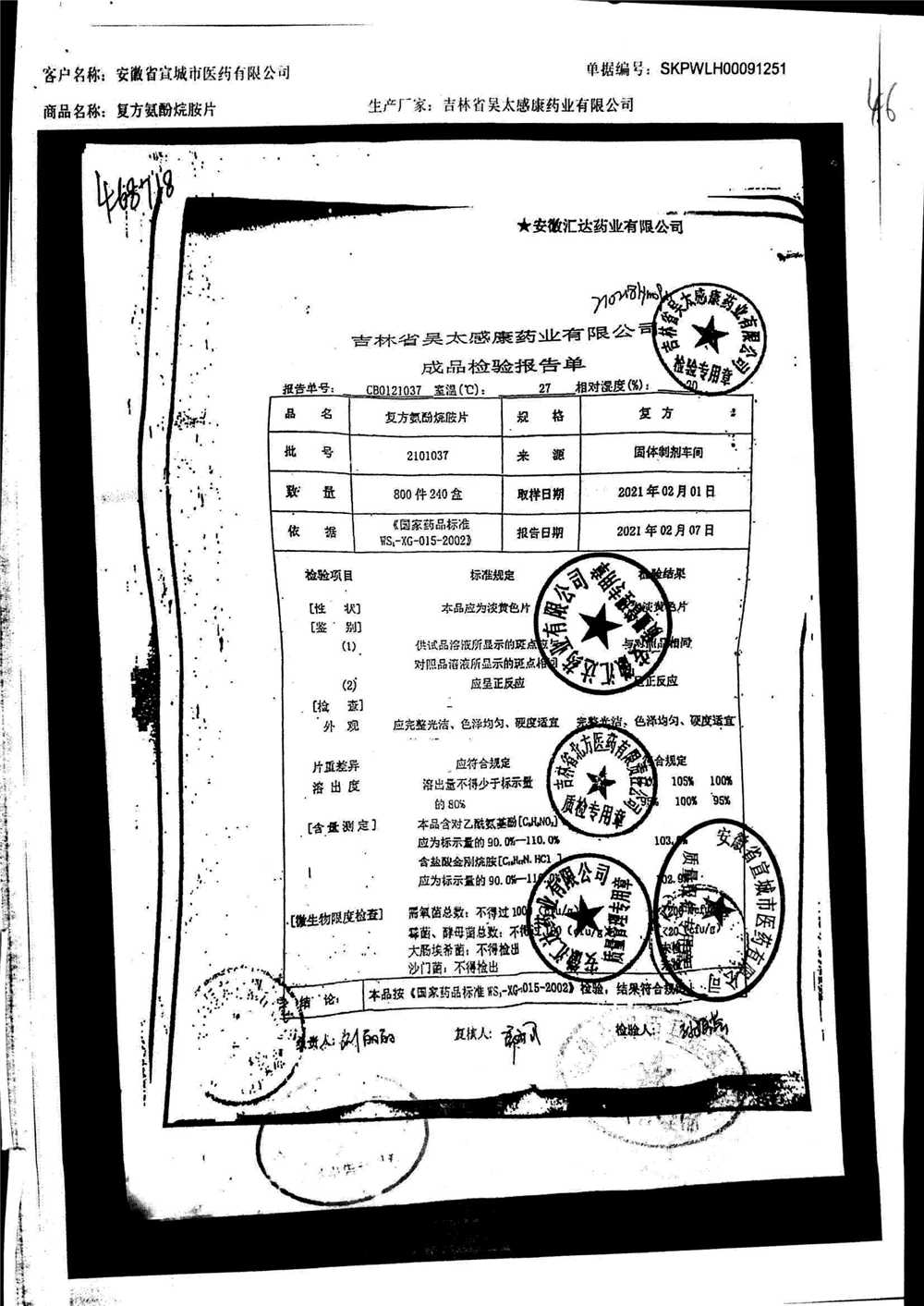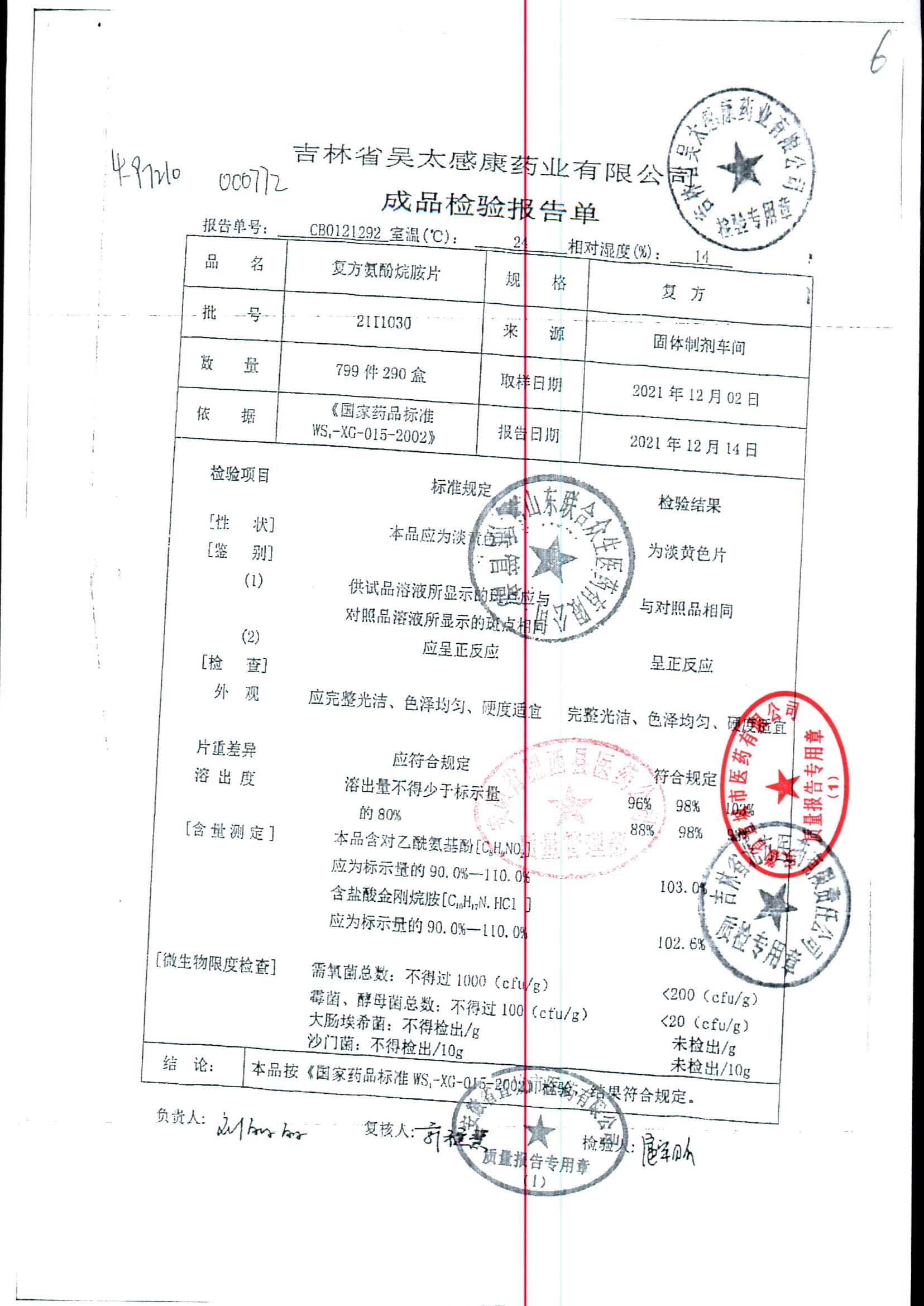 | 復方氨酚烷胺片 | 復方 | 2111031 | 查看詳情 |
