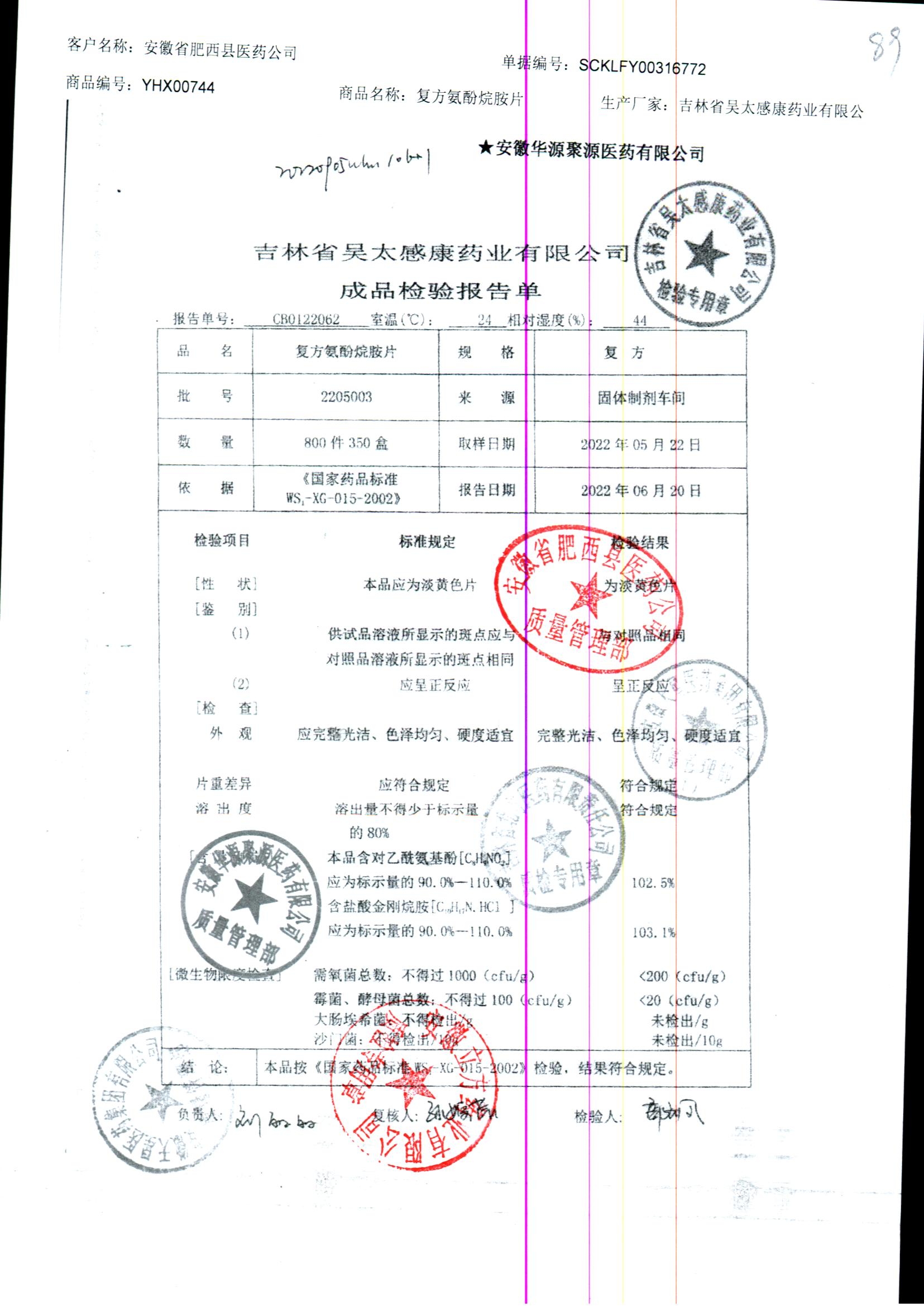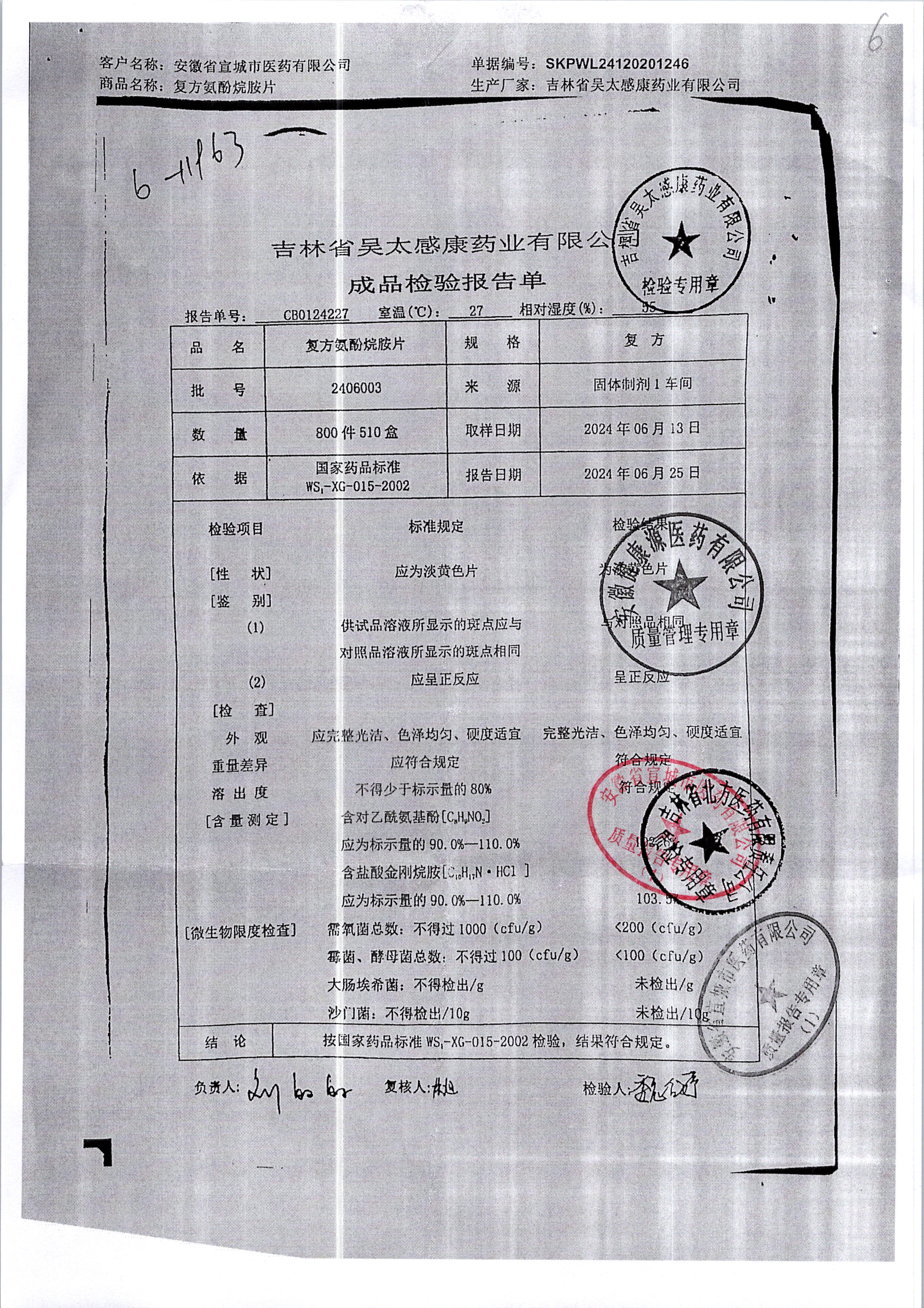 | 復方氨酚烷胺片 | 復方 | 1903035 | 查看詳情 |