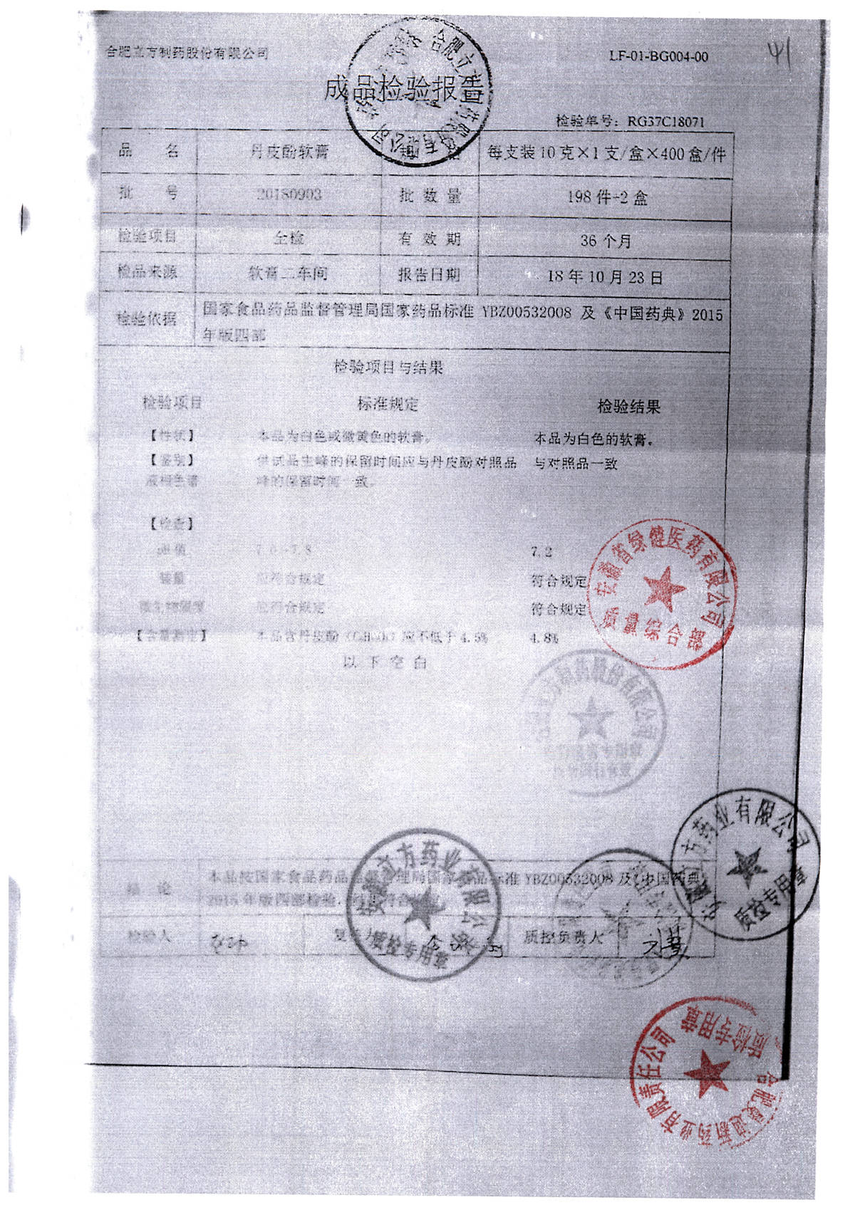 | 丹皮酚軟膏 | 10g | 20180903 | 查看詳情 |