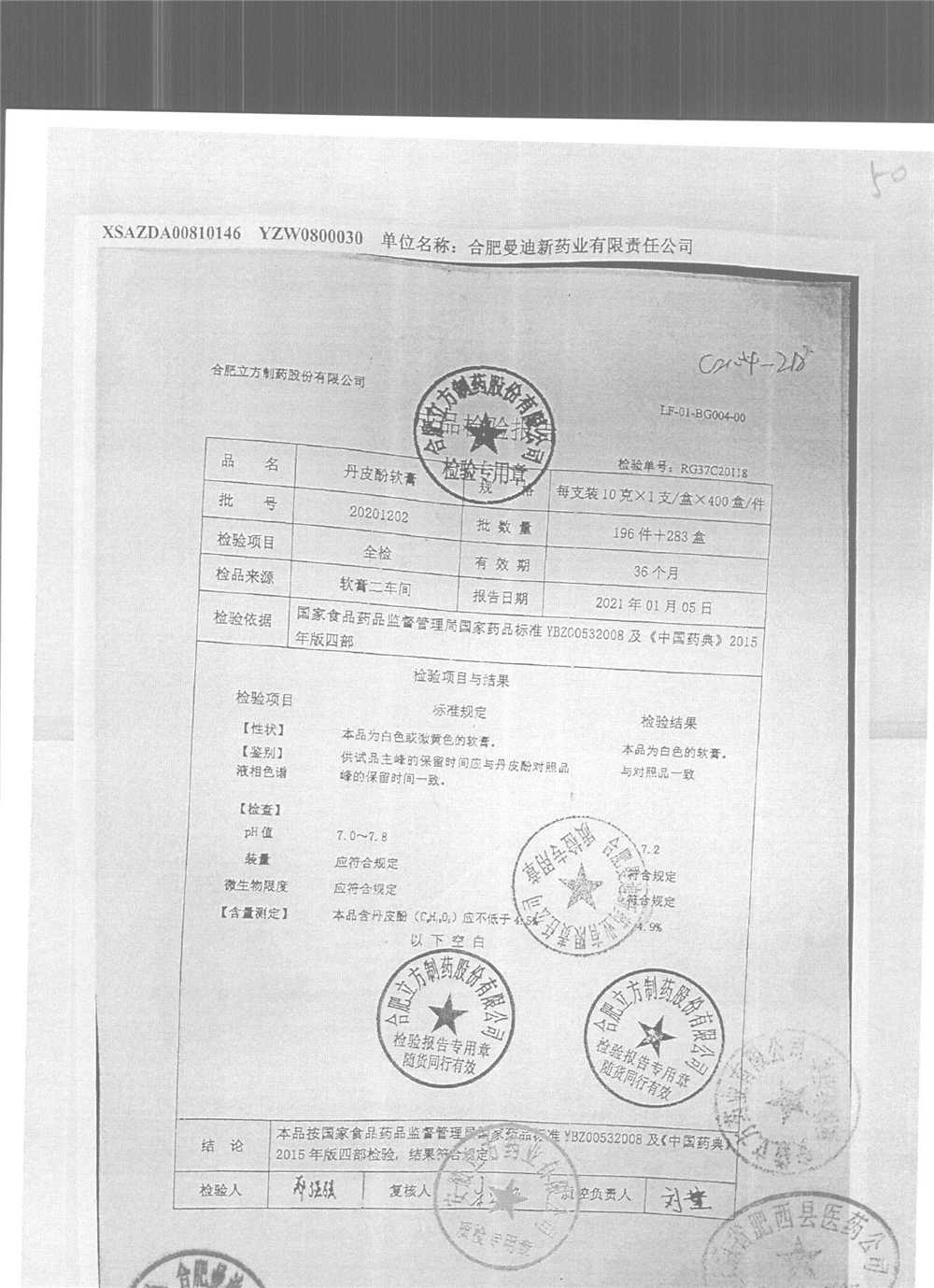 | 丹皮酚軟膏 | 10g | 20210202 | 查看詳情 |