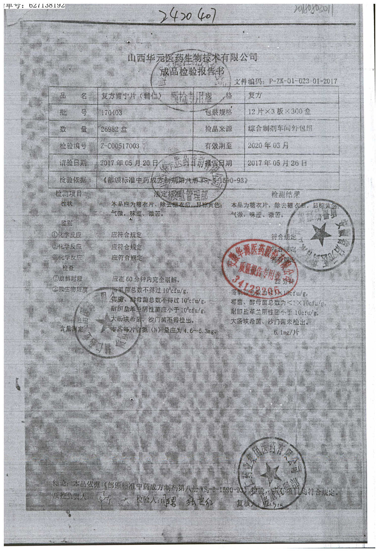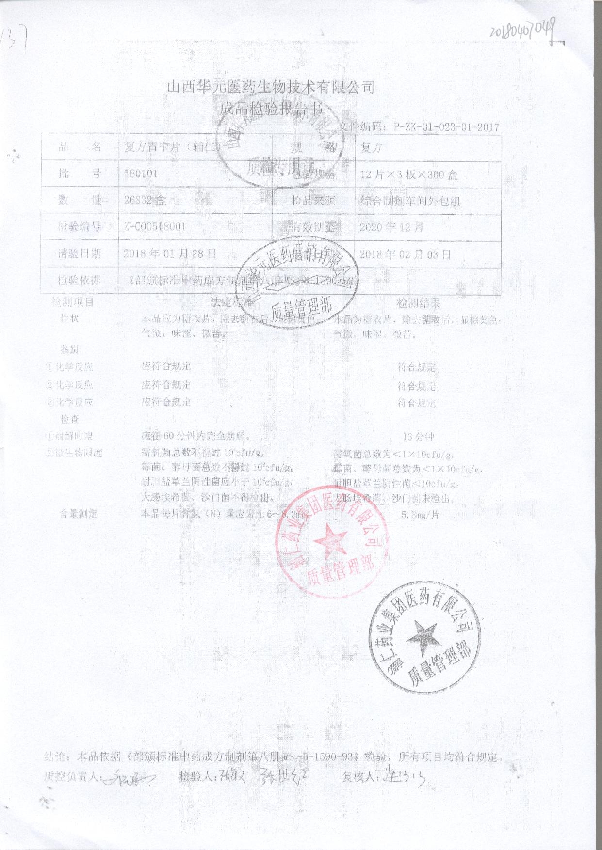 復(fù)方胃寧片 36片 170403 查看詳情