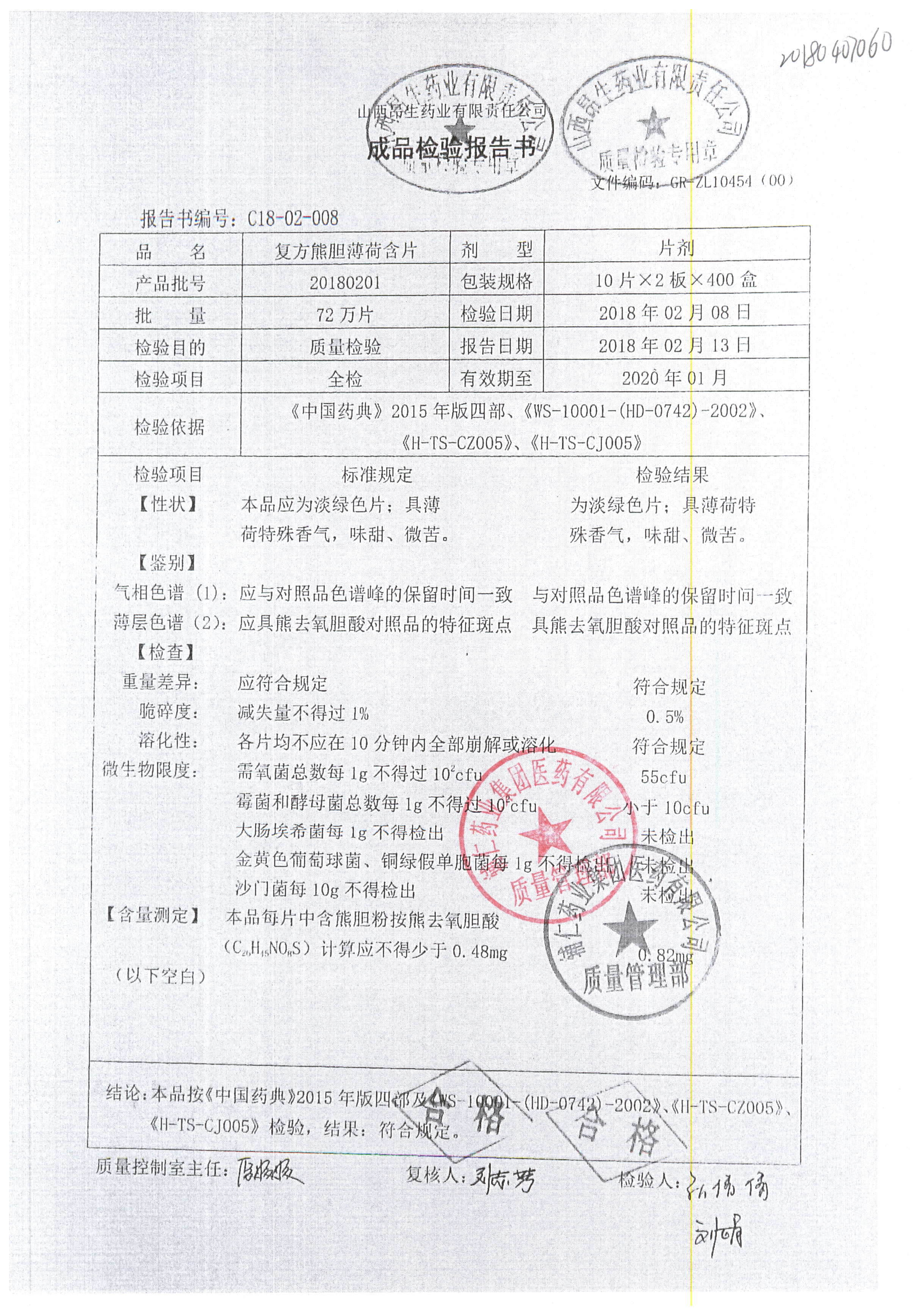 復方熊膽薄荷含片 20片 20180203 查看詳情