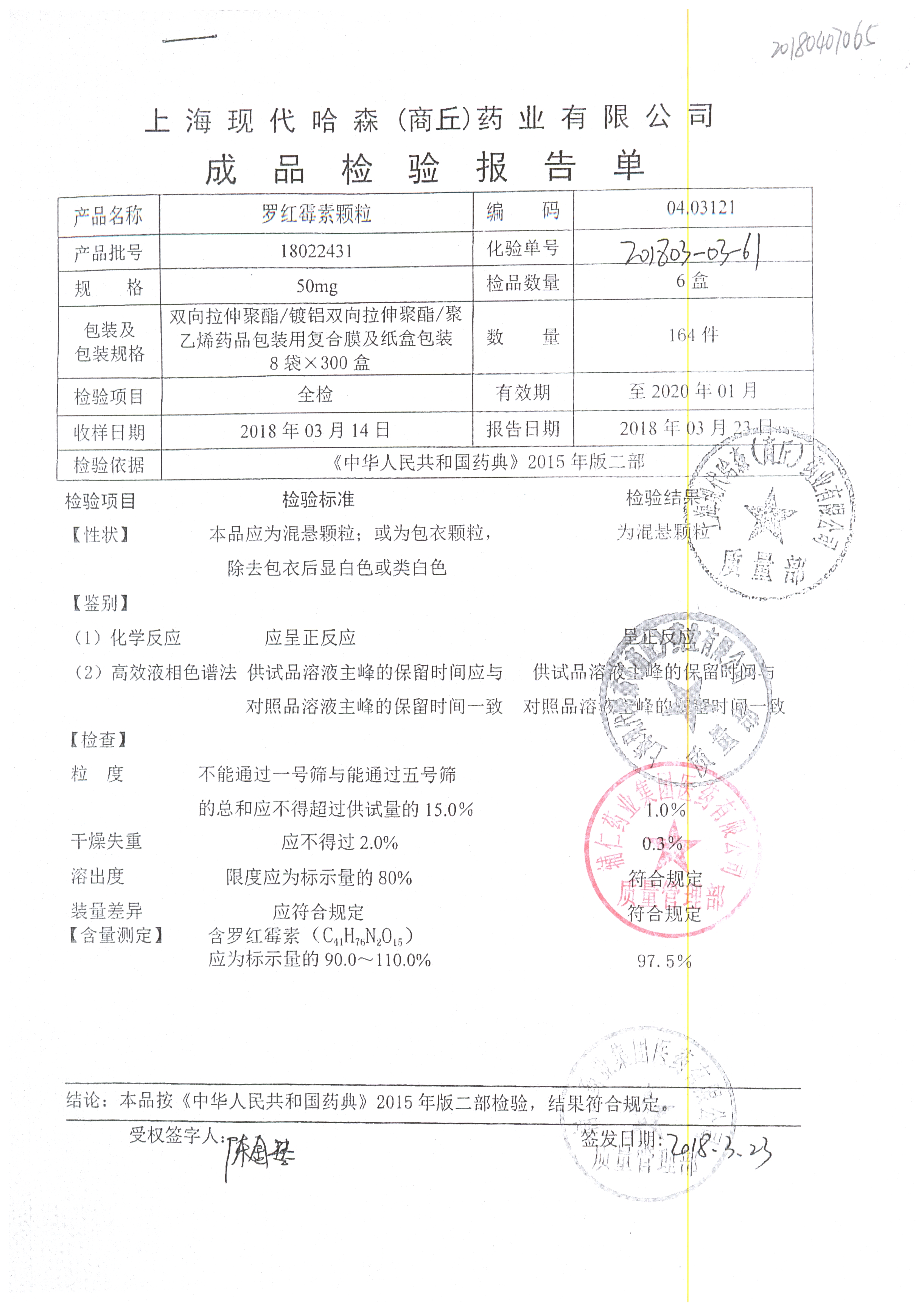 名稱 規格 批號 藥檢報告