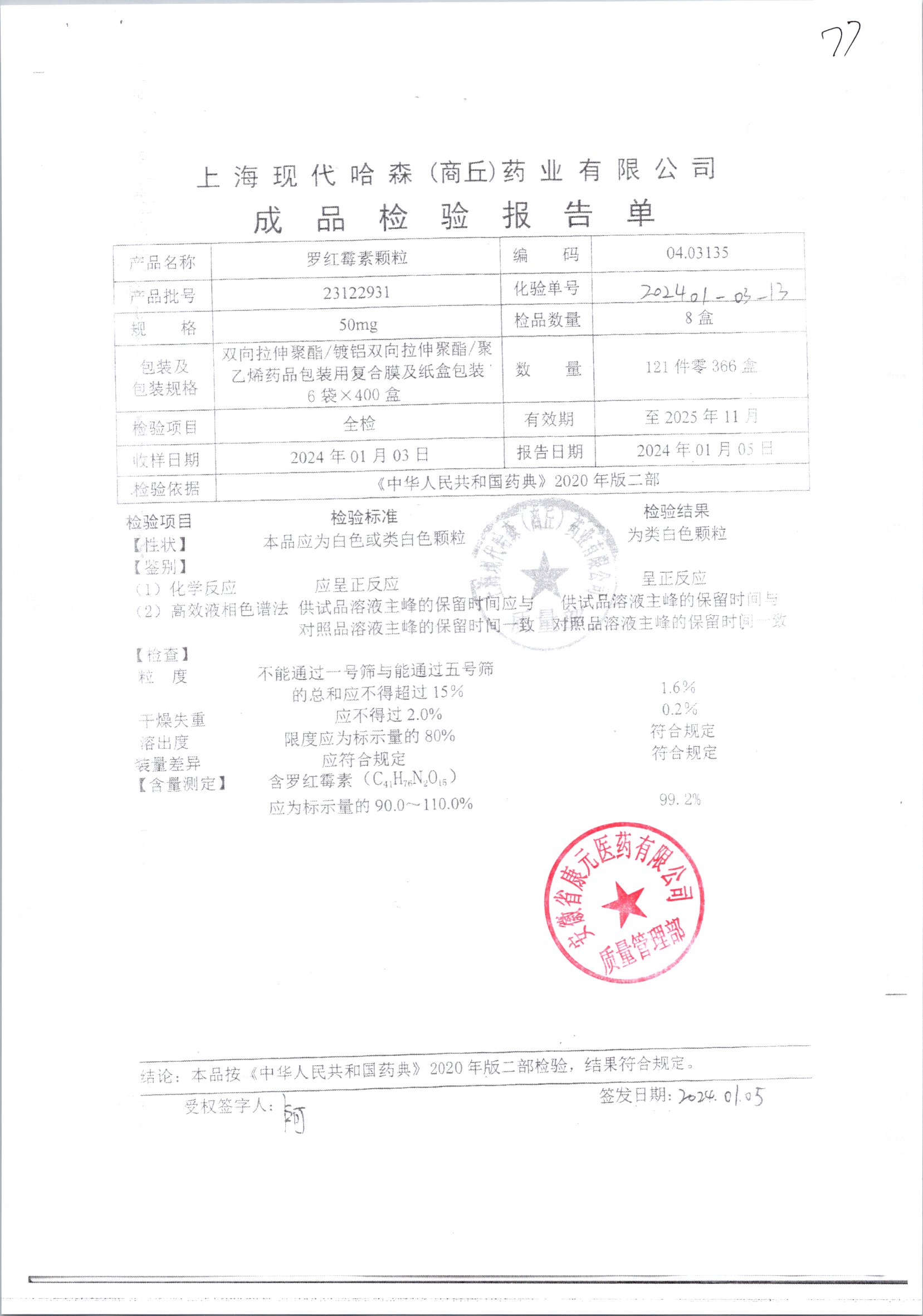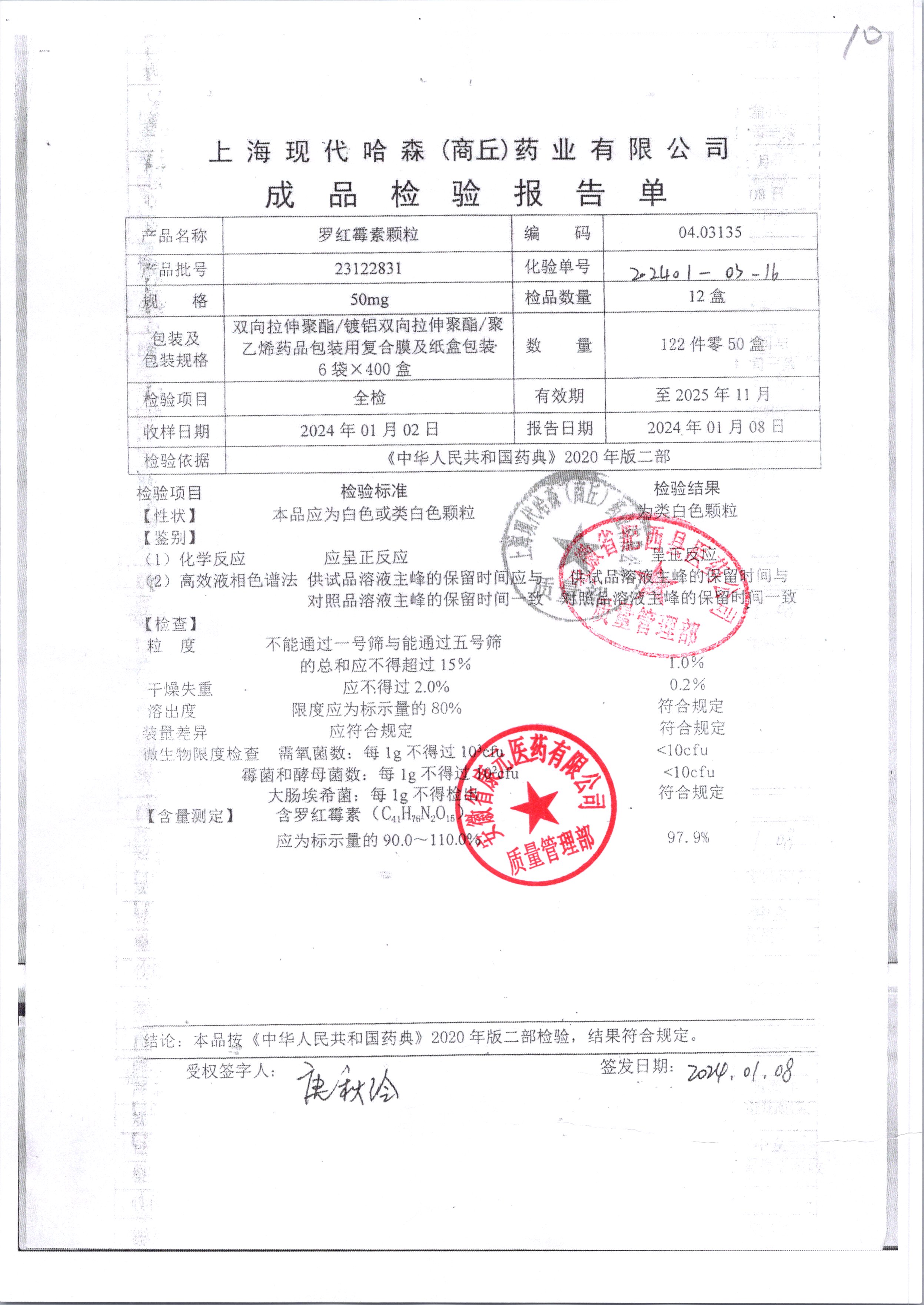 羅紅霉素顆粒 50mg*8袋 23122831 查看詳情