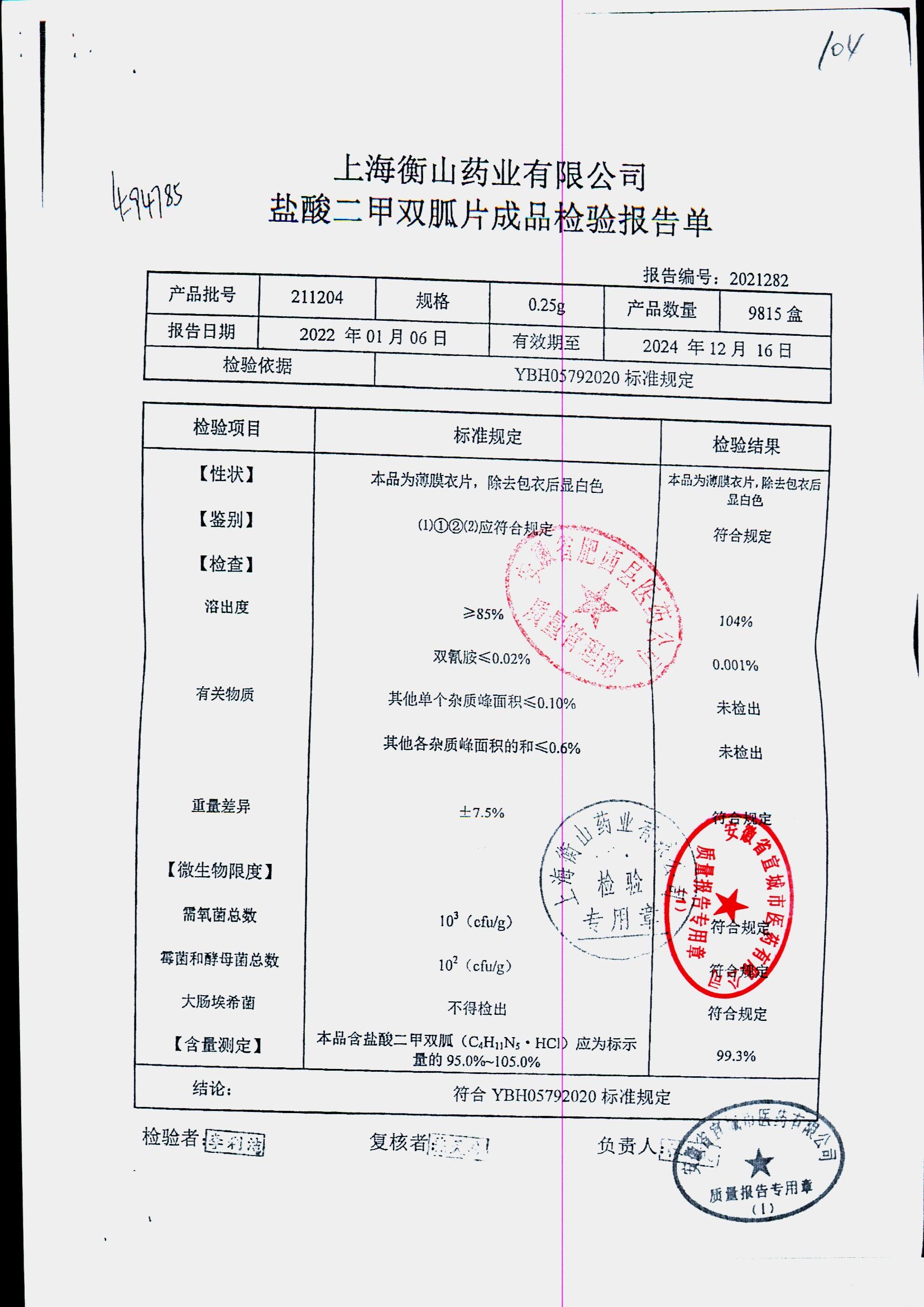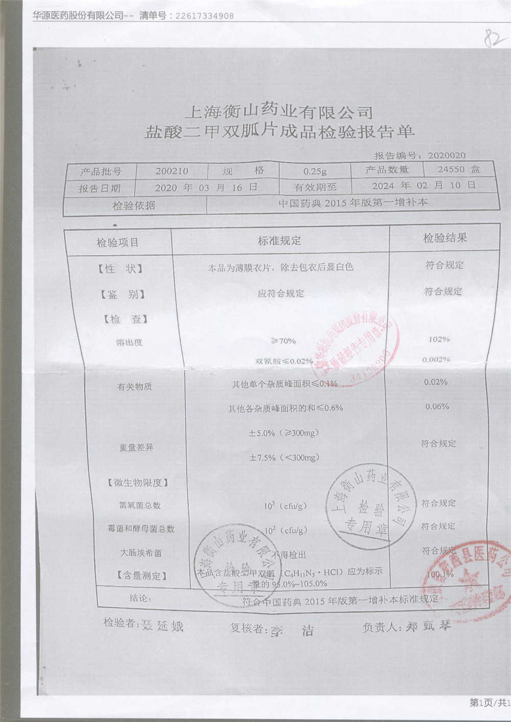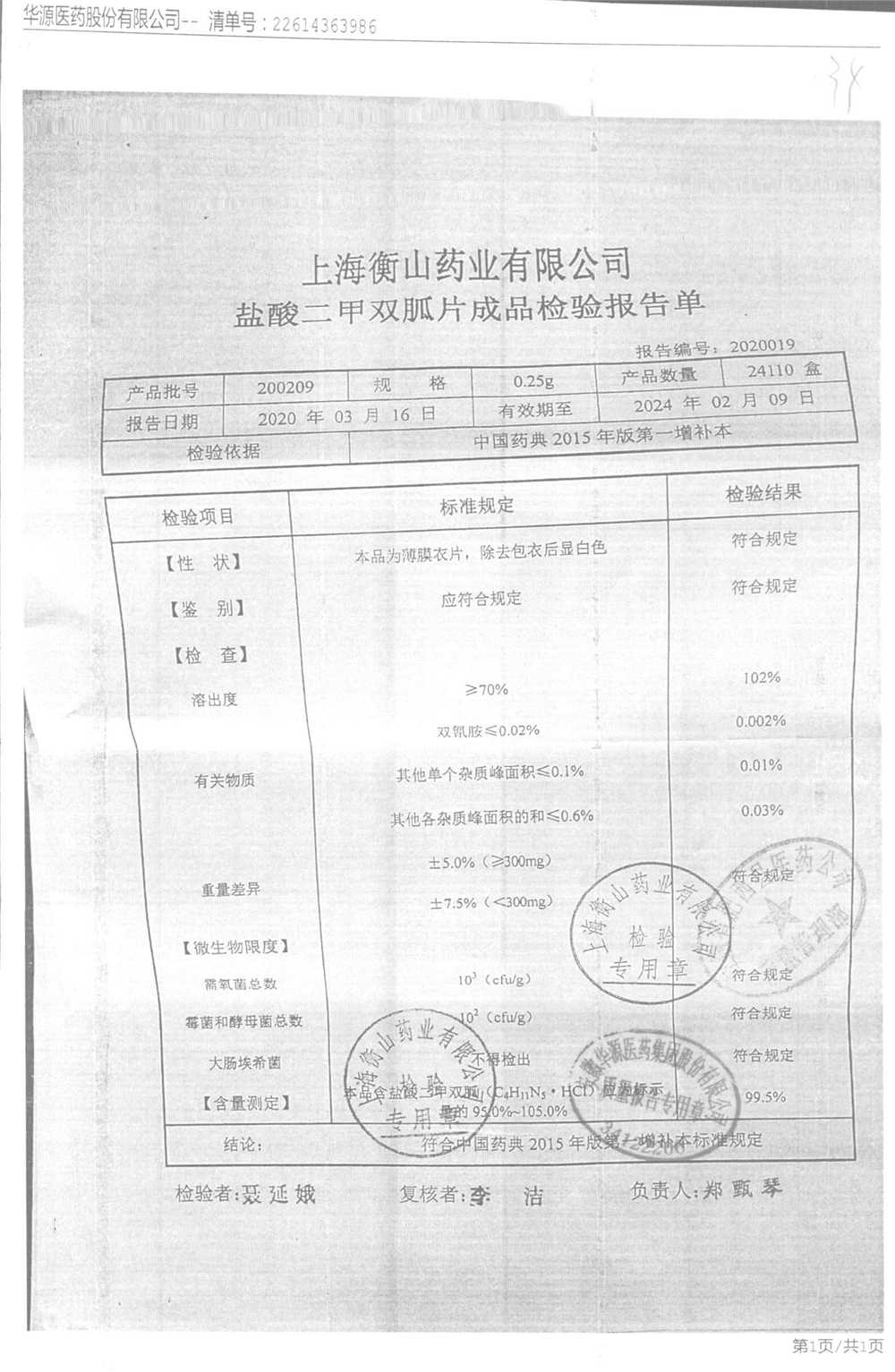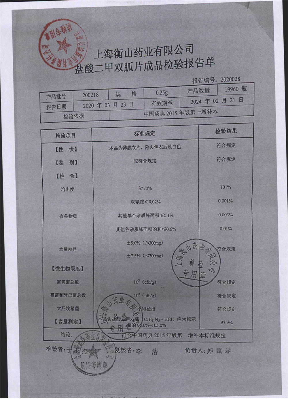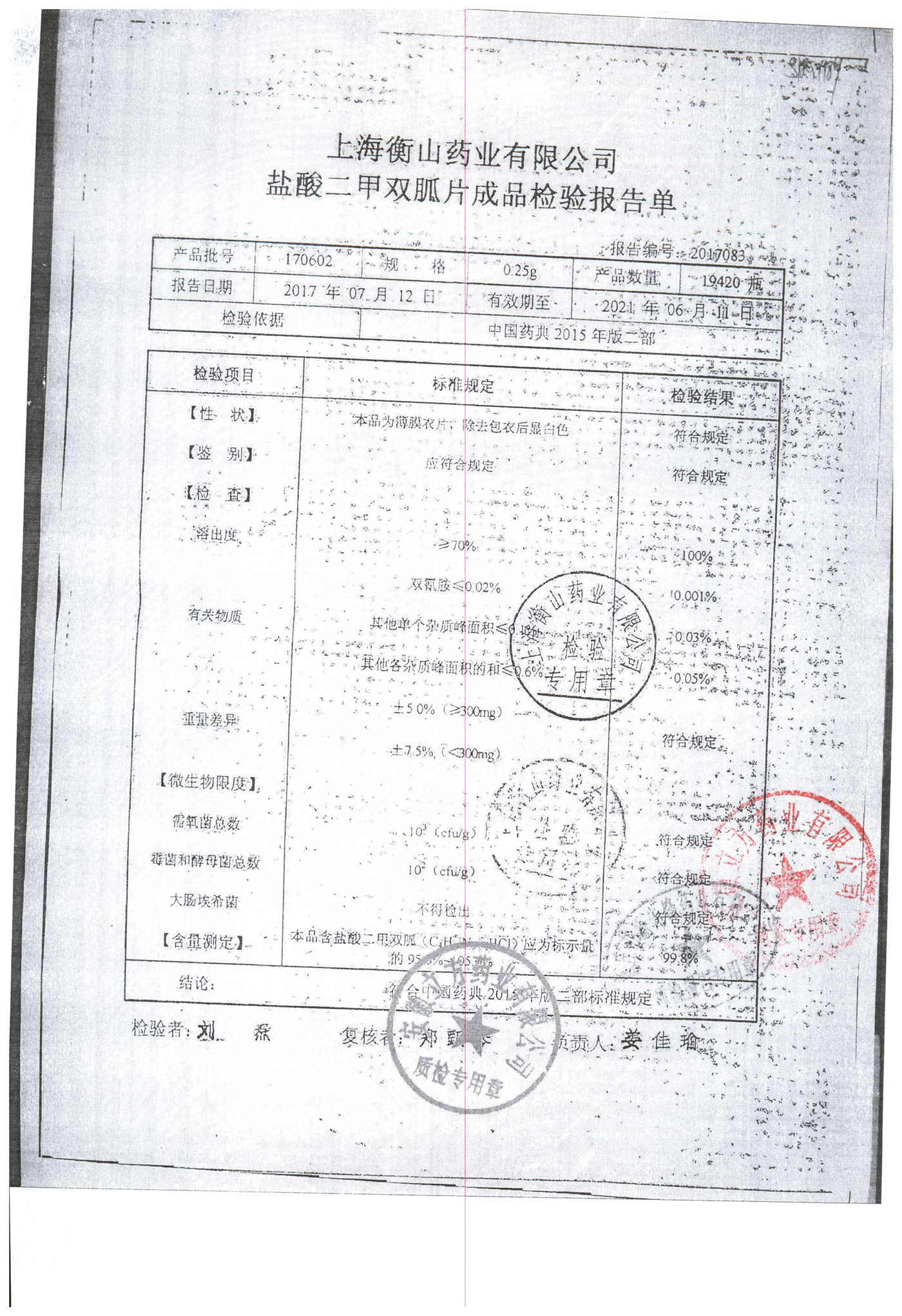 | 鹽酸二甲雙胍片 | 0.25g | 210815 | 查看詳情 |