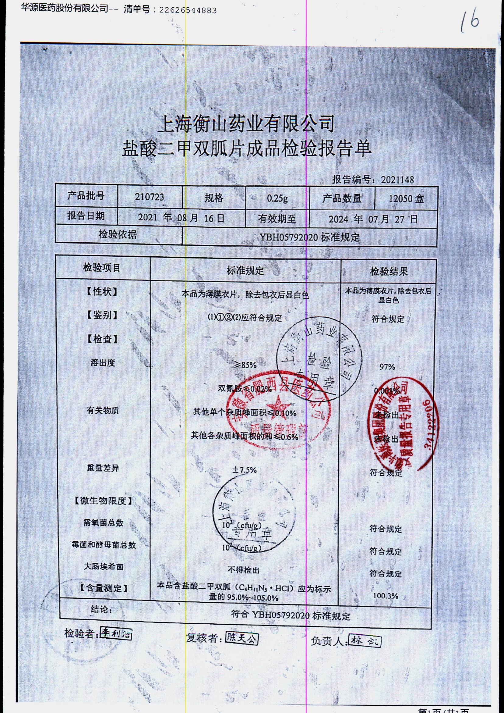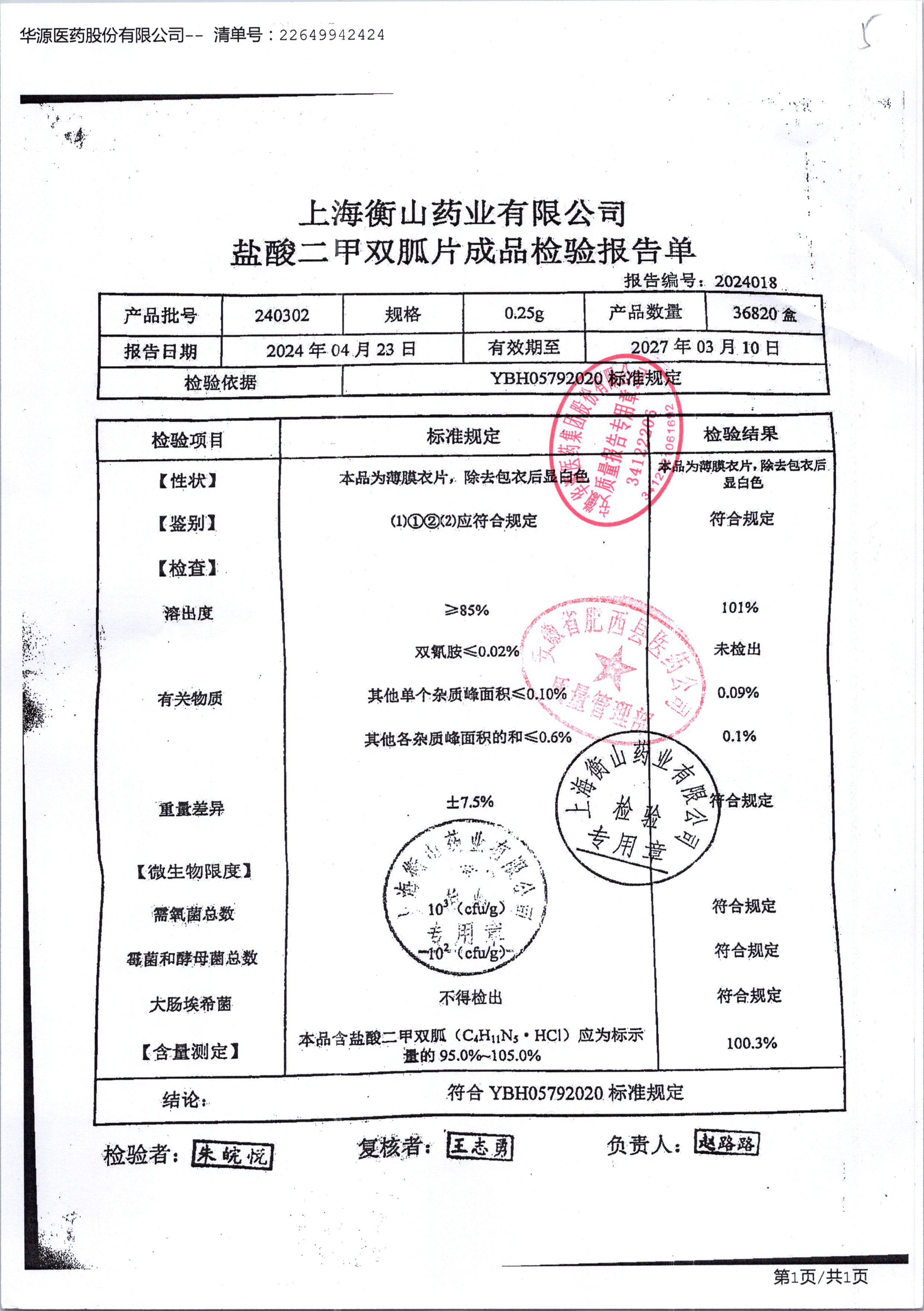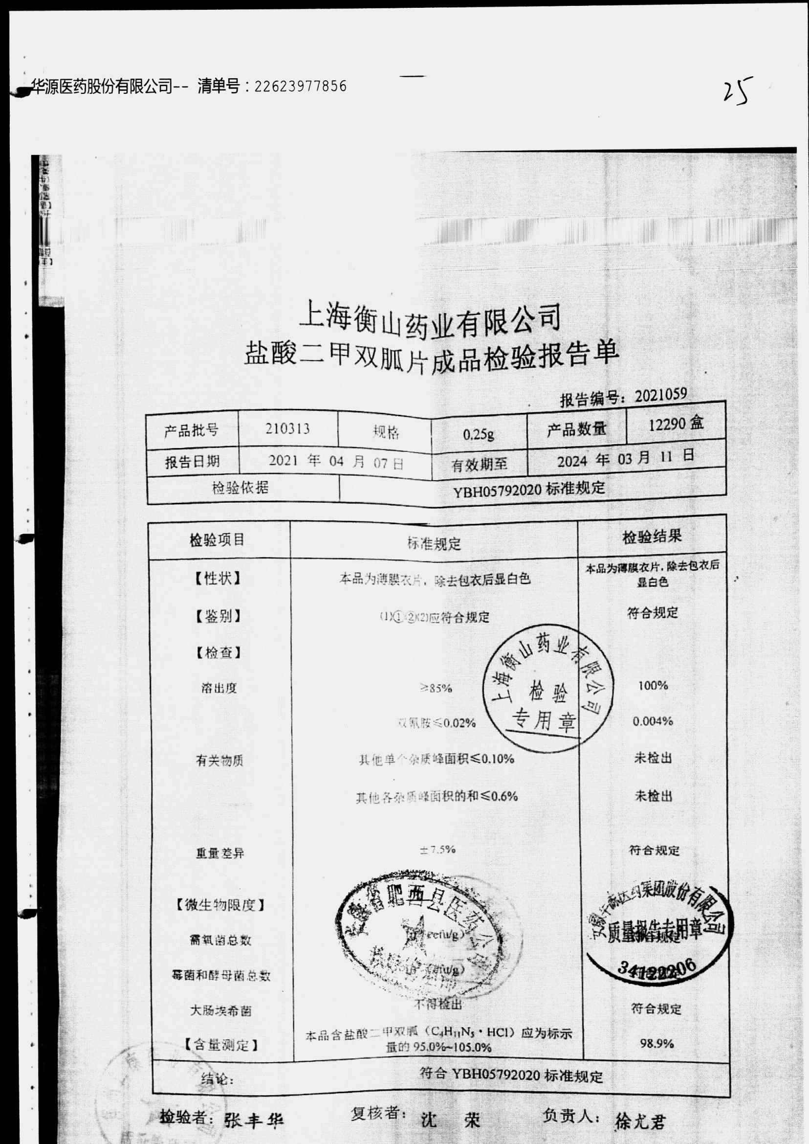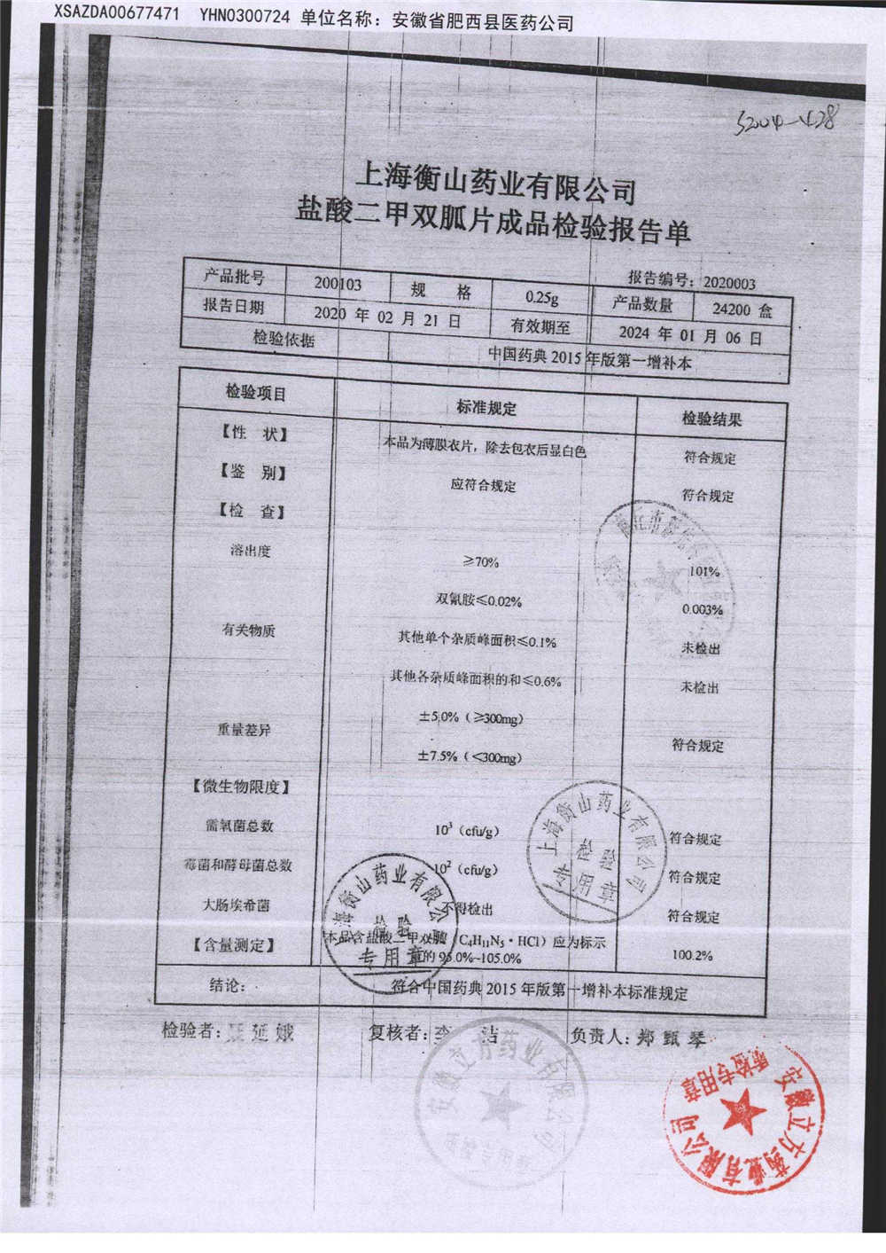 | 鹽酸二甲雙胍片 | 0.25g | 210815 | 查看詳情 |