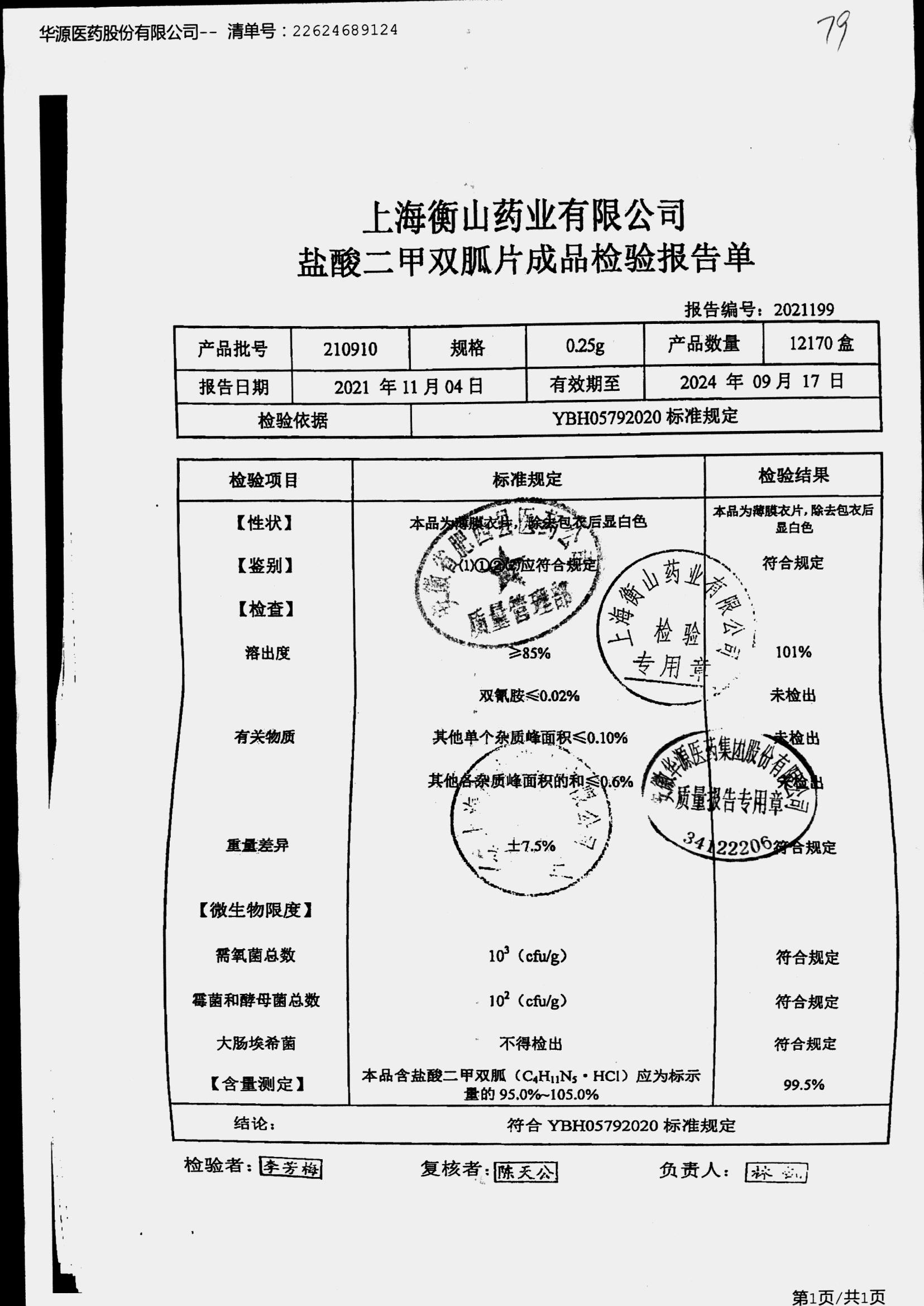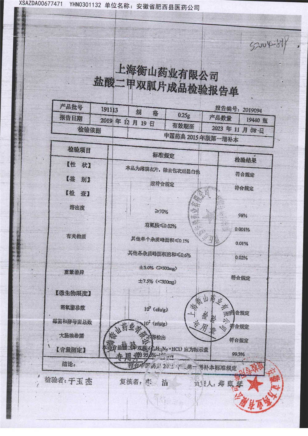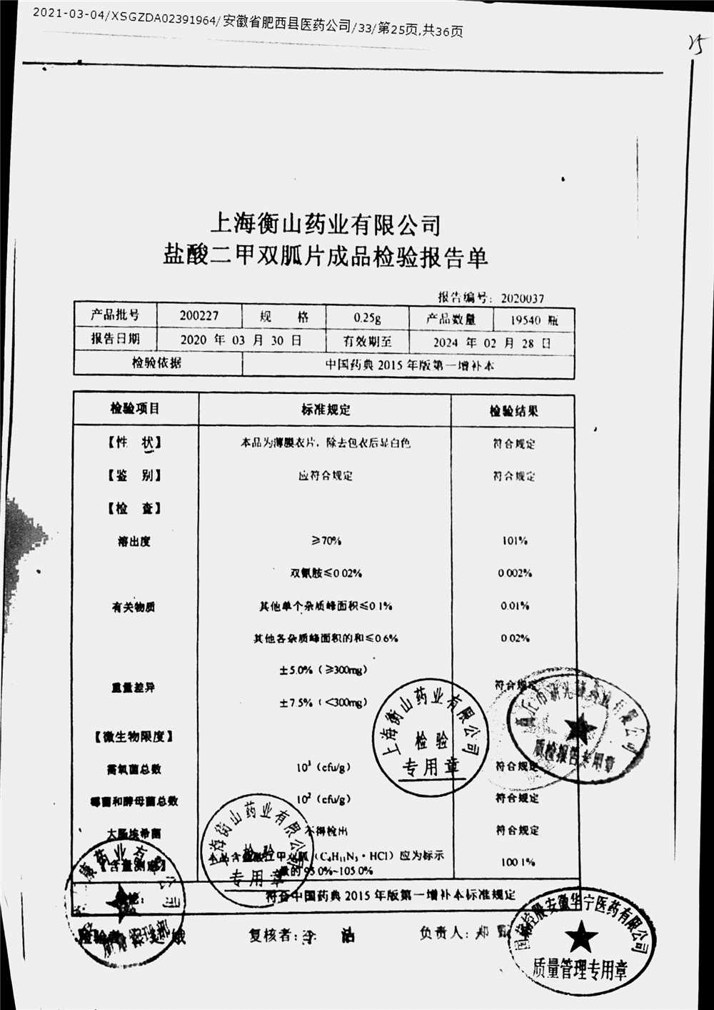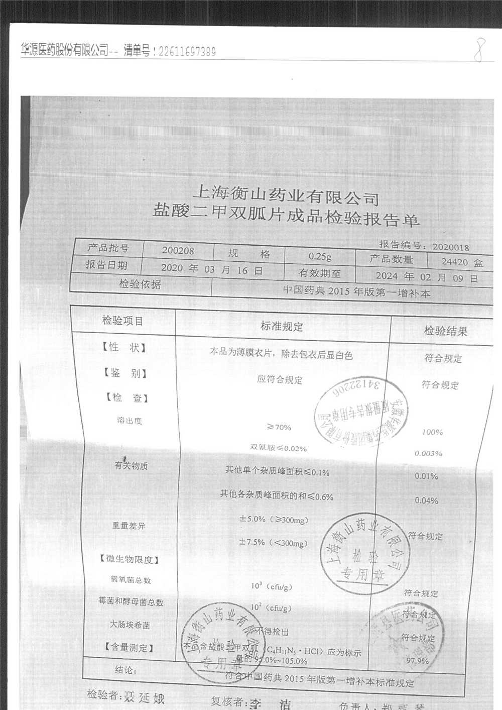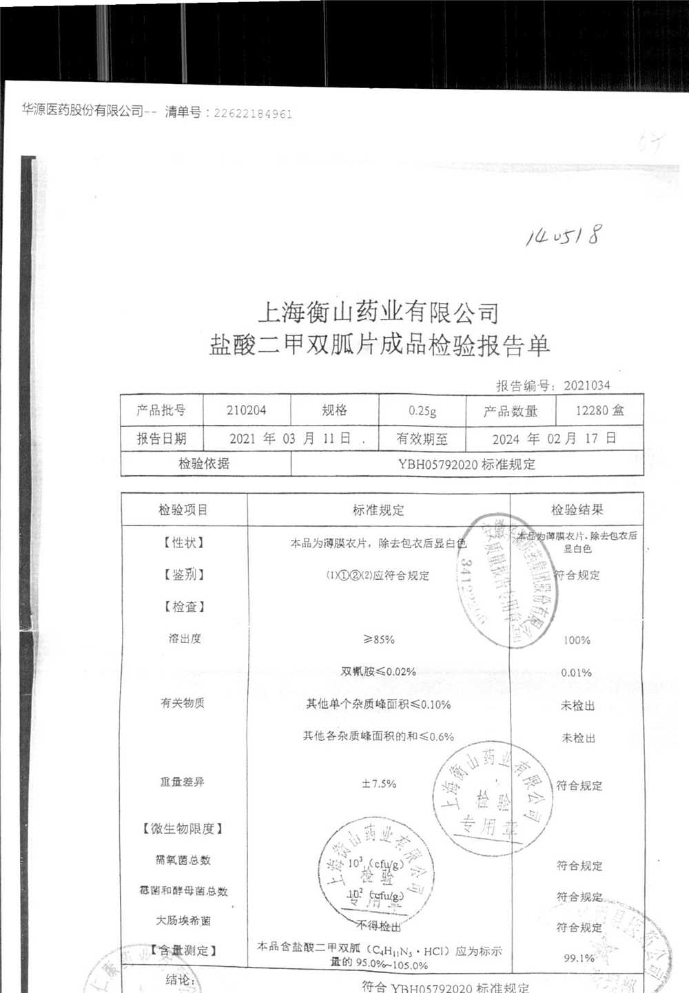 | 鹽酸二甲雙胍片 | 0.25g | 210815 | 查看詳情 |