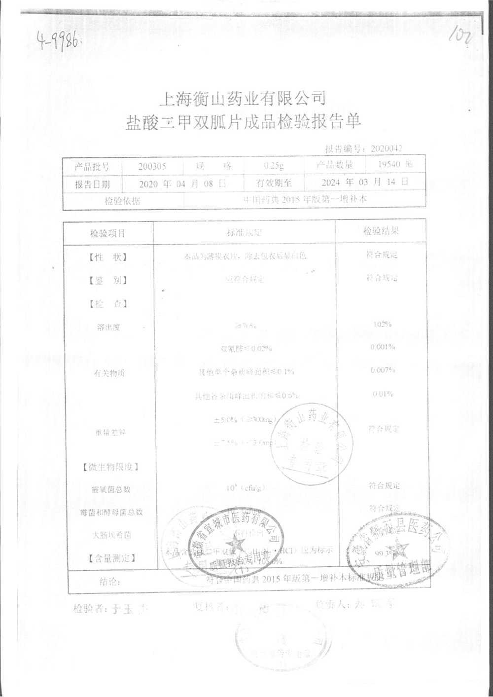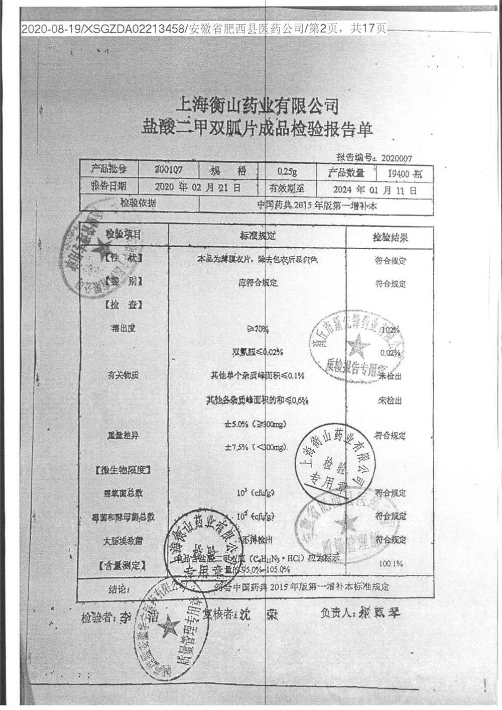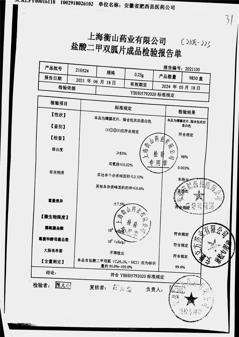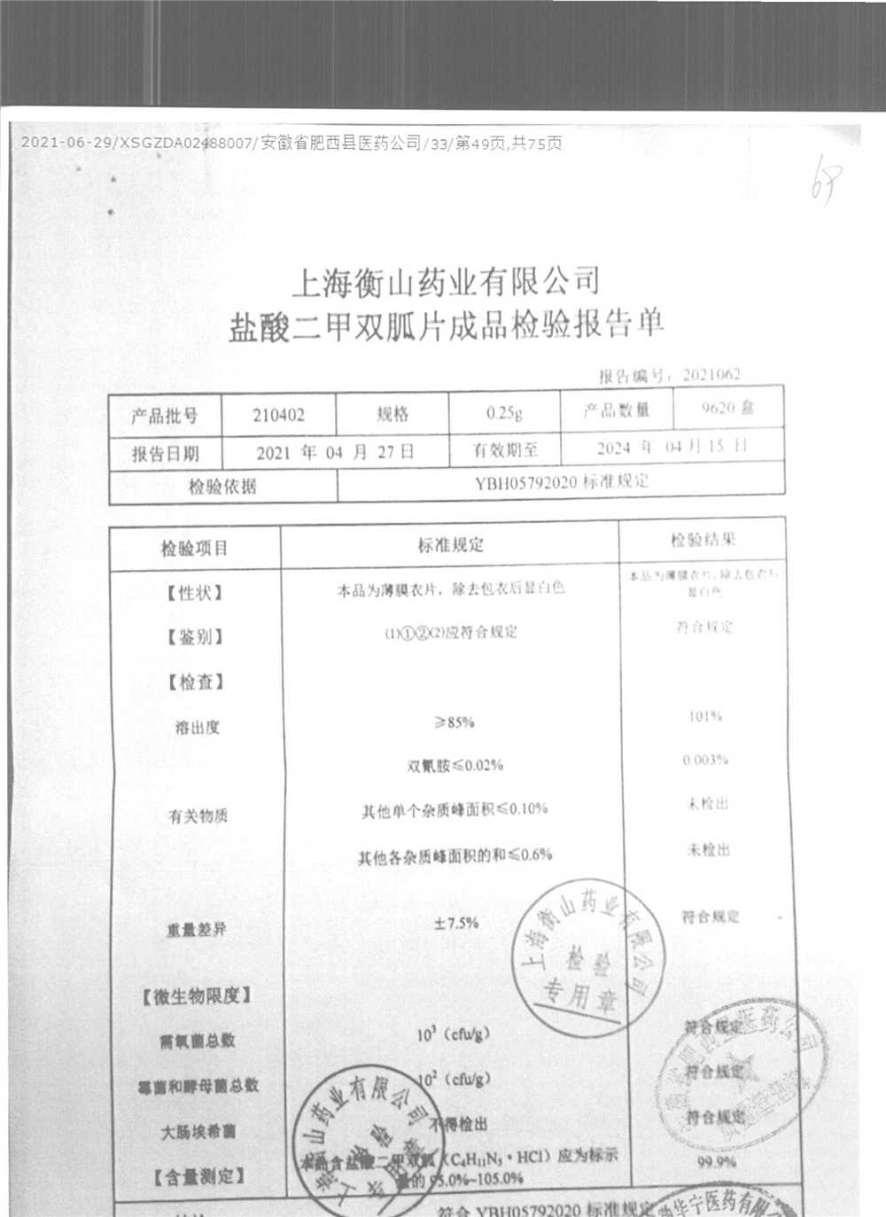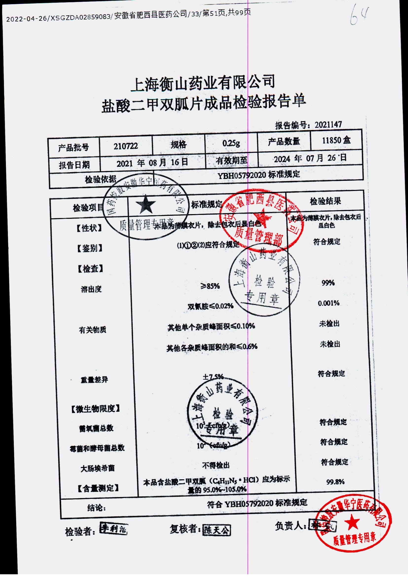| 鹽酸二甲雙胍片 | 0.25g | 210815 | 查看詳情 |