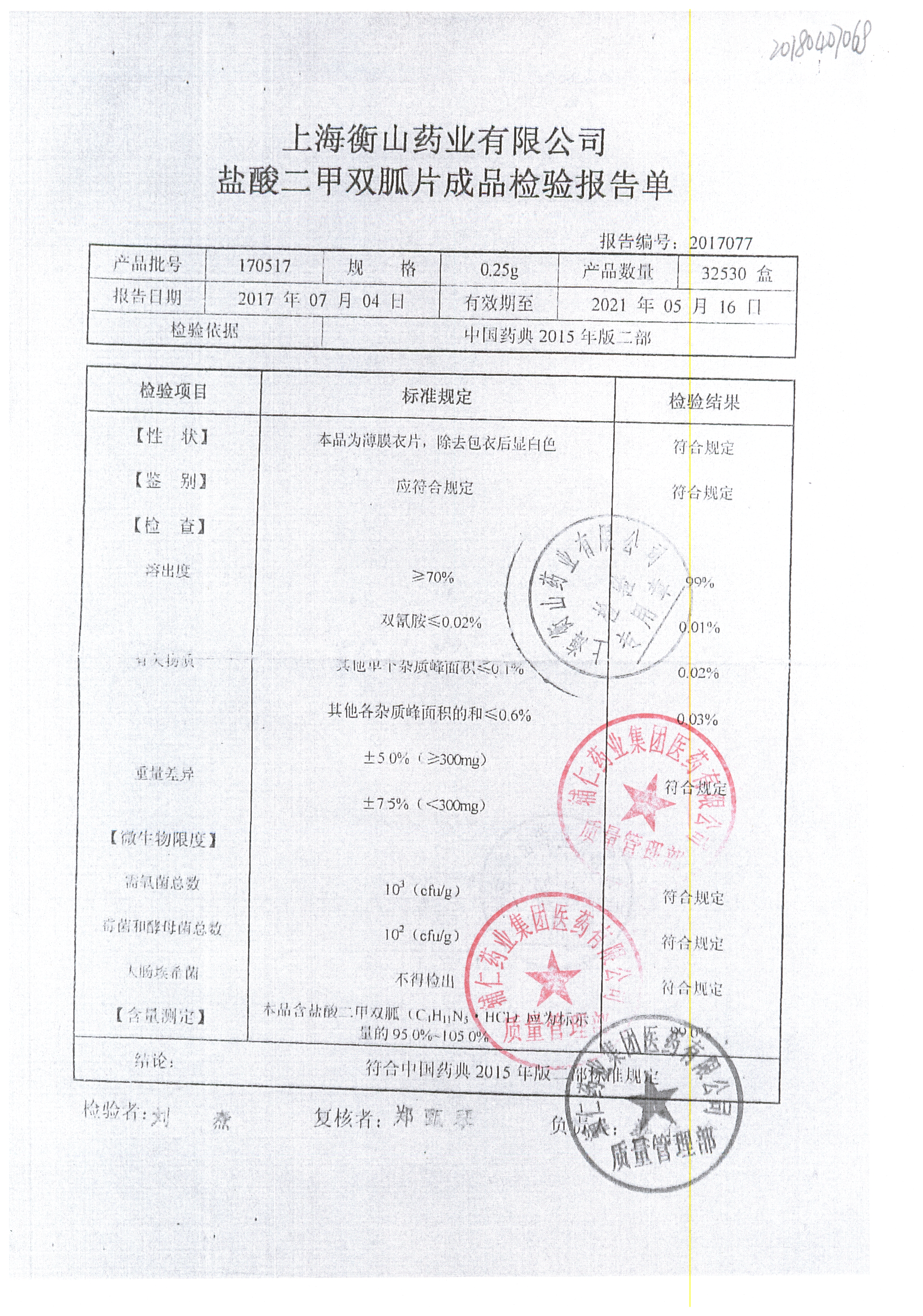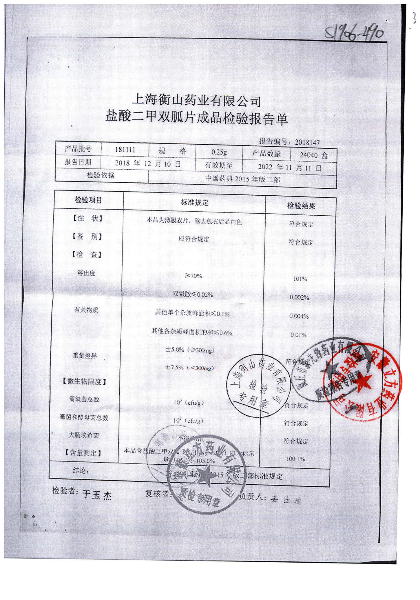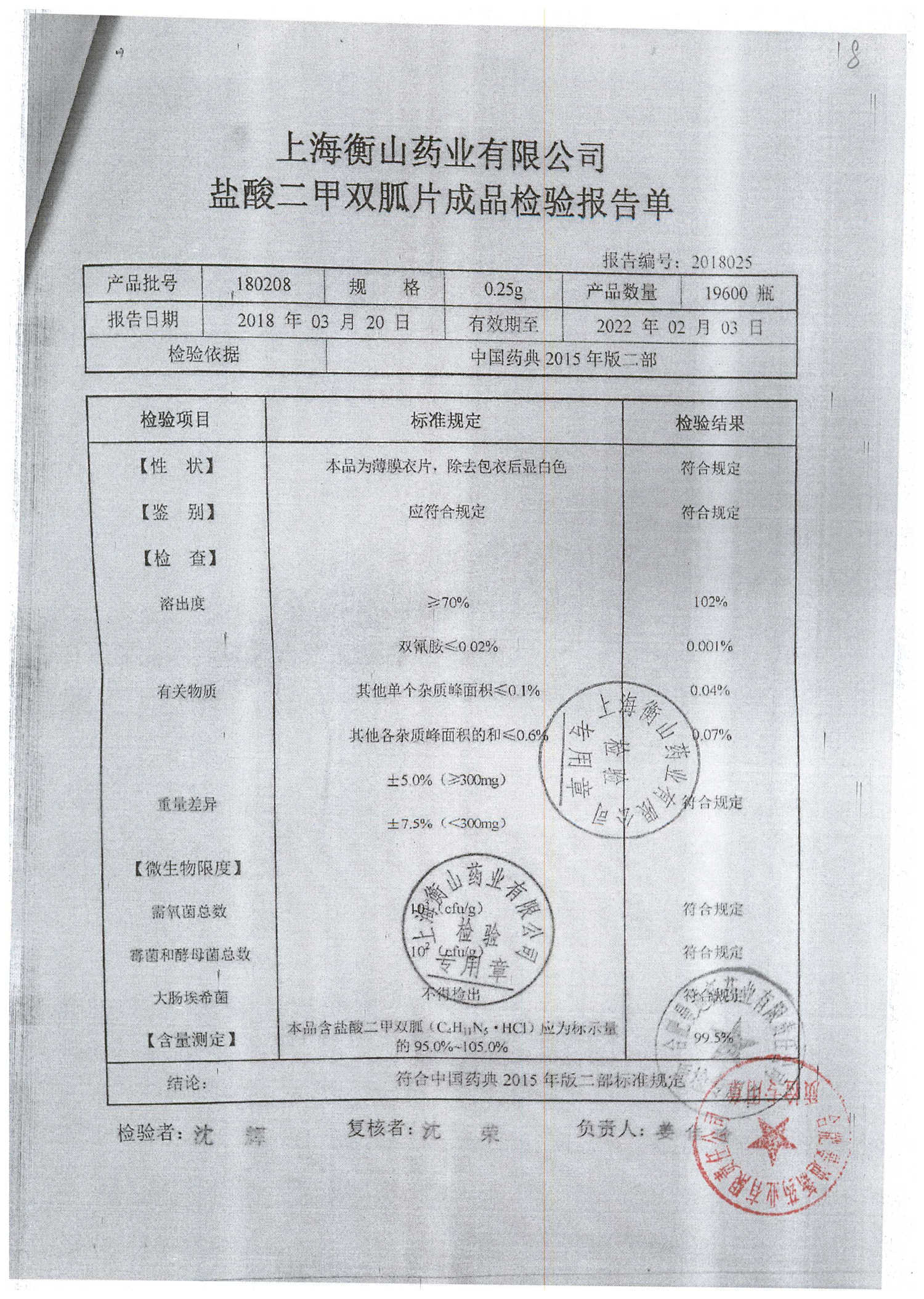 | 鹽酸二甲雙胍片 | 0.25g | 180805 | 查看詳情 |