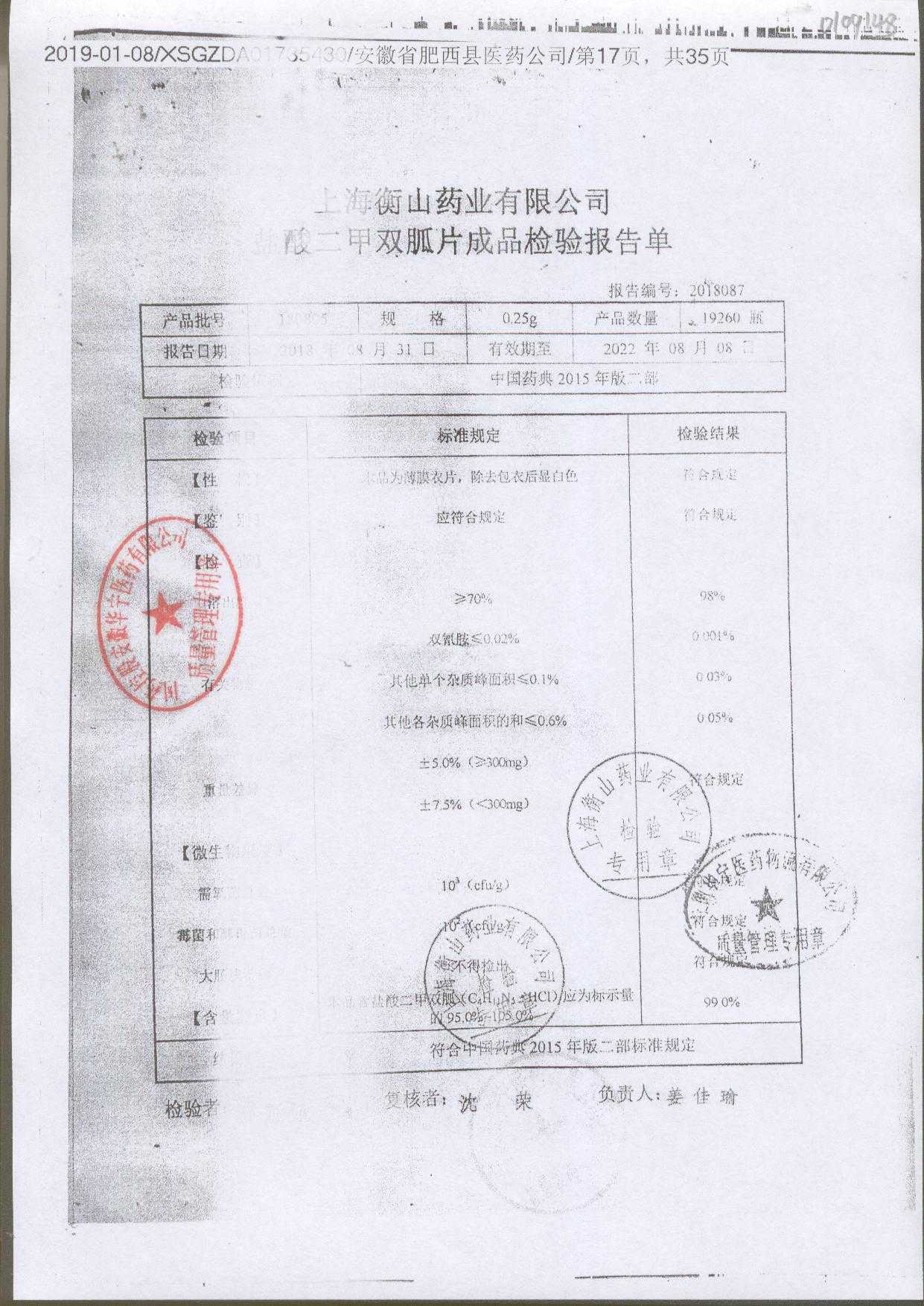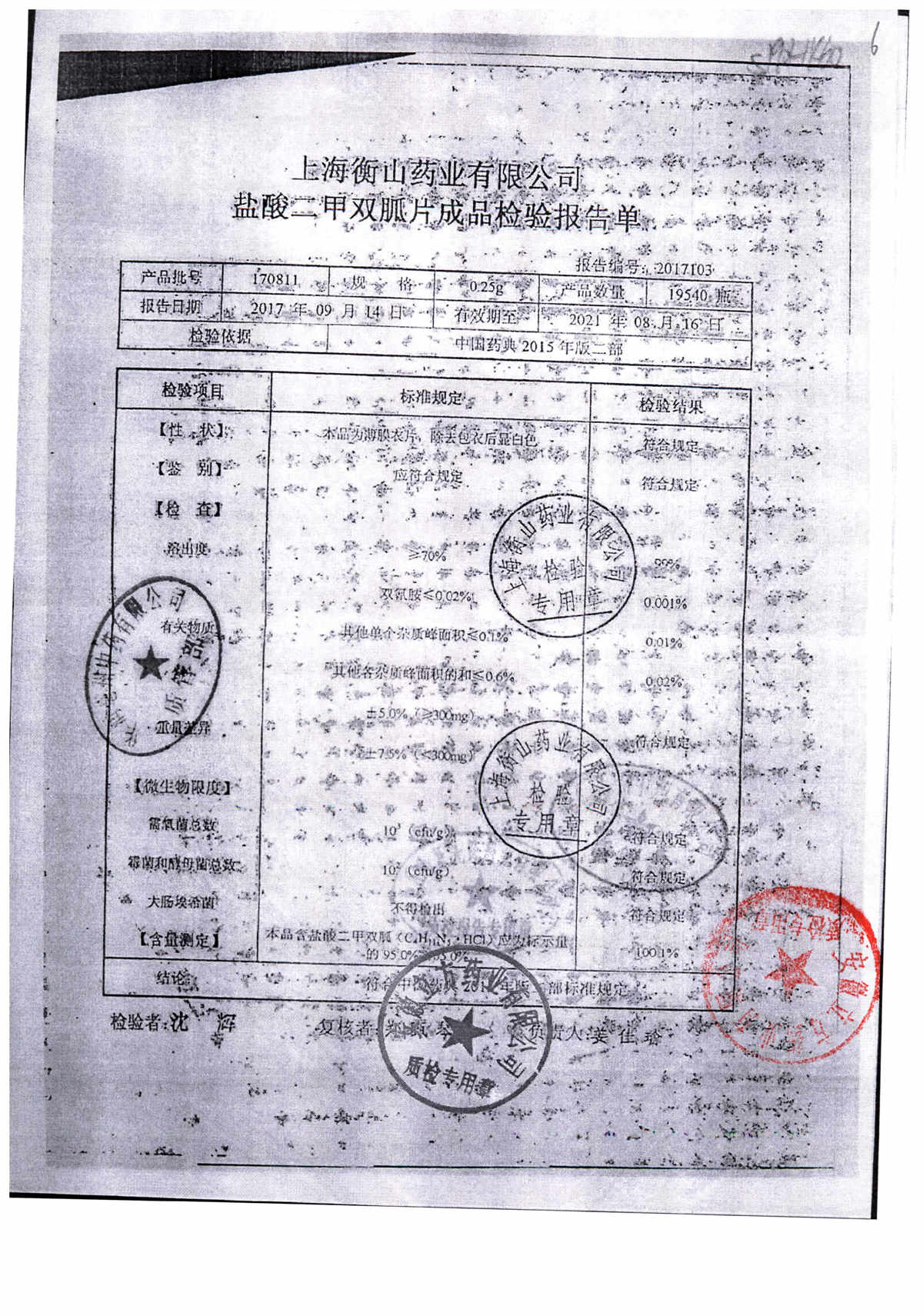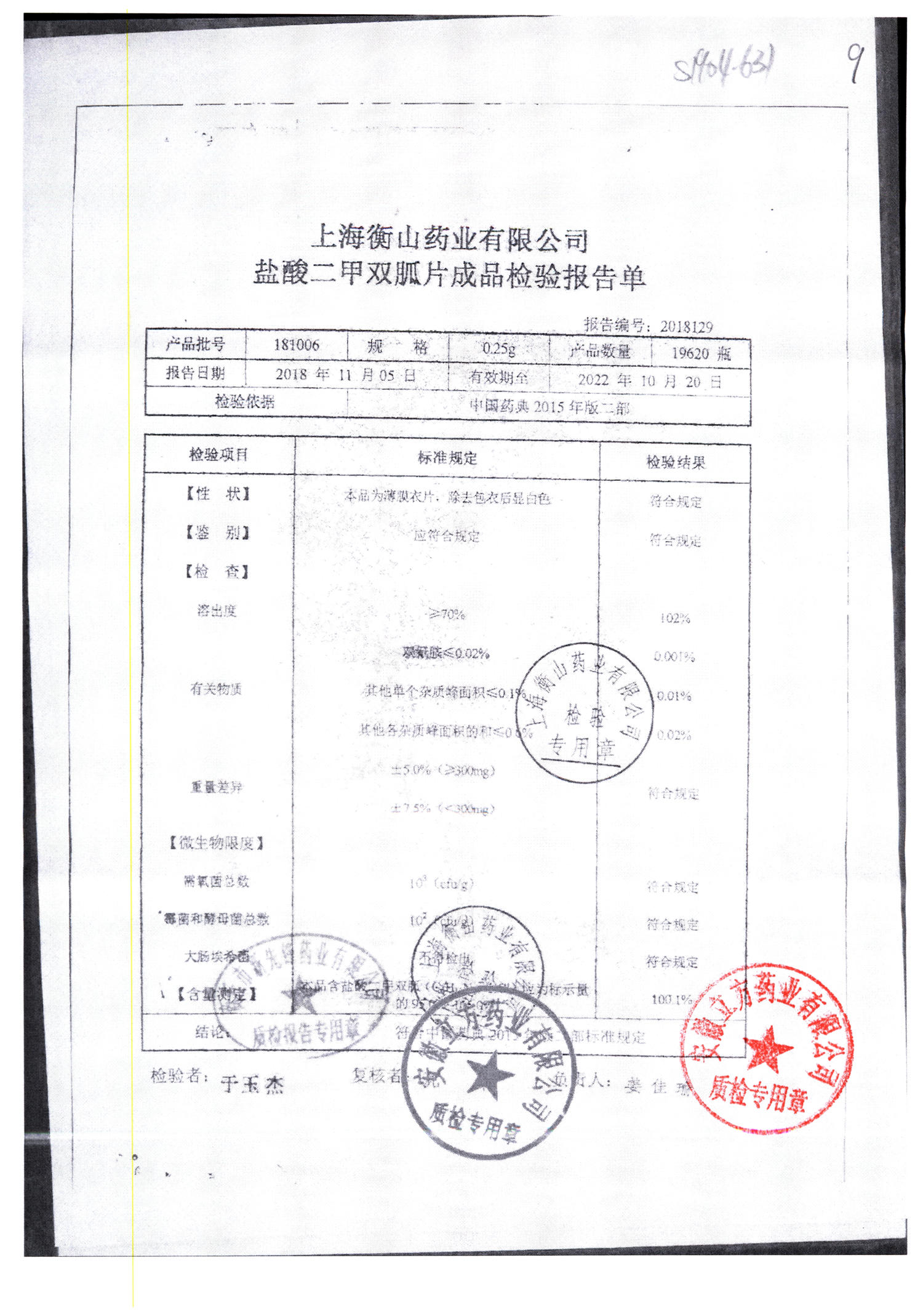 | 鹽酸二甲雙胍片 | 0.25g | 180805 | 查看詳情 |