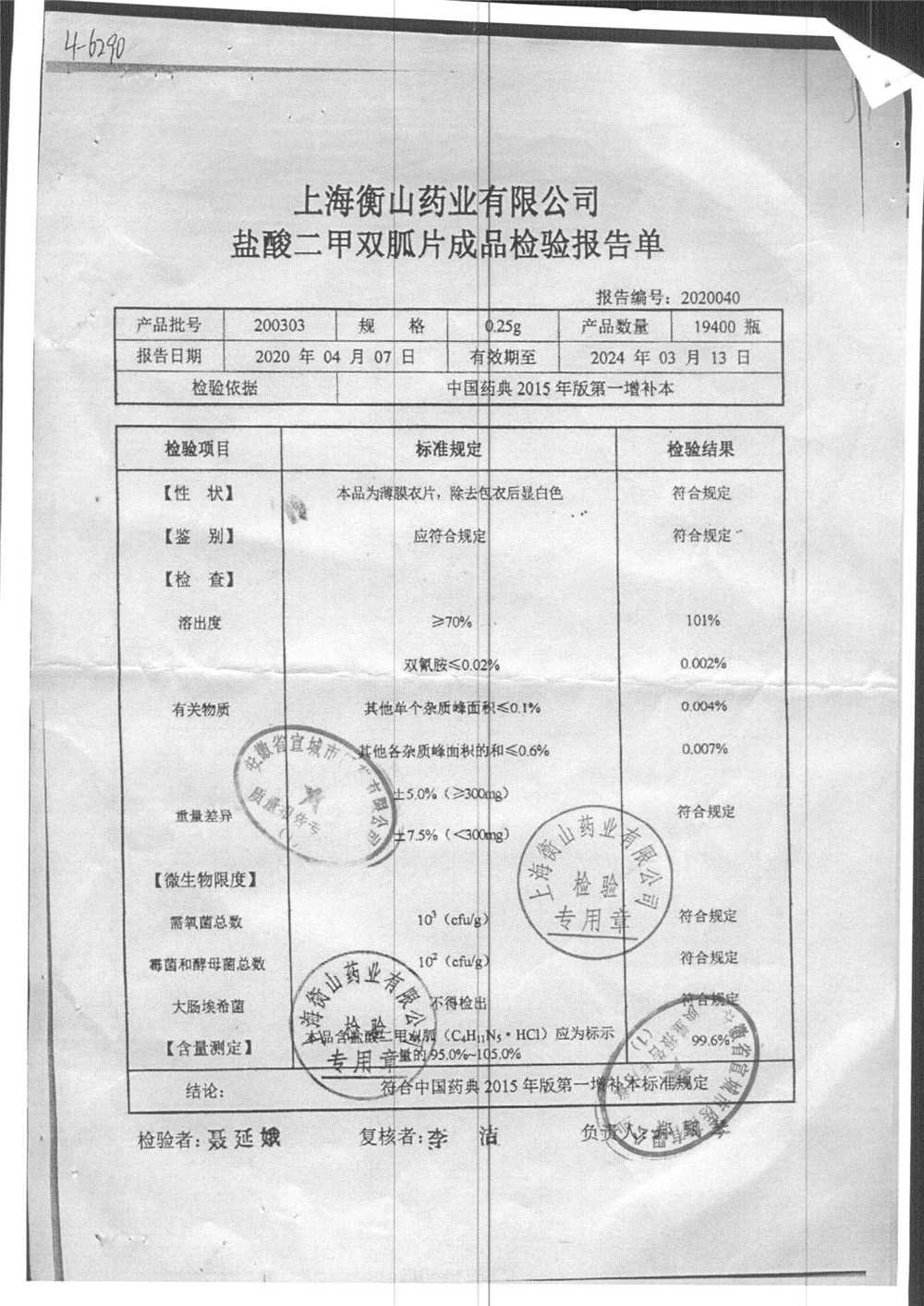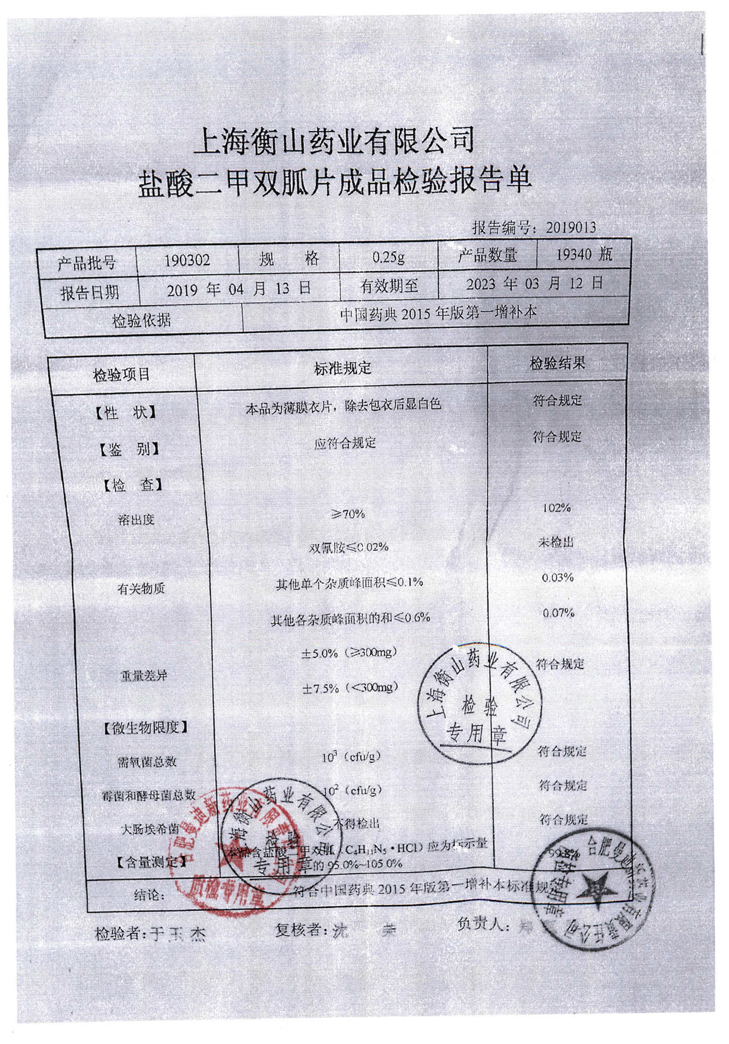 | 鹽酸二甲雙胍片 | 0.25g | 190302 | 查看詳情 |