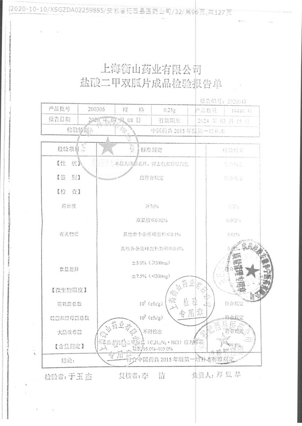 | 鹽酸二甲雙胍片 | 0.25g | 190912 | 查看詳情 |