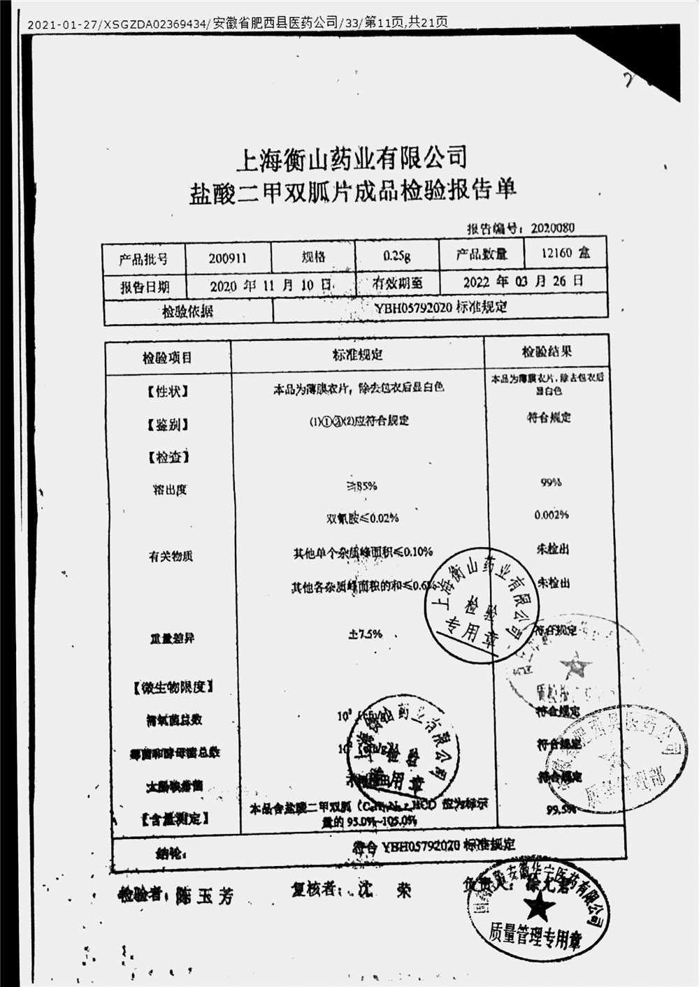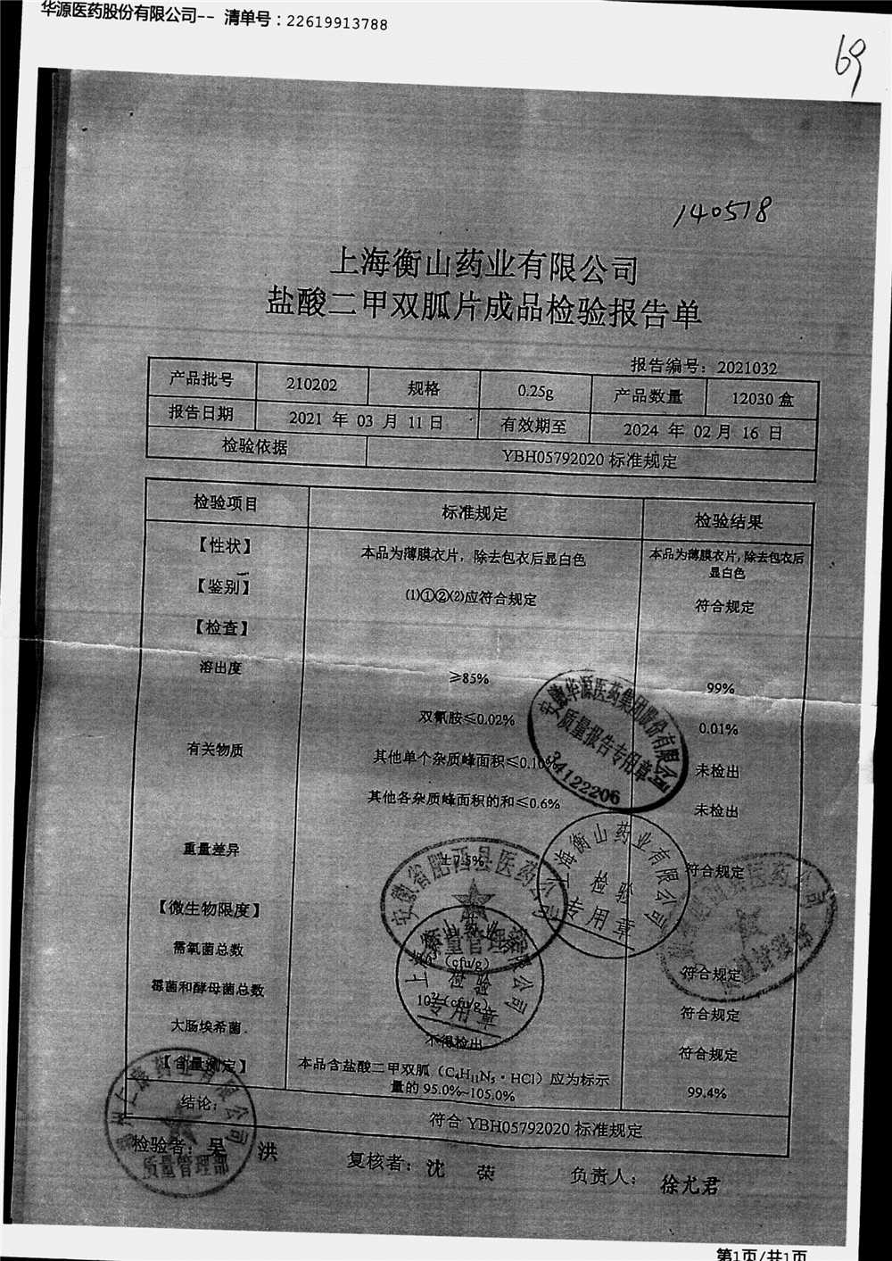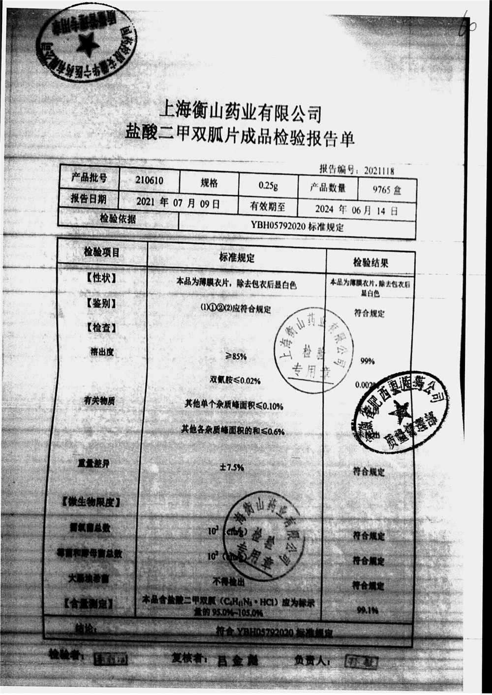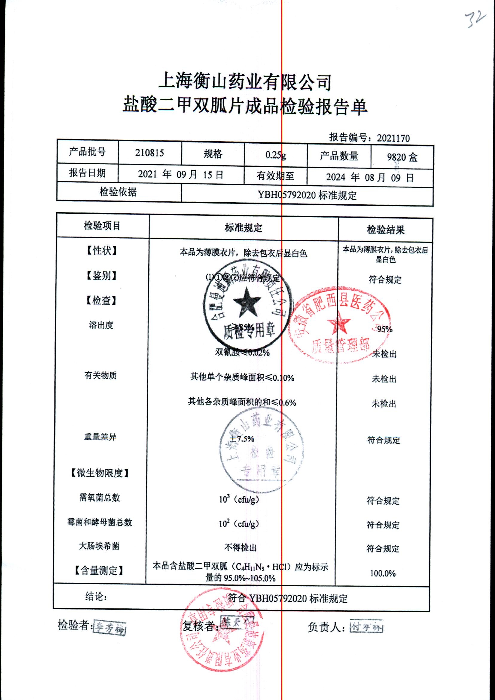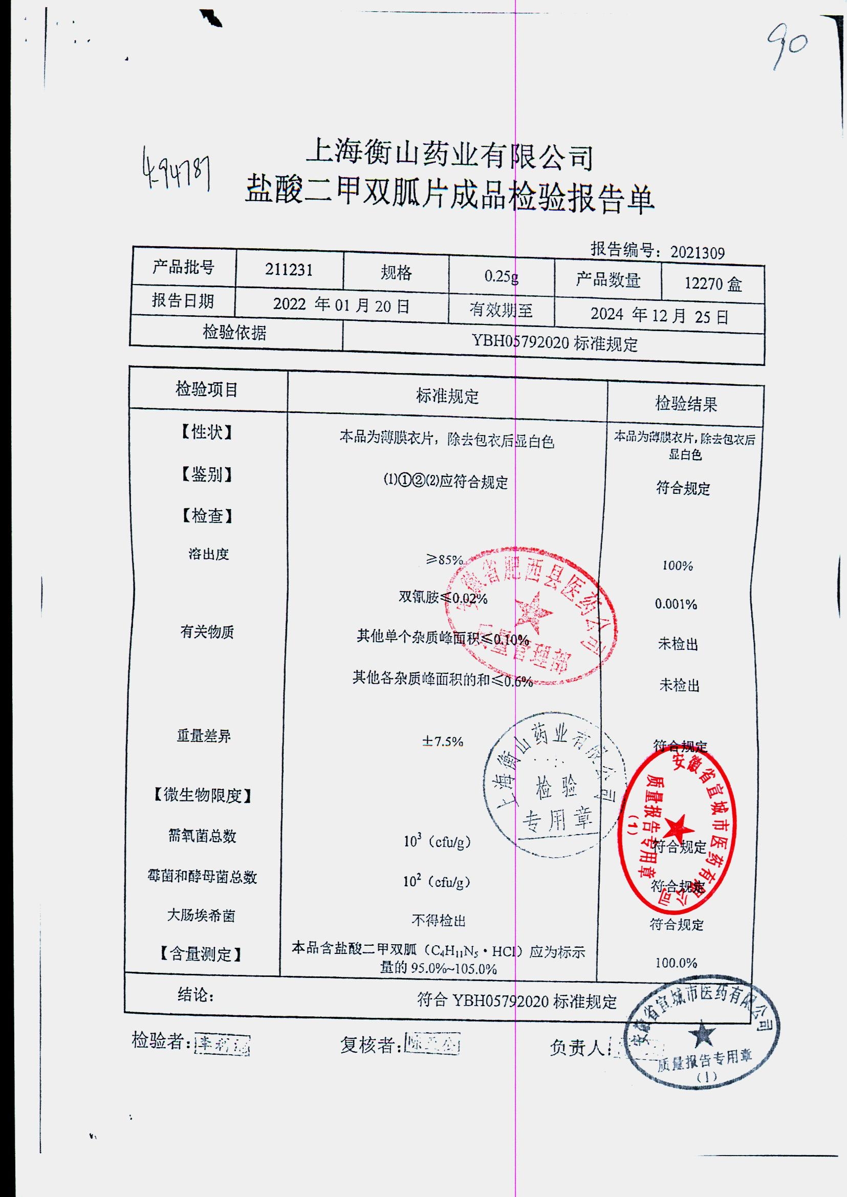 | 鹽酸二甲雙胍片 | 0.25g | 210814 | 查看詳情 |