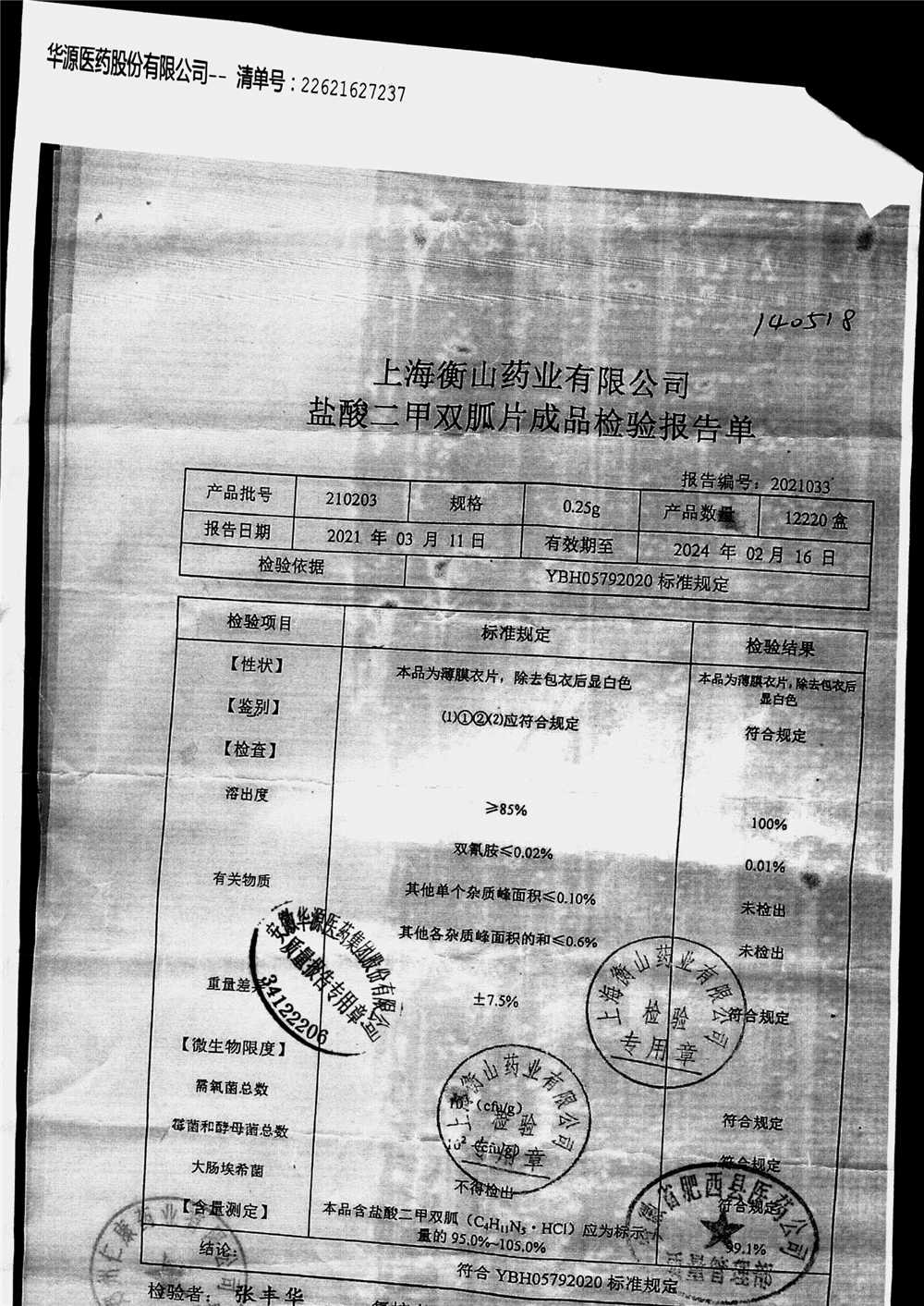 | 鹽酸二甲雙胍片 | 0.25g | 210516 | 查看詳情 |
