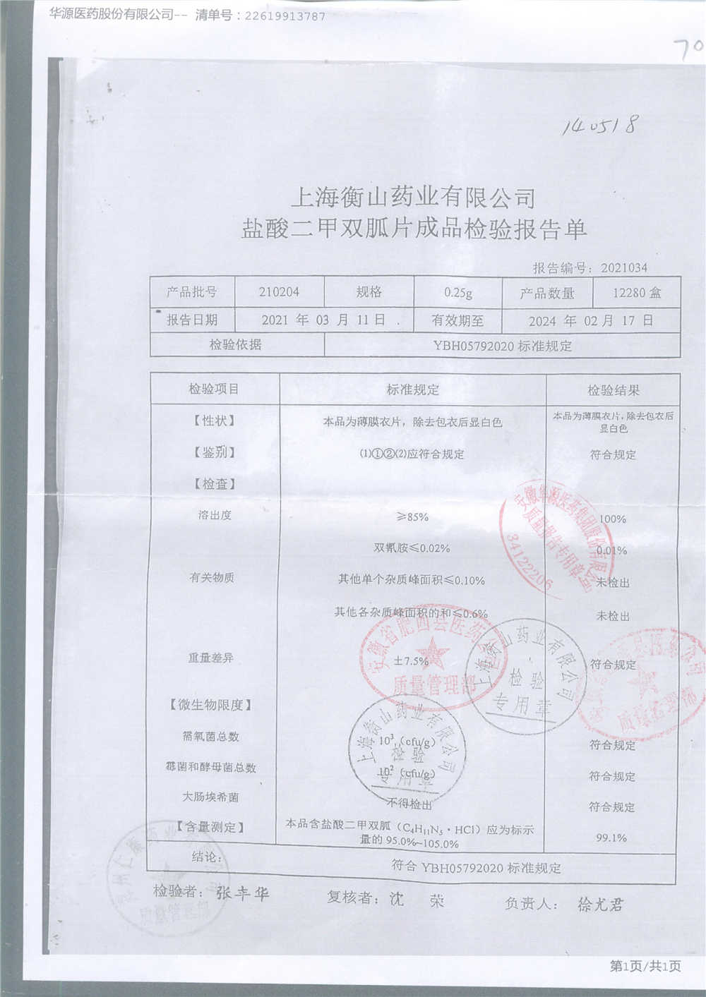 | 鹽酸二甲雙胍片 | 0.25g | 210204 | 查看詳情 |