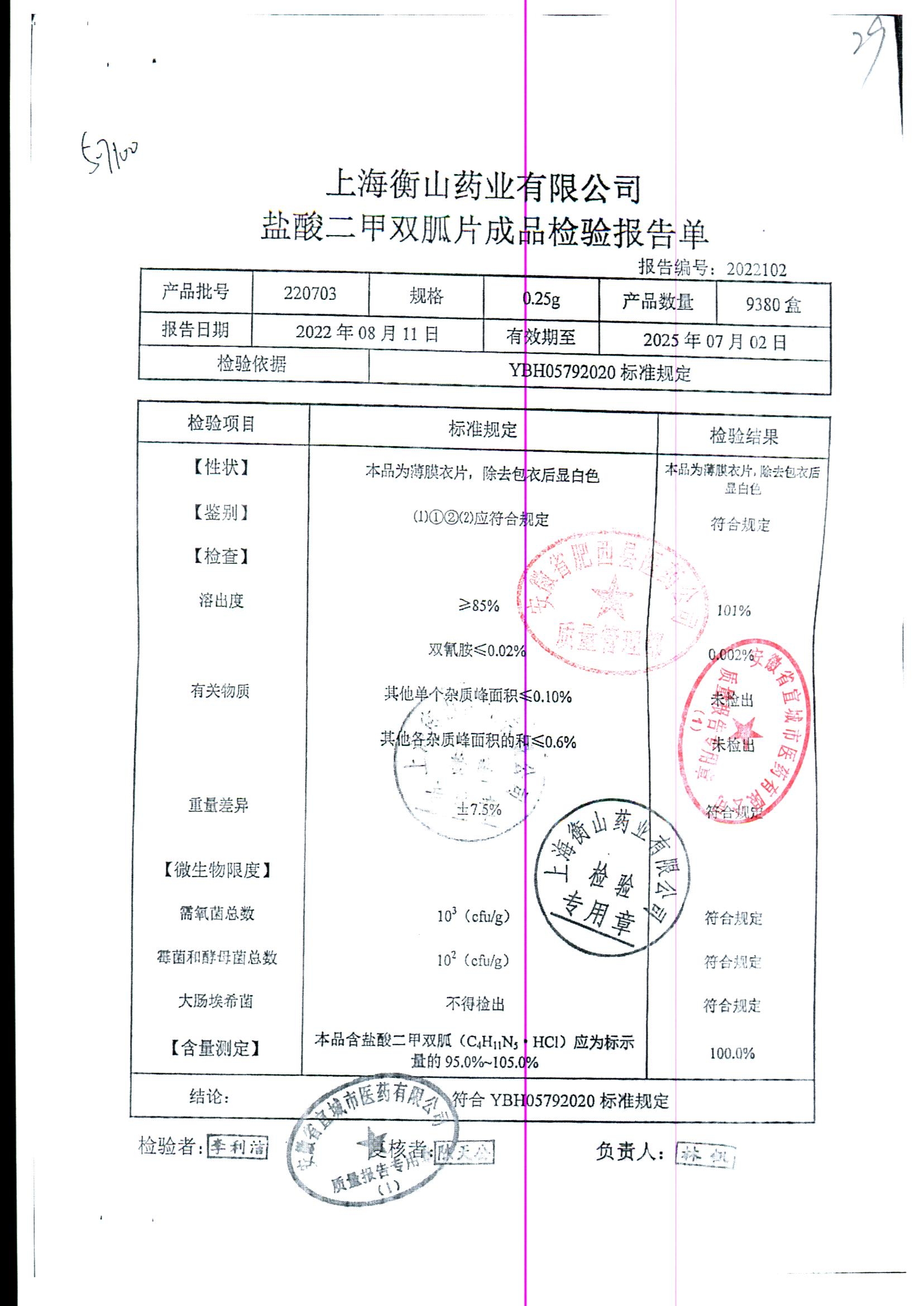 | 鹽酸二甲雙胍片 | 0.25g | 220703 | 查看詳情 |