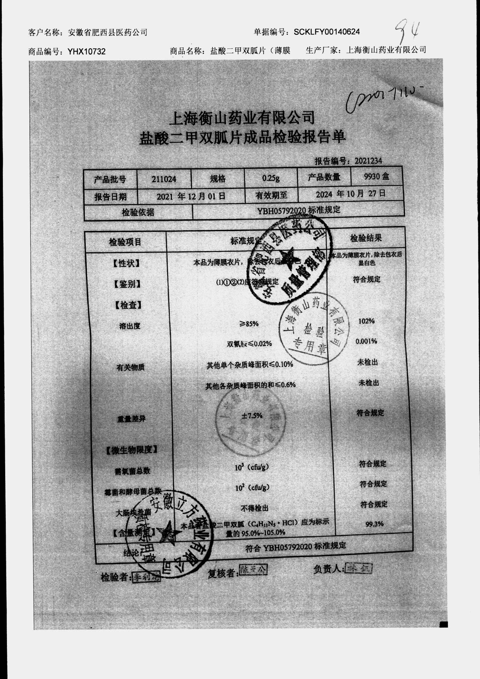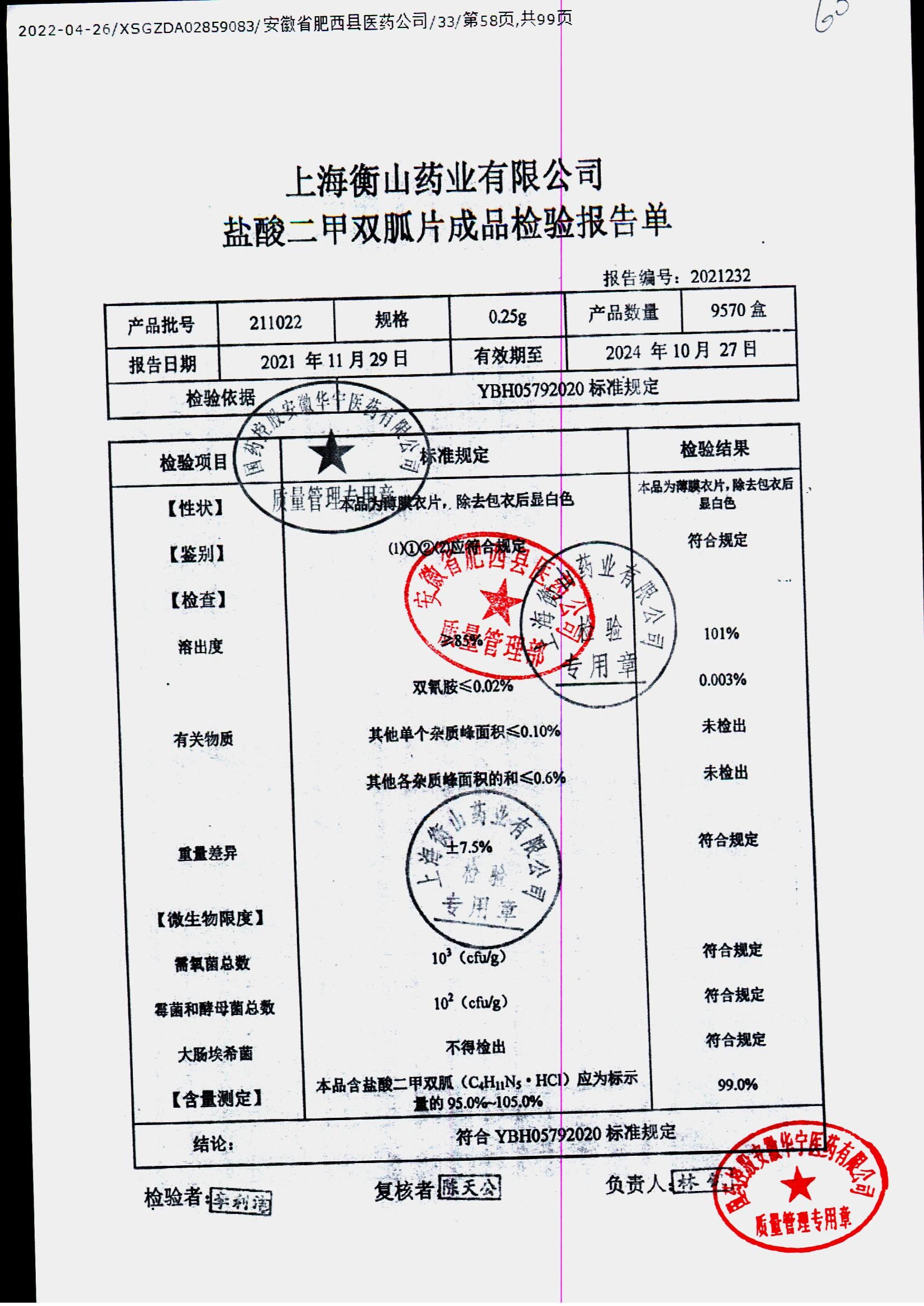 | 鹽酸二甲雙胍片 | 0.25g | 211022 | 查看詳情 |