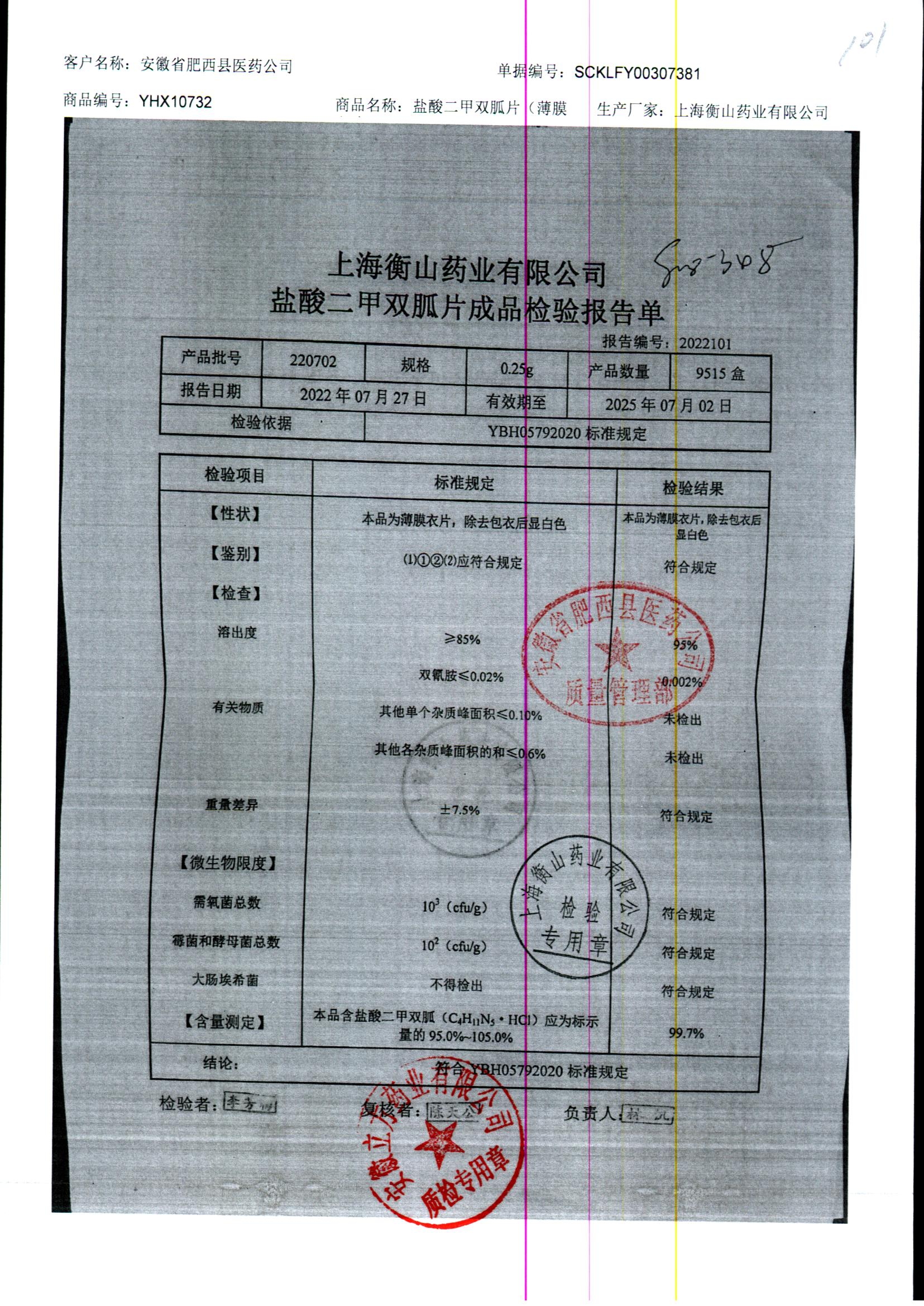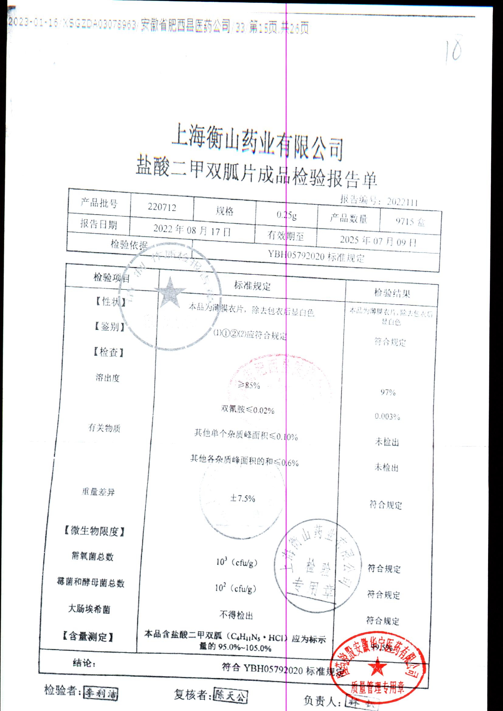 | 鹽酸二甲雙胍片 | 0.25g | 210723 | 查看詳情 |