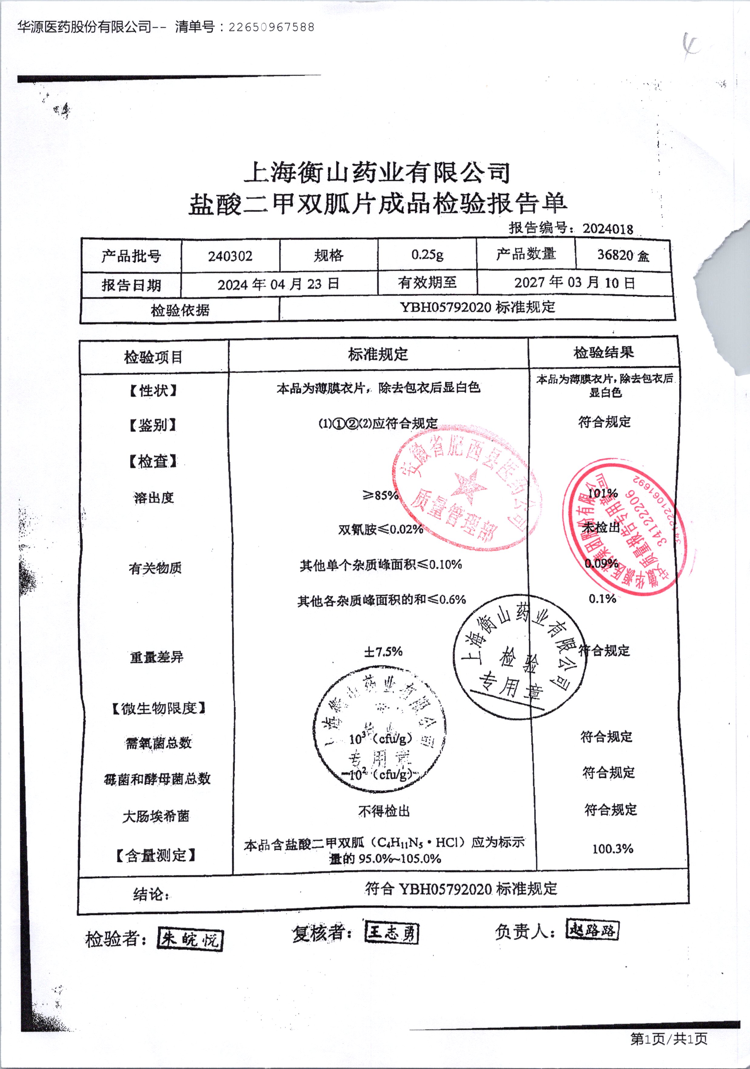 | 鹽酸二甲雙胍片 | 0.25g | 210524 | 查看詳情 |
