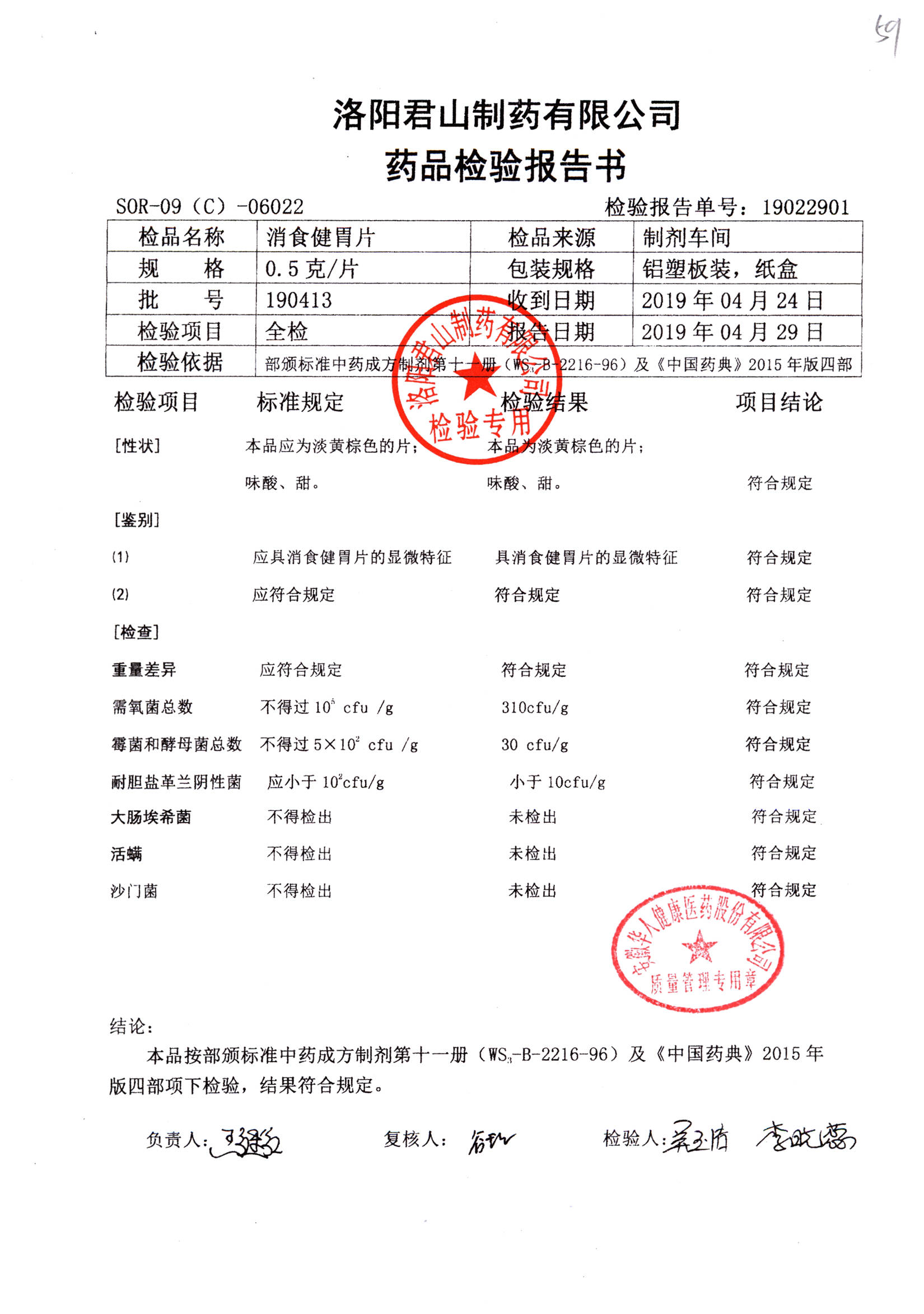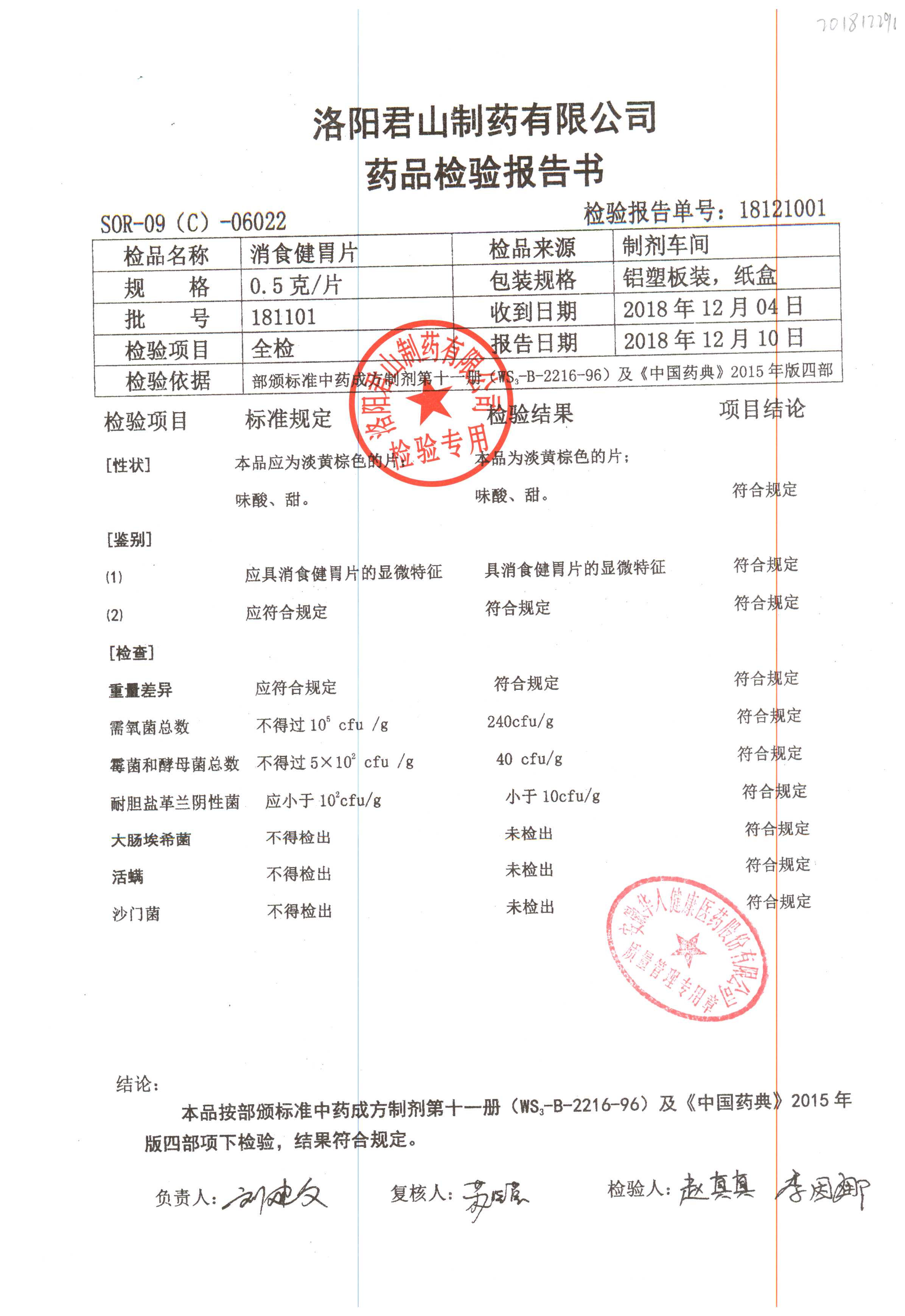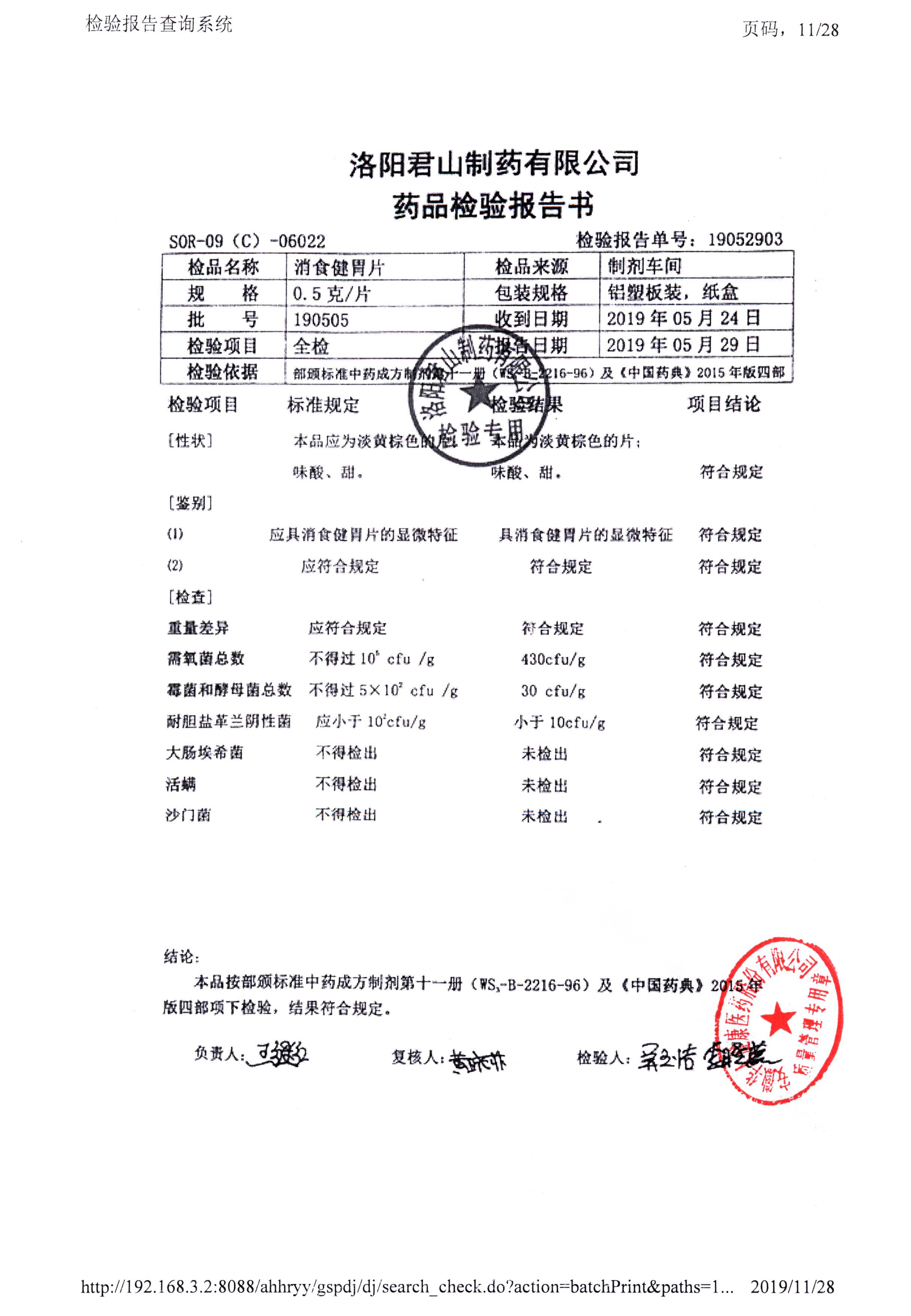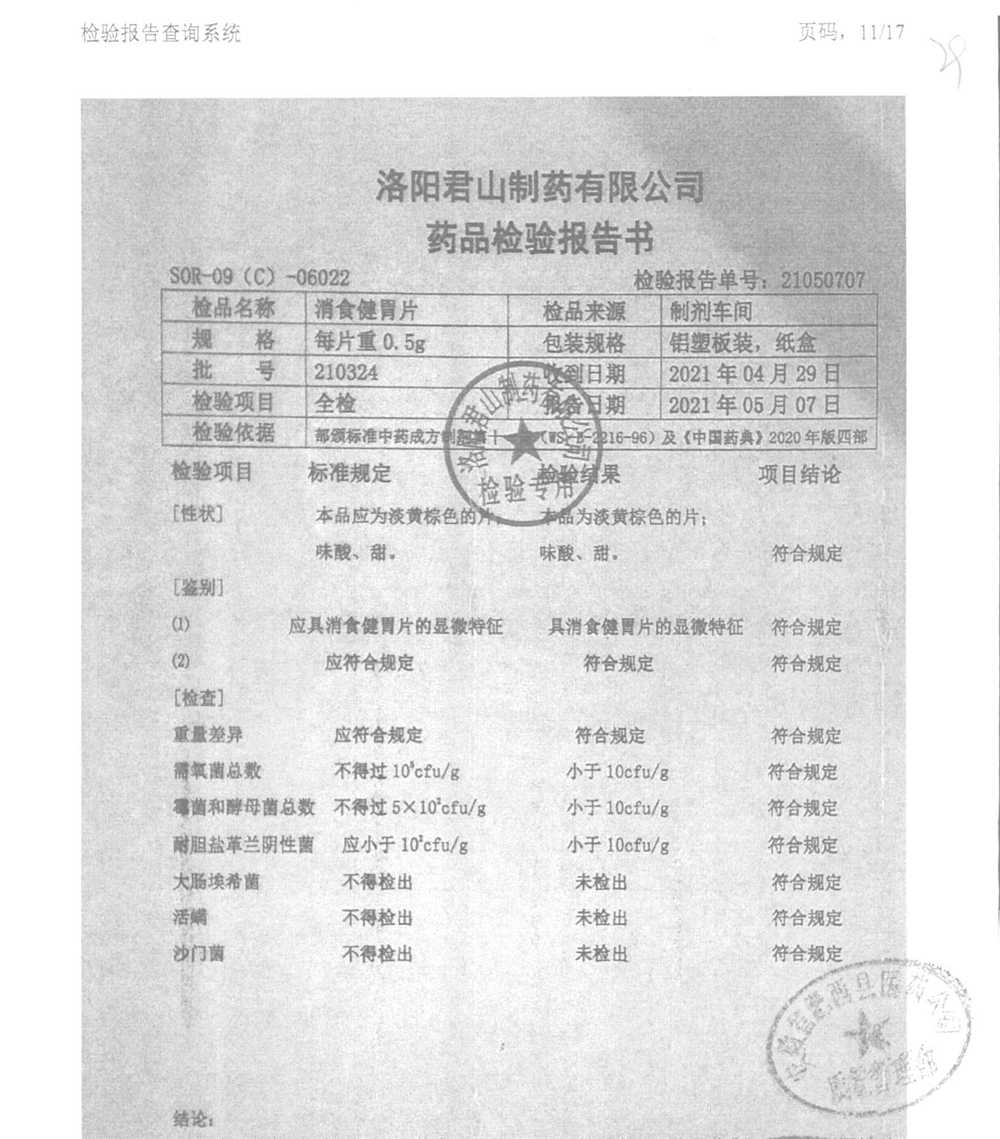 | 消食健胃片 | 0.5g | 180711 | 查看詳情 |