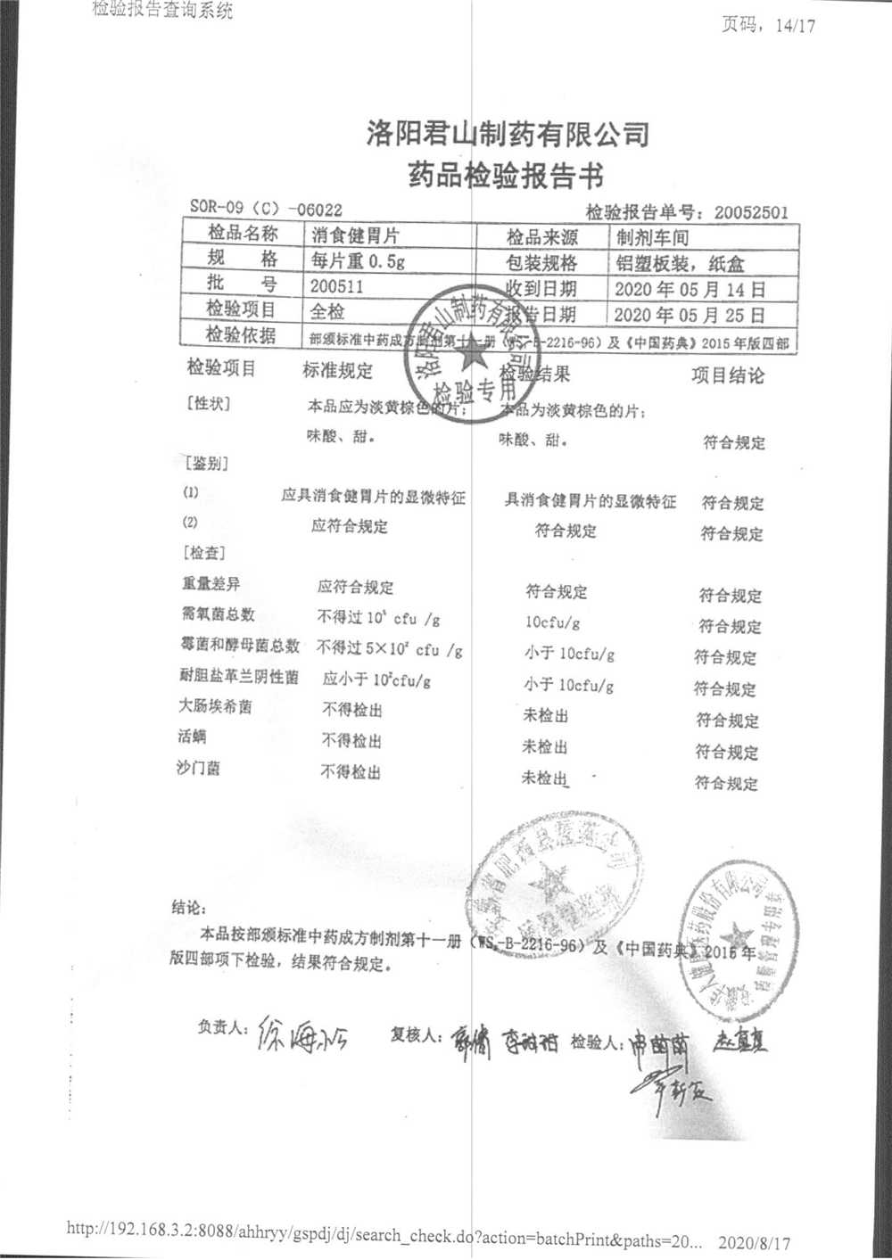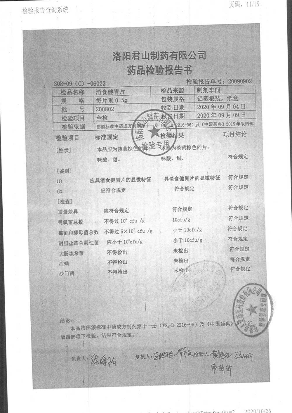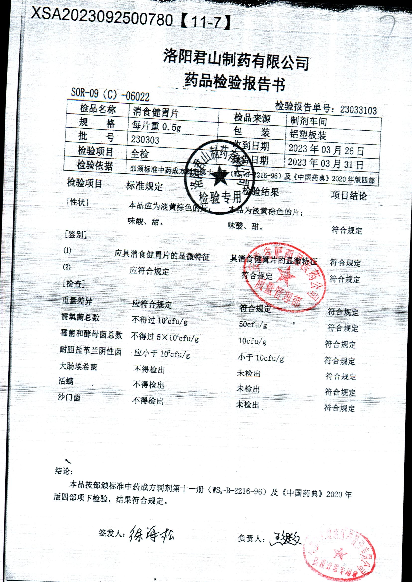 | 消食健胃片 | 0.5g | 180711 | 查看詳情 |