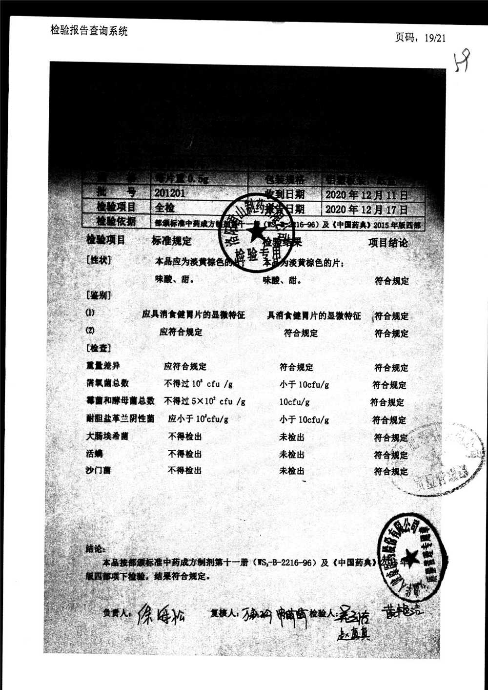 | 消食健胃片 | 0.5g | 181101 | 查看詳情 |