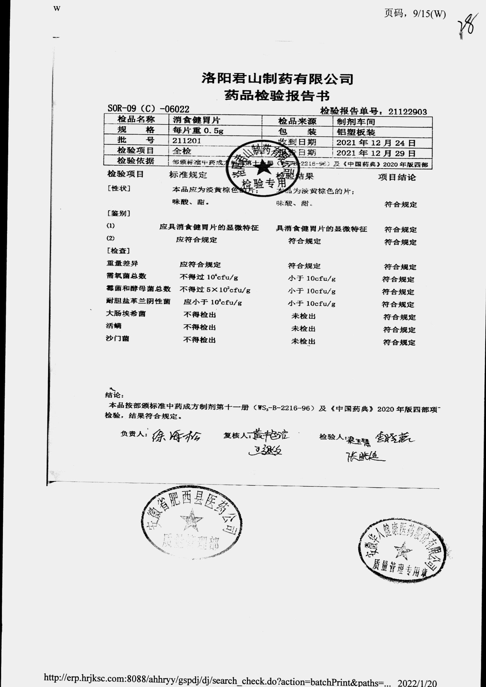 | 消食健胃片 | 0.5g | 220201 | 查看詳情 |