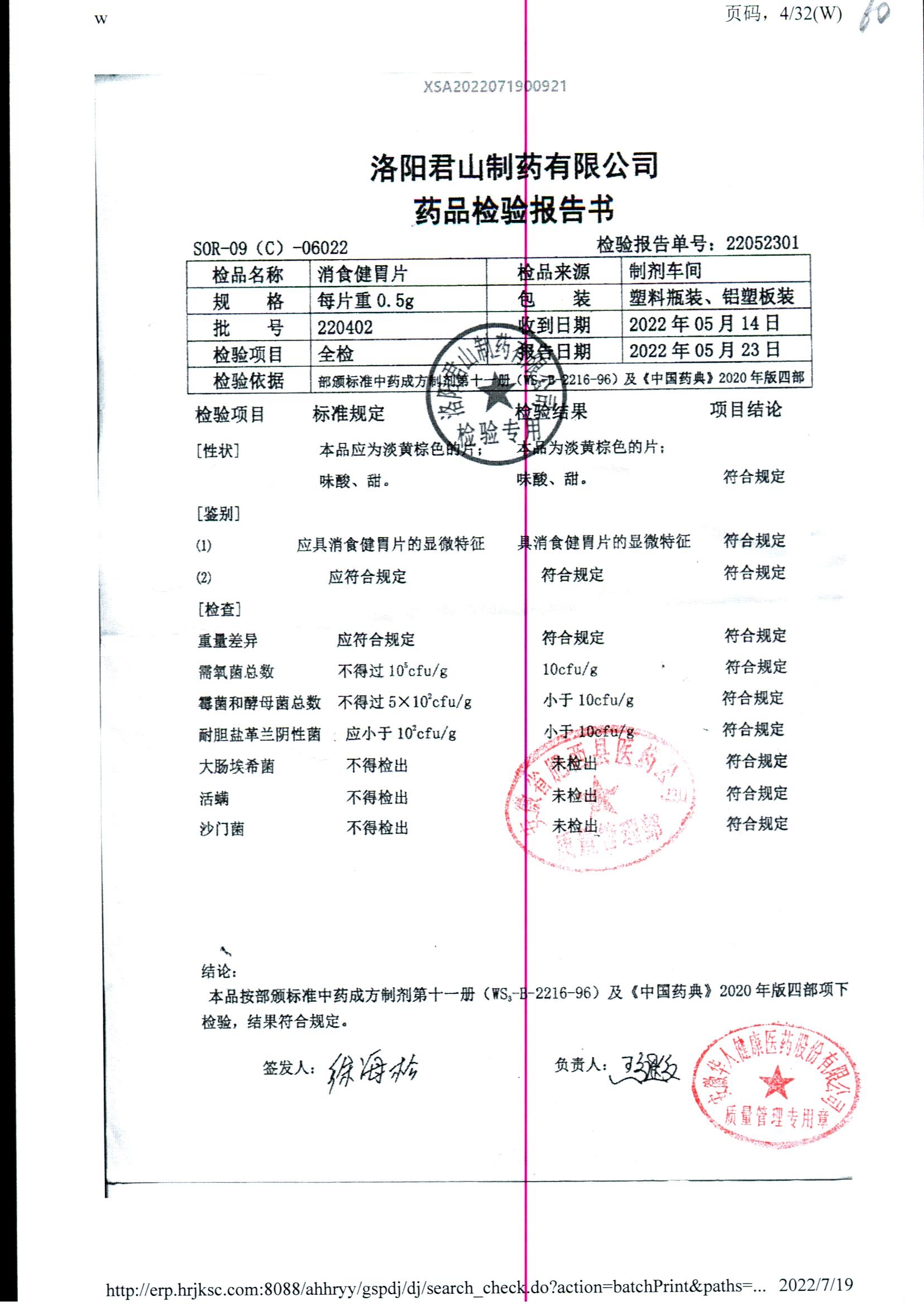| 消食健胃片 | 0.5g | 220402 | 查看詳情 |