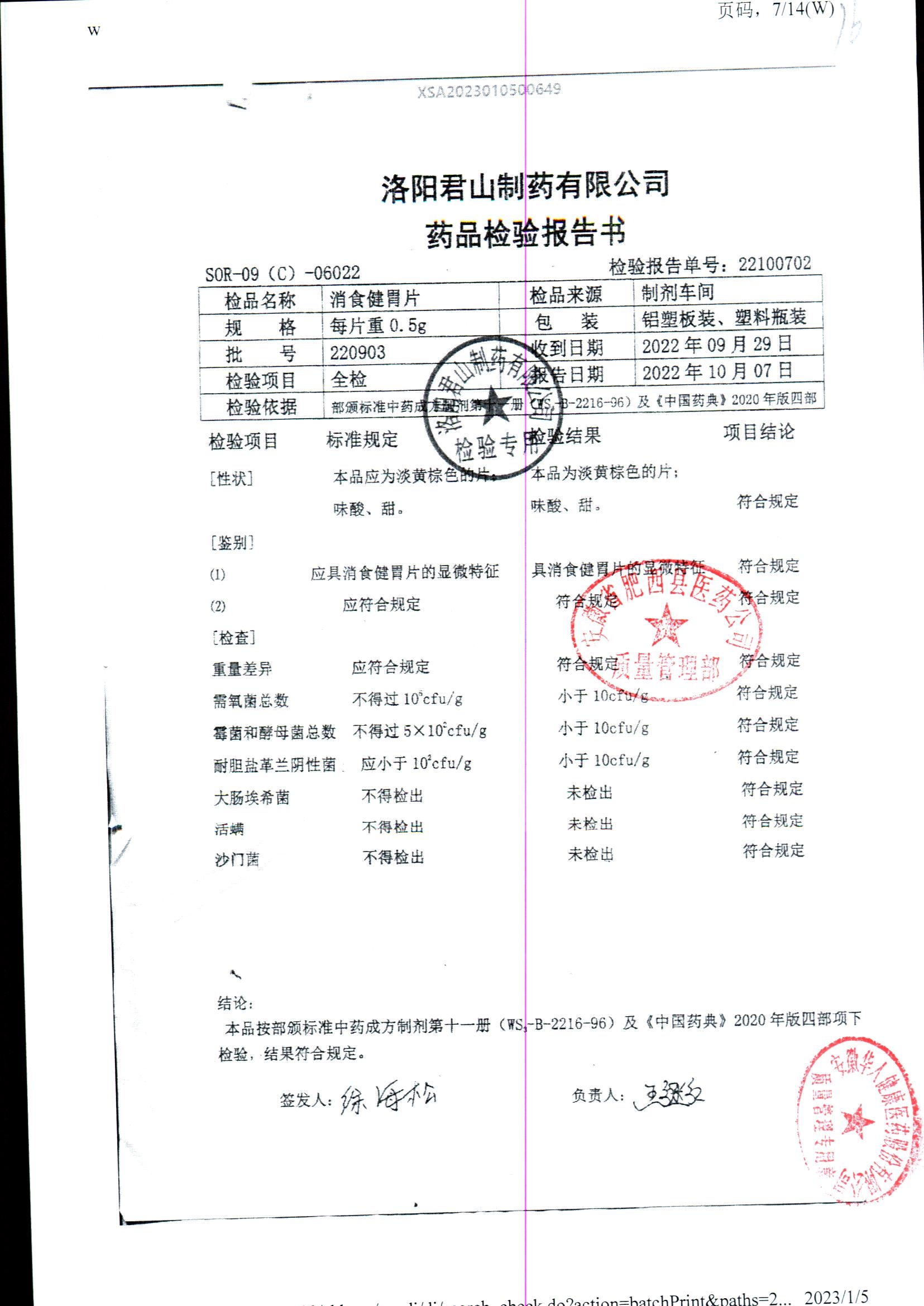 | 消食健胃片 | 0.5g | 220903 | 查看詳情 |