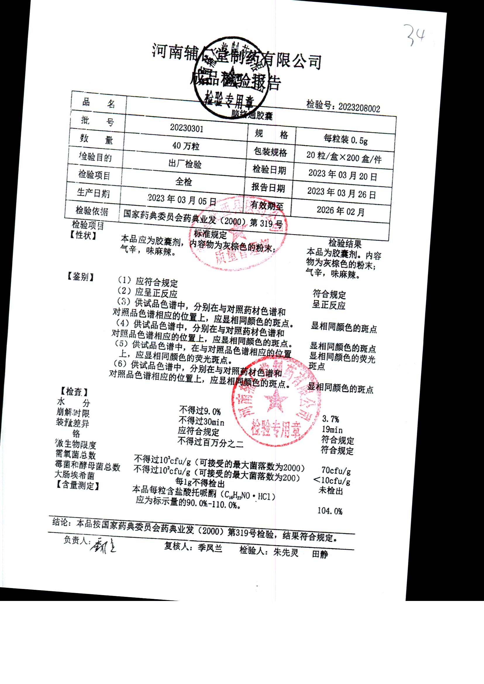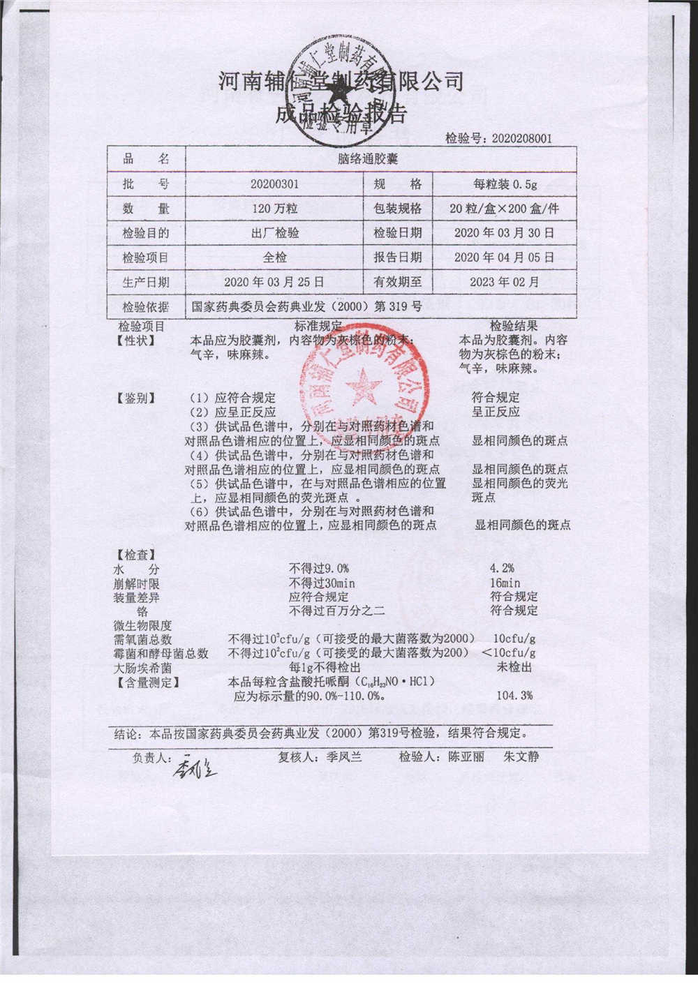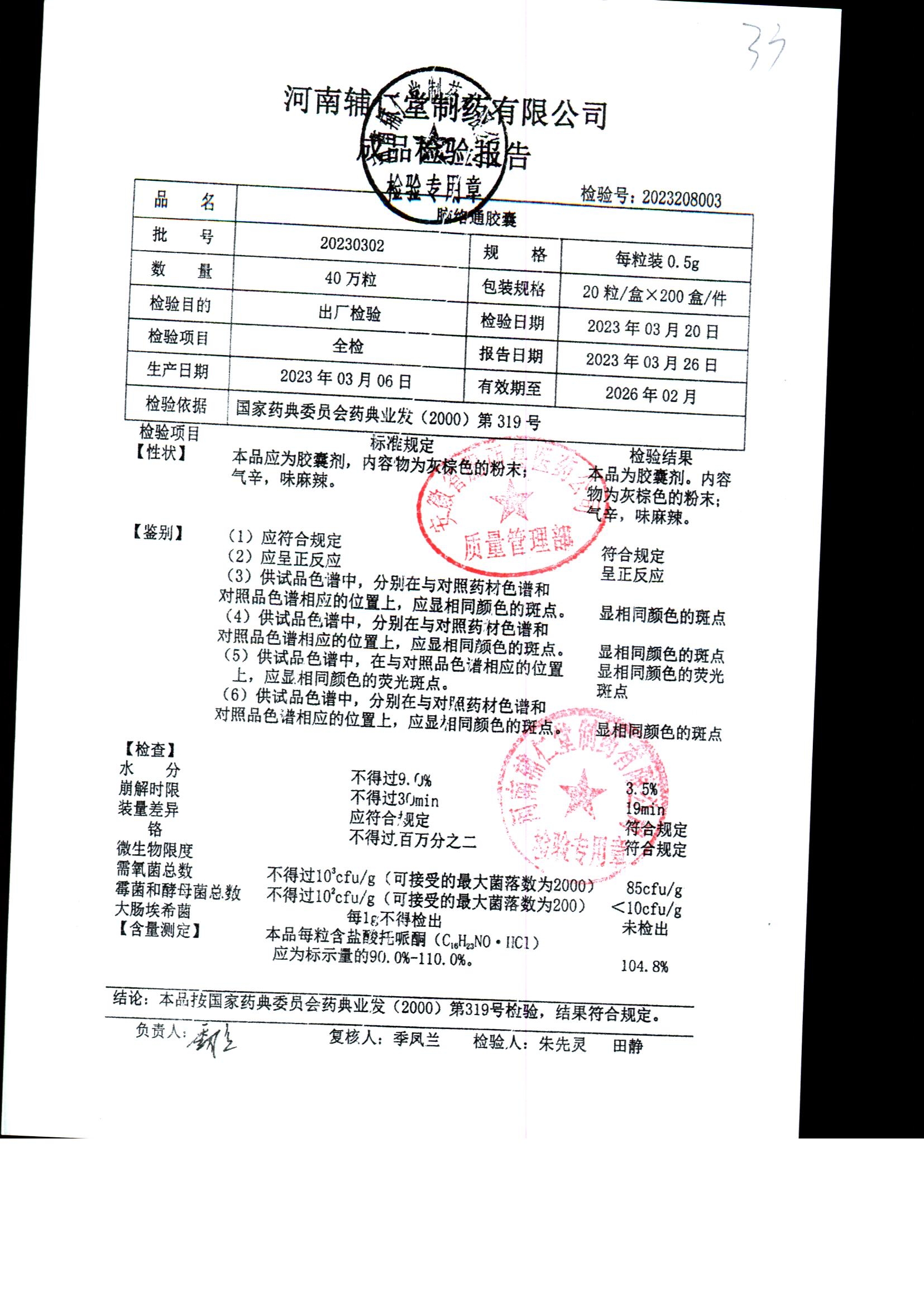 | 腦絡通膠囊 | 0.5g | 20230302 | 查看詳情 |