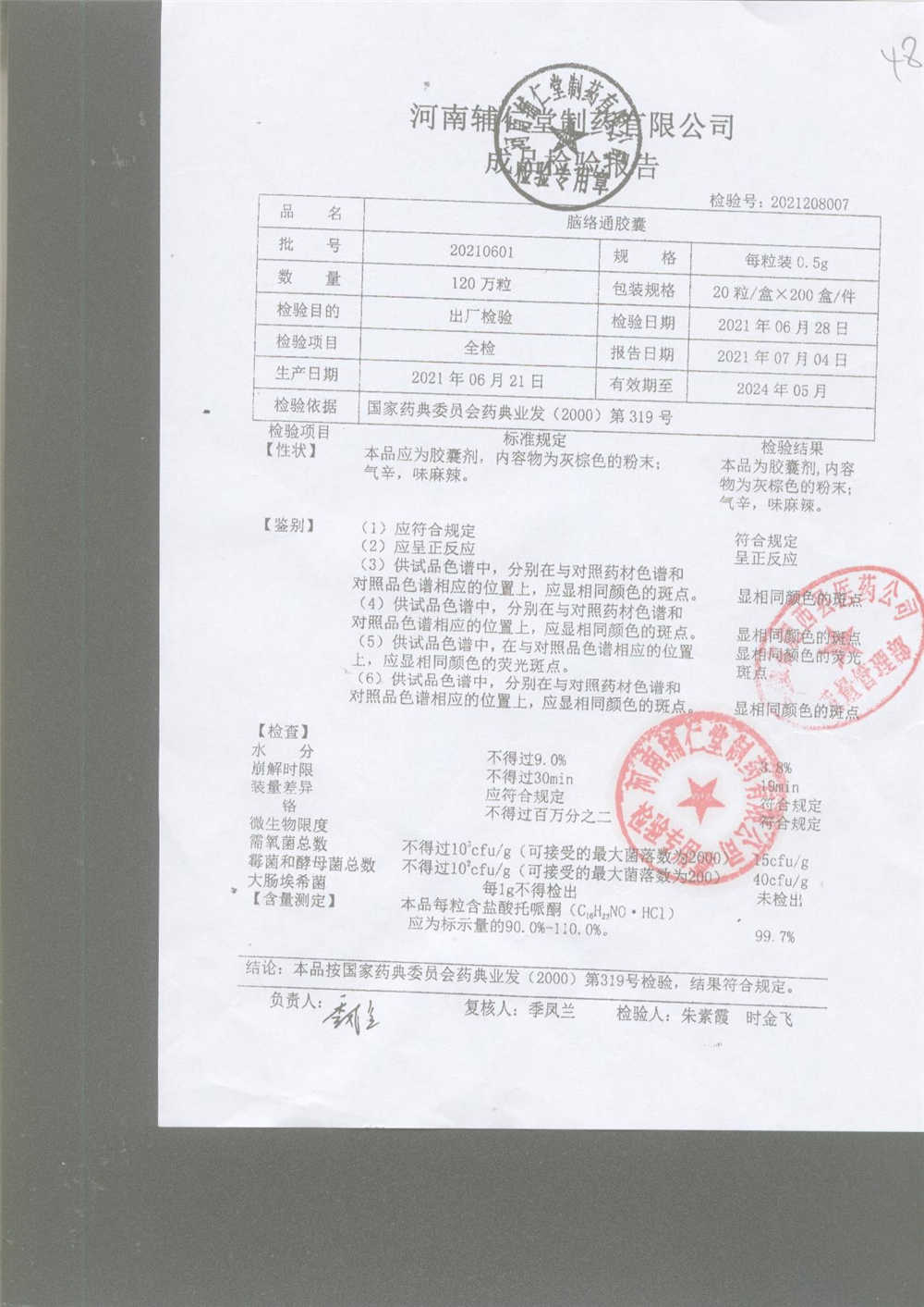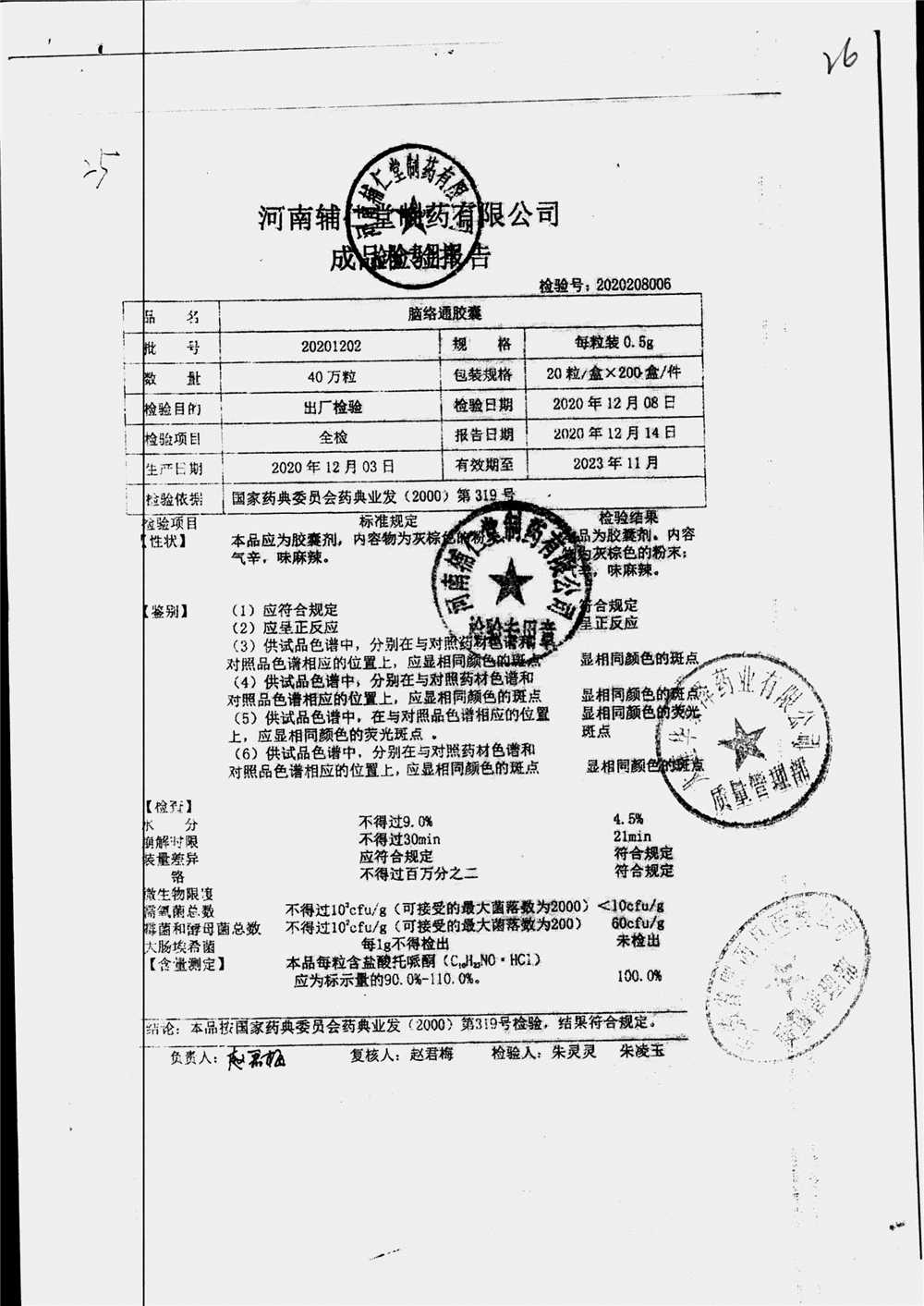 | 腦絡通膠囊 | 0.5g | 20201202 | 查看詳情 |