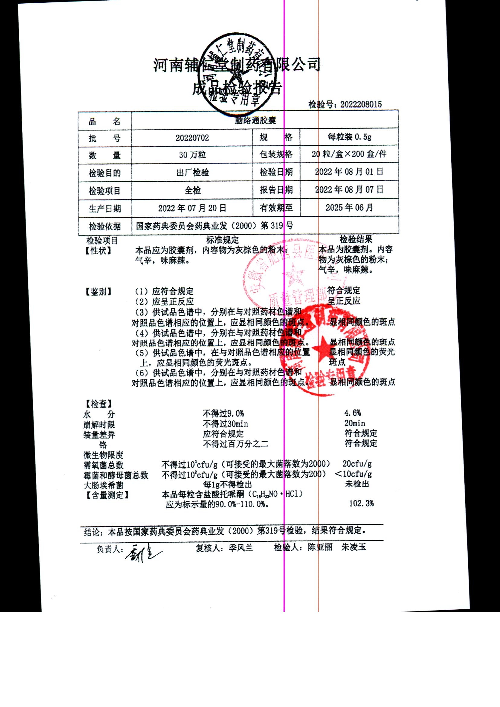 | 腦絡通膠囊 | 0.5g | 20220702 | 查看詳情 |
