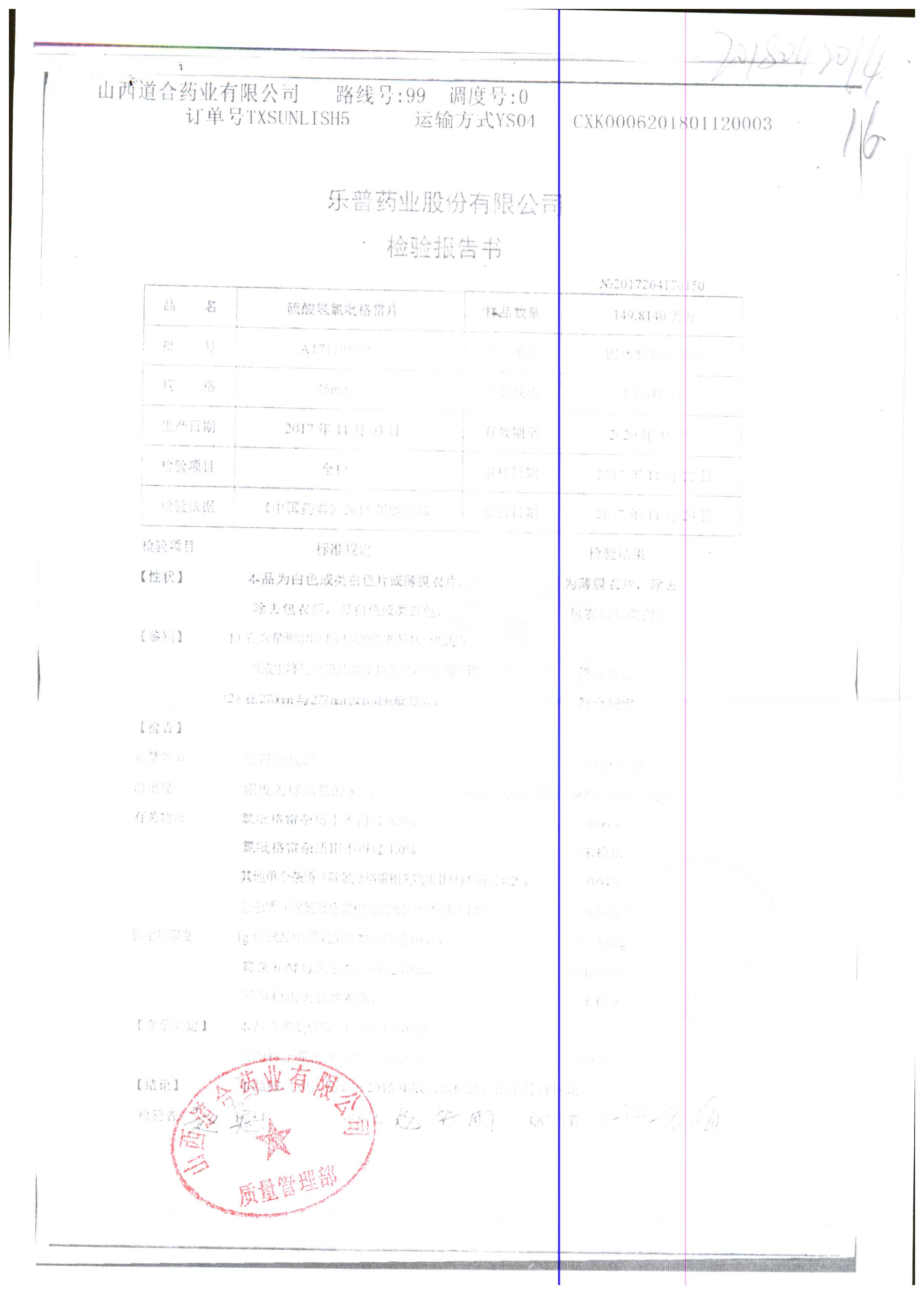| 名稱 | 規(guī)格 | 批號(hào) | 藥檢報(bào)告 |
