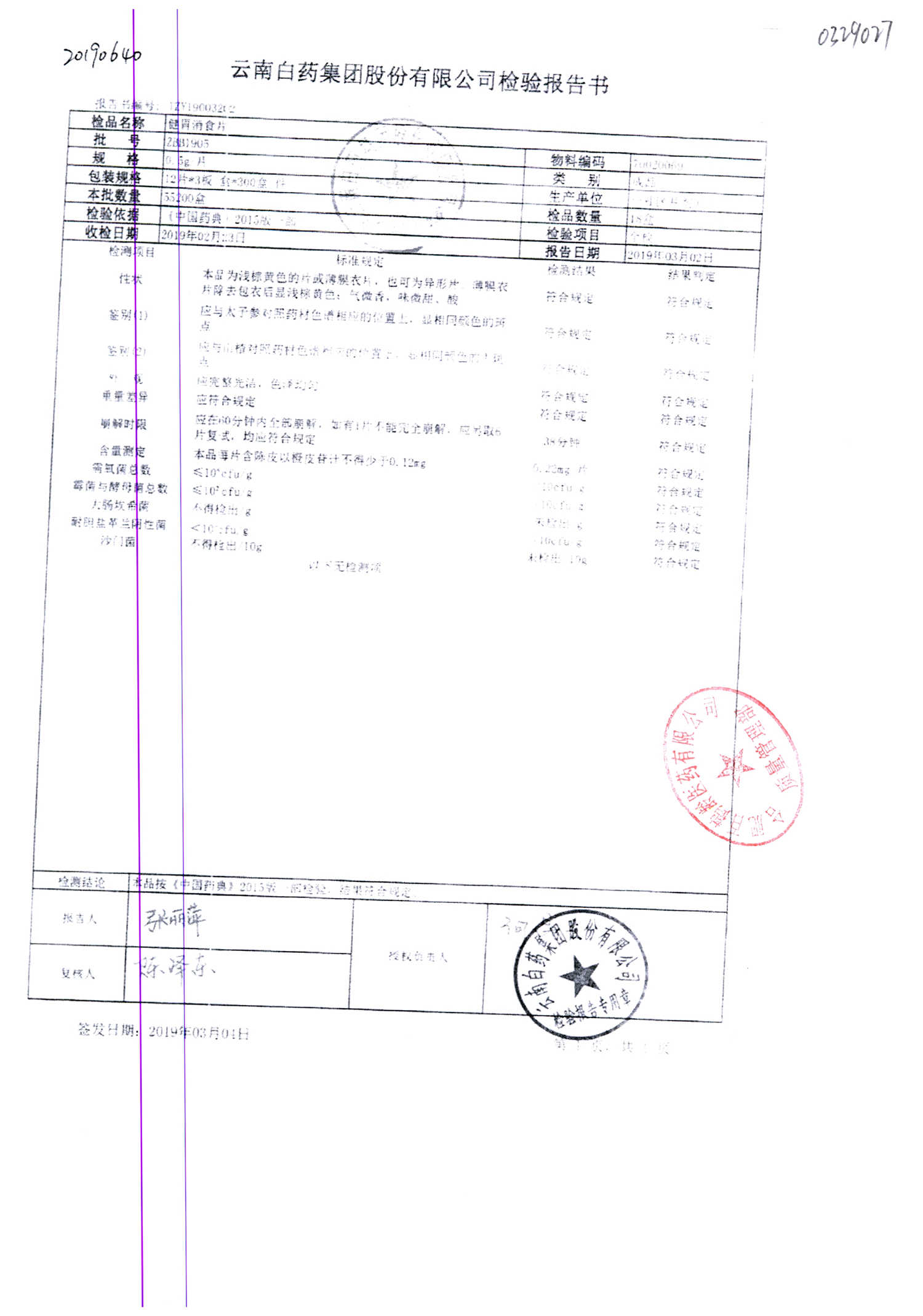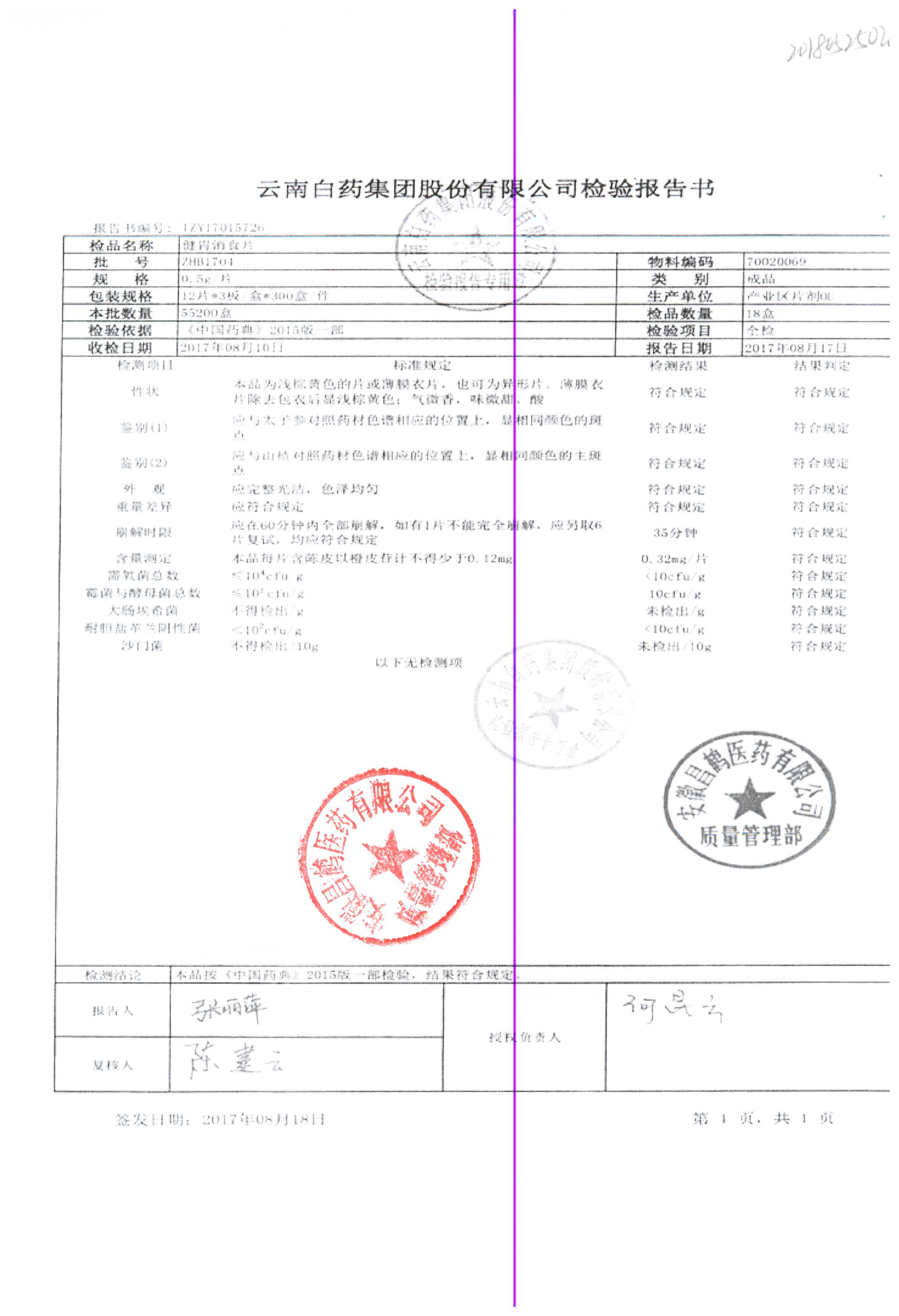 | 名稱 | 規(guī)格 | 批號 | 藥檢報告 |