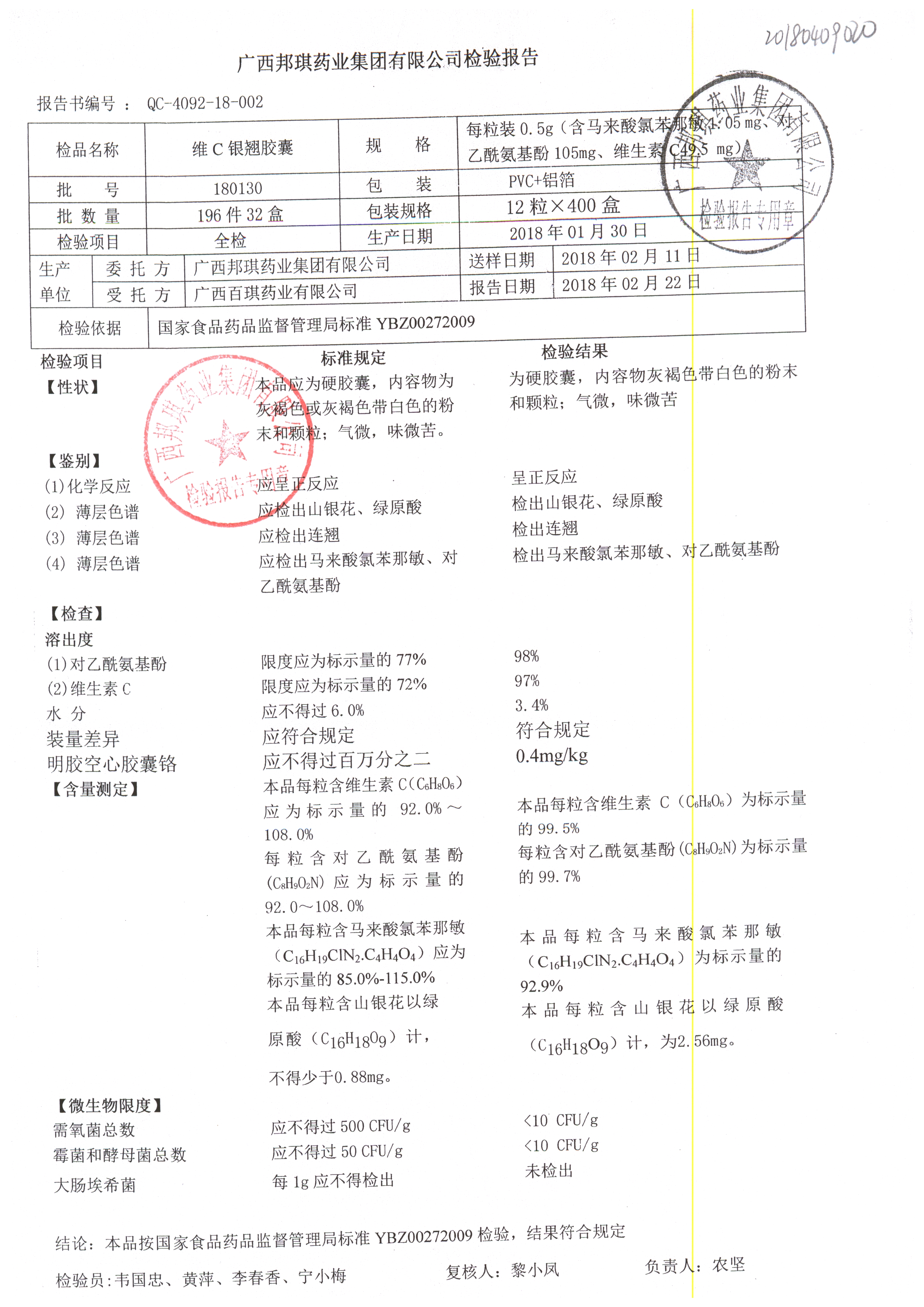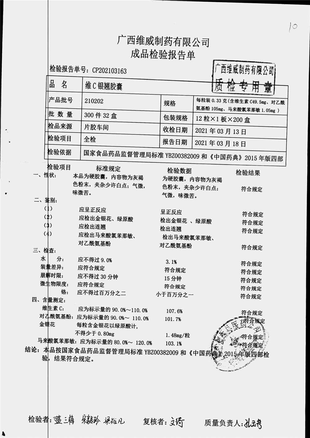 名稱 規(guī)格 批號 藥檢報告
