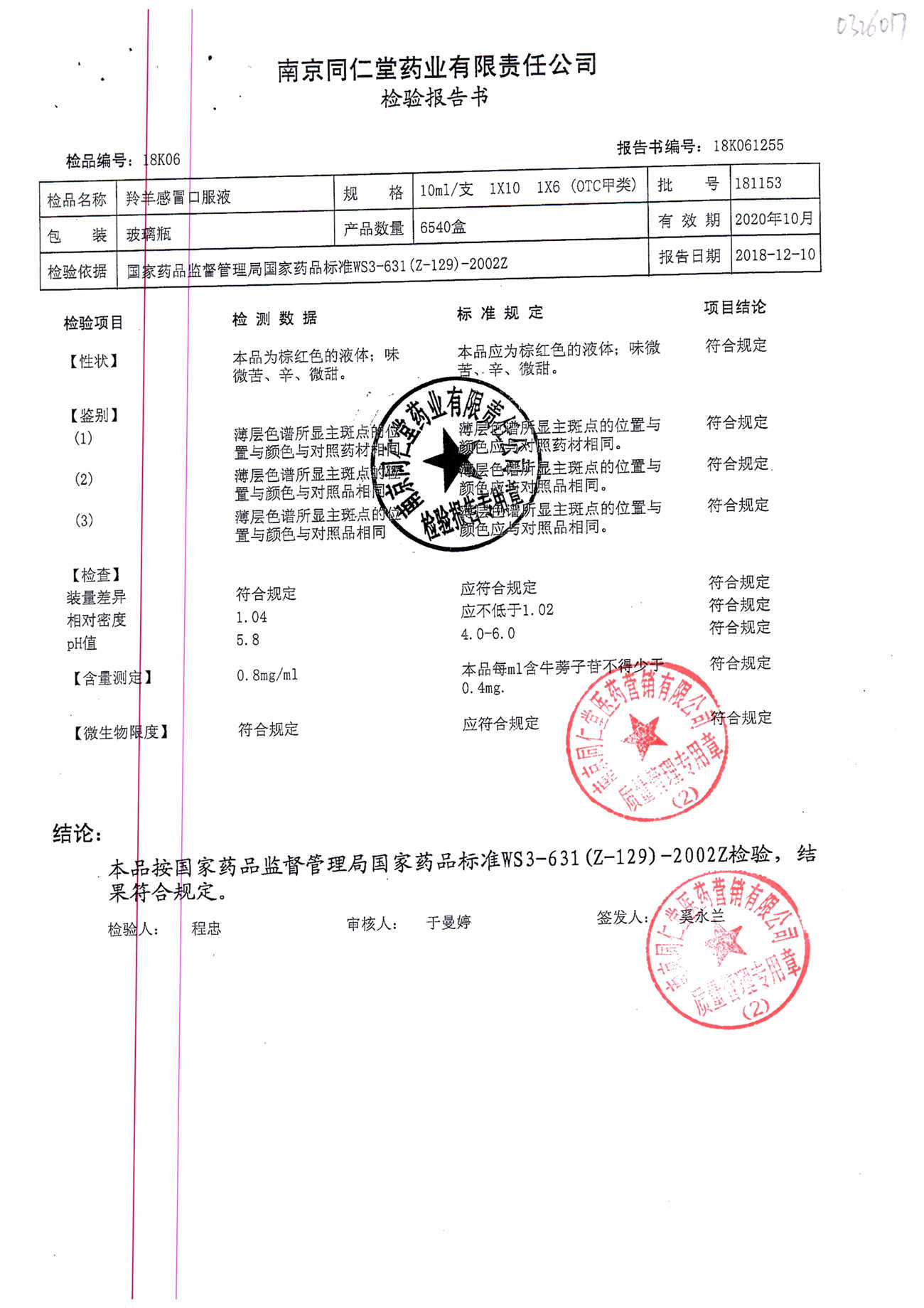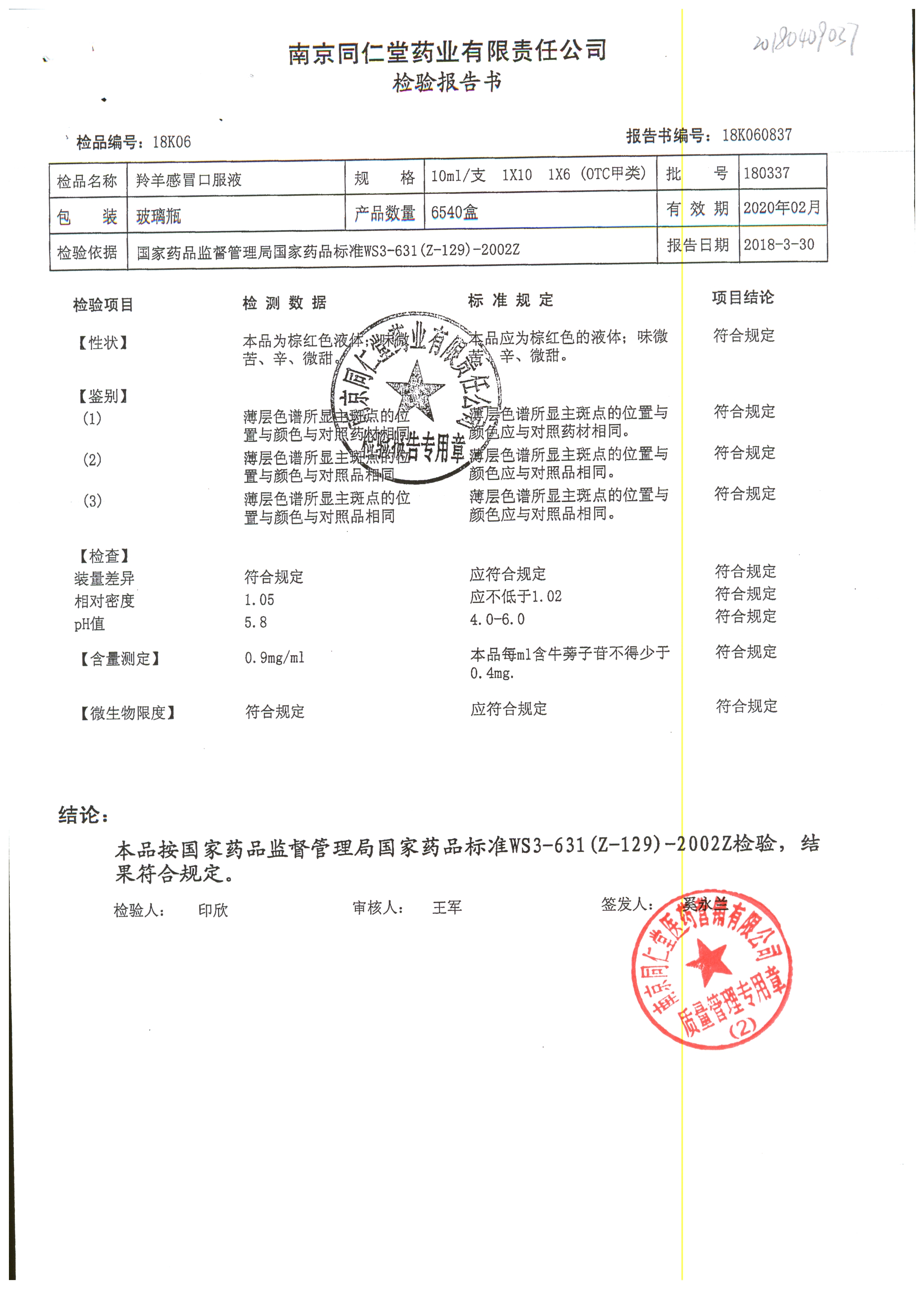 | 羚羊感冒口服液 | 10ml | 180618 | 查看詳情 |