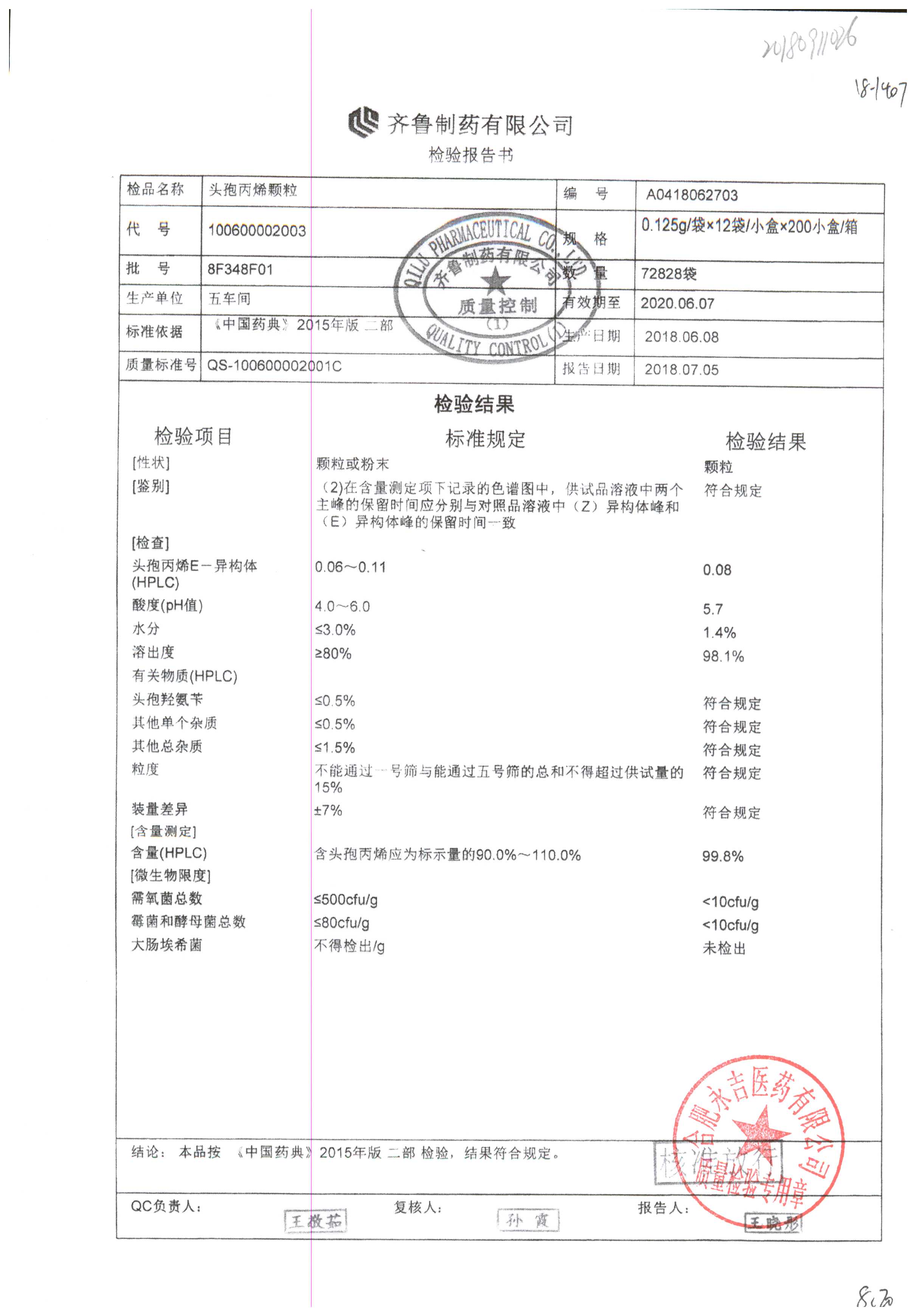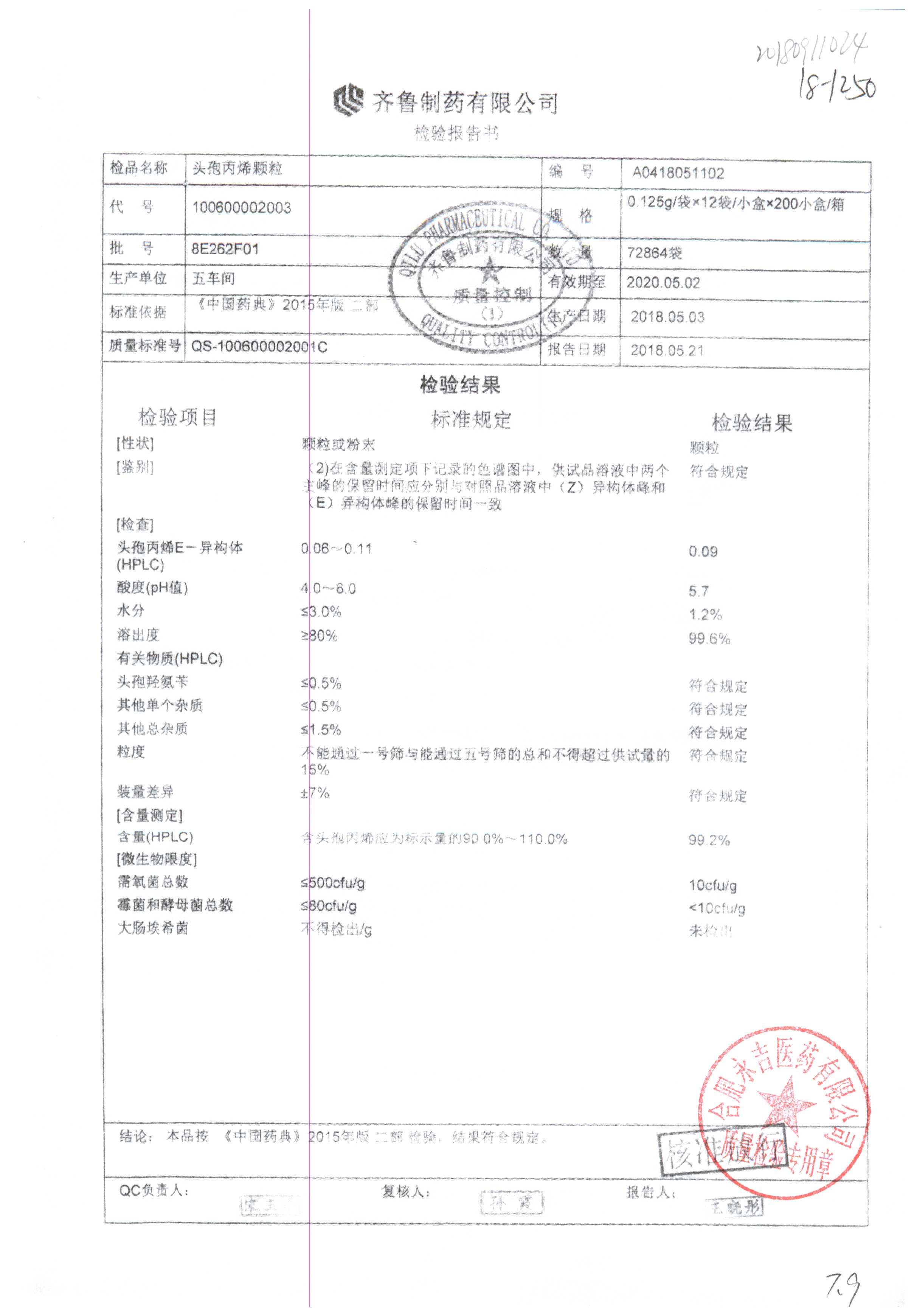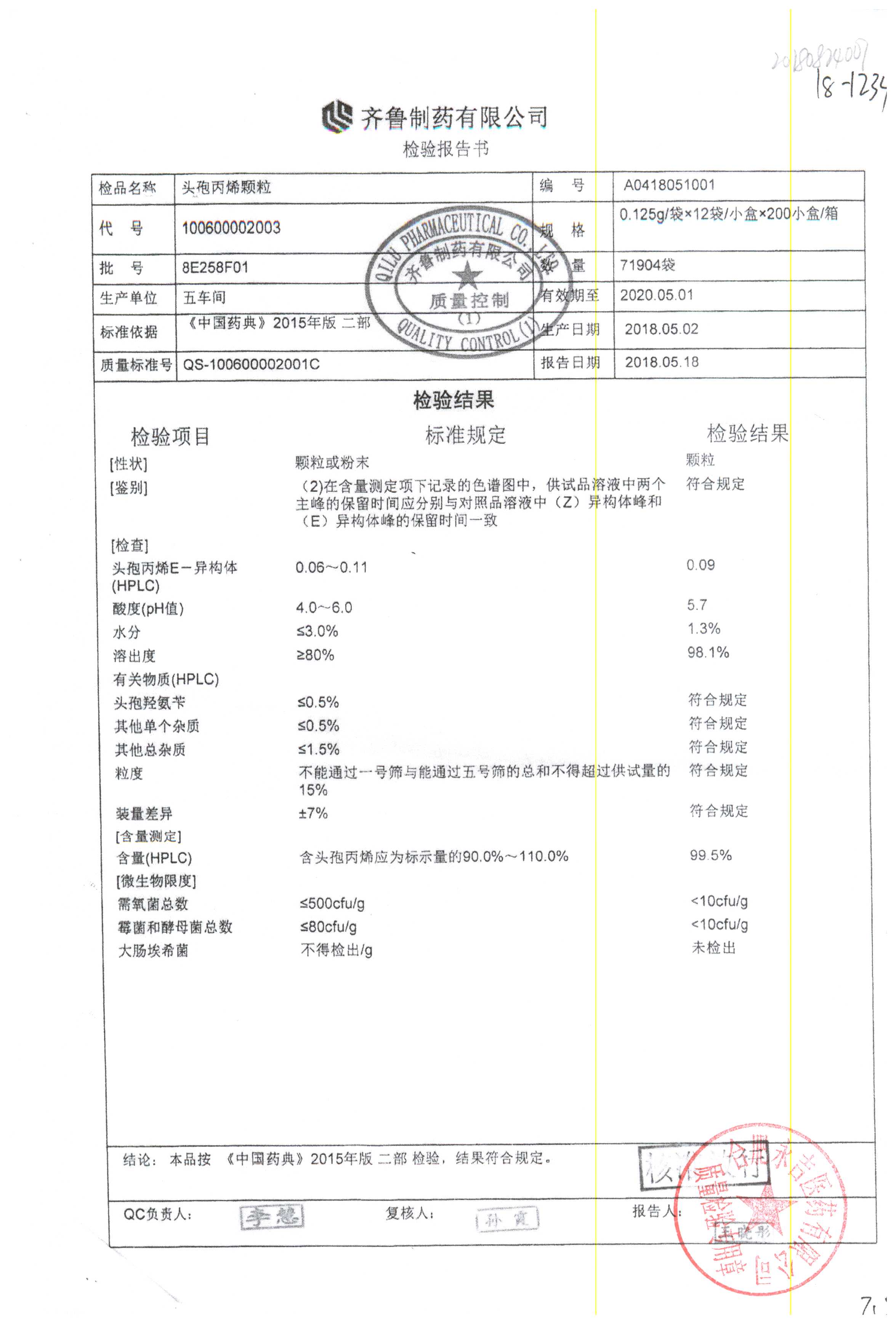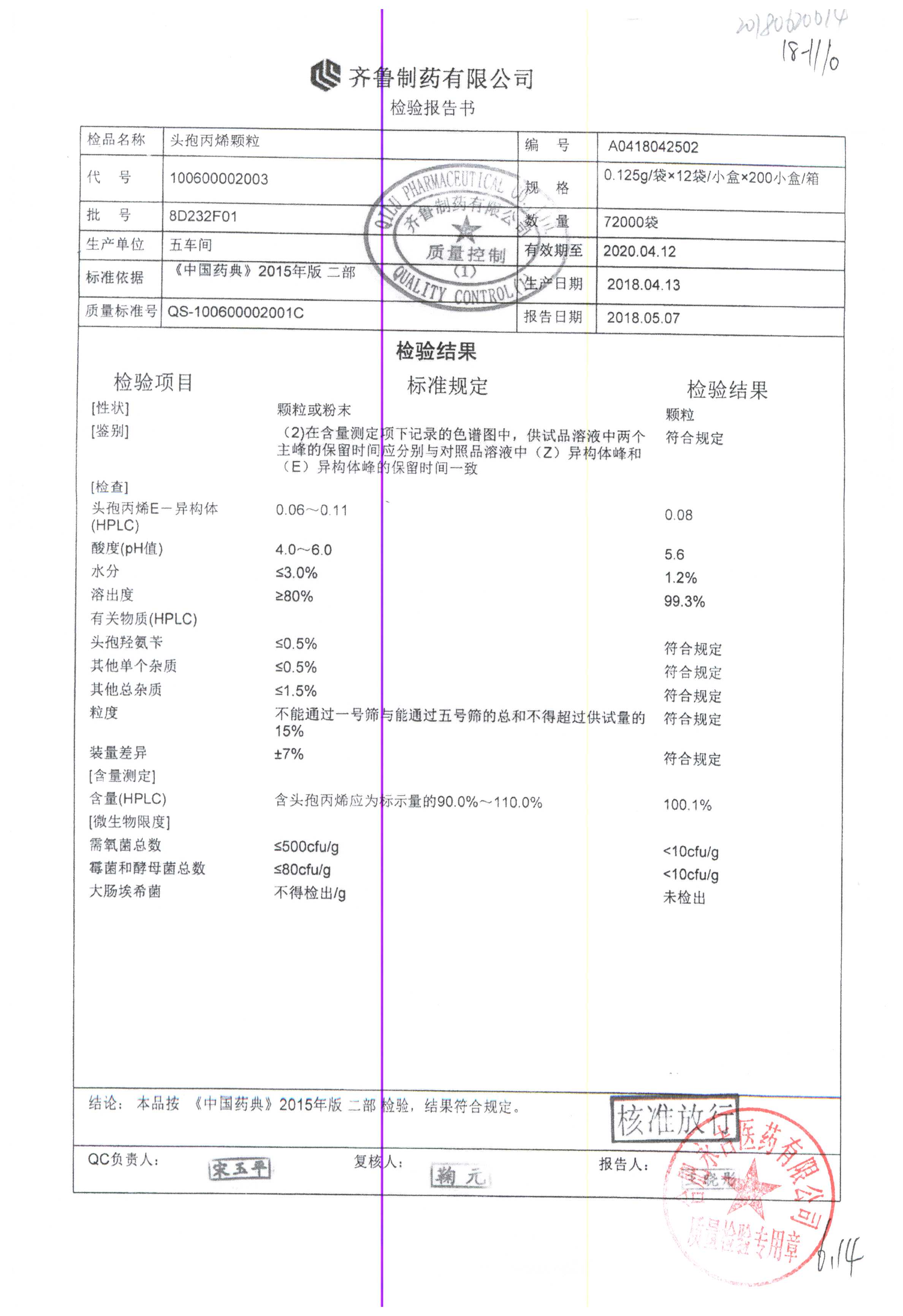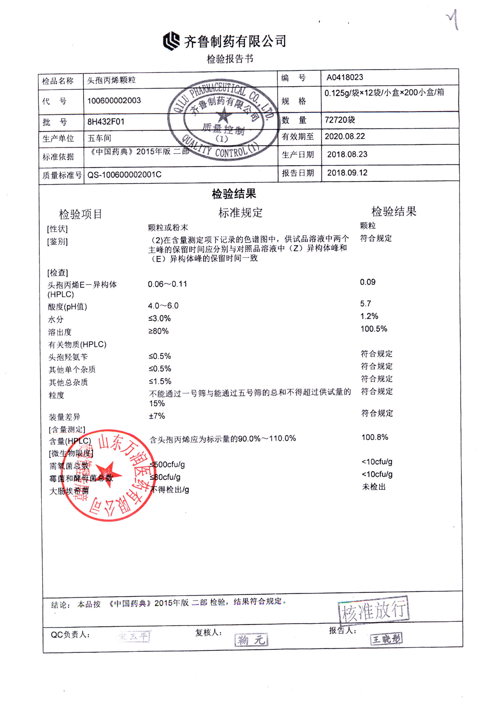| 頭孢丙烯顆粒 | 0.125g*12袋 | 8H420F01 | 查看詳情 |