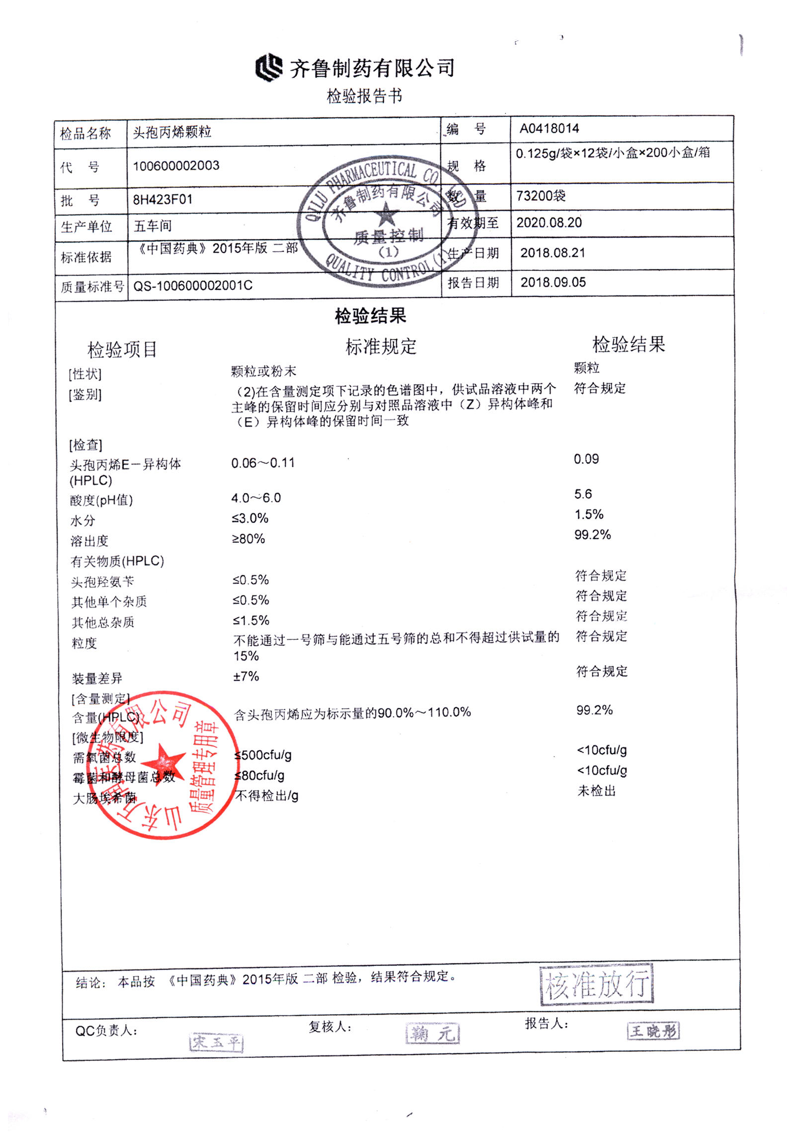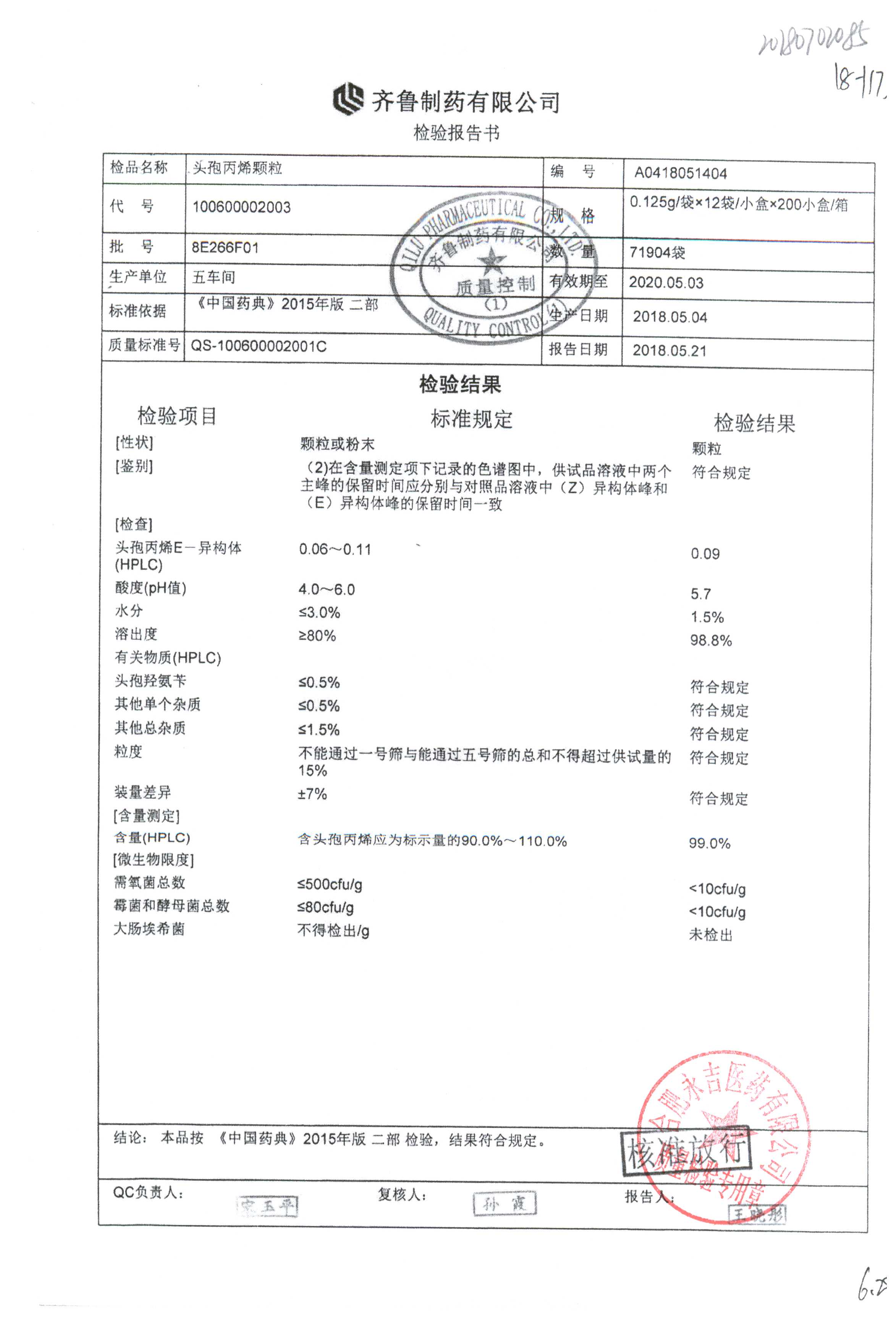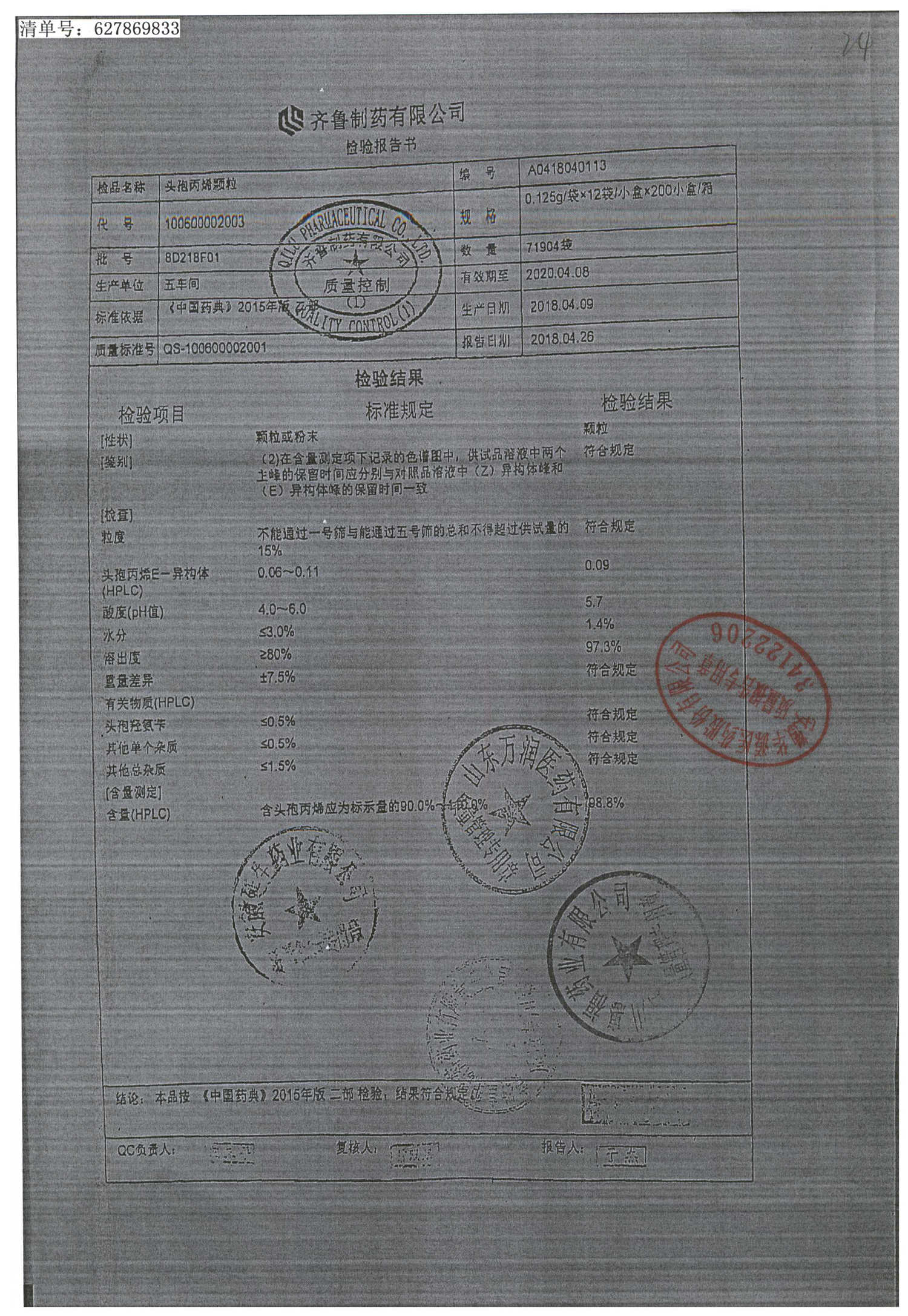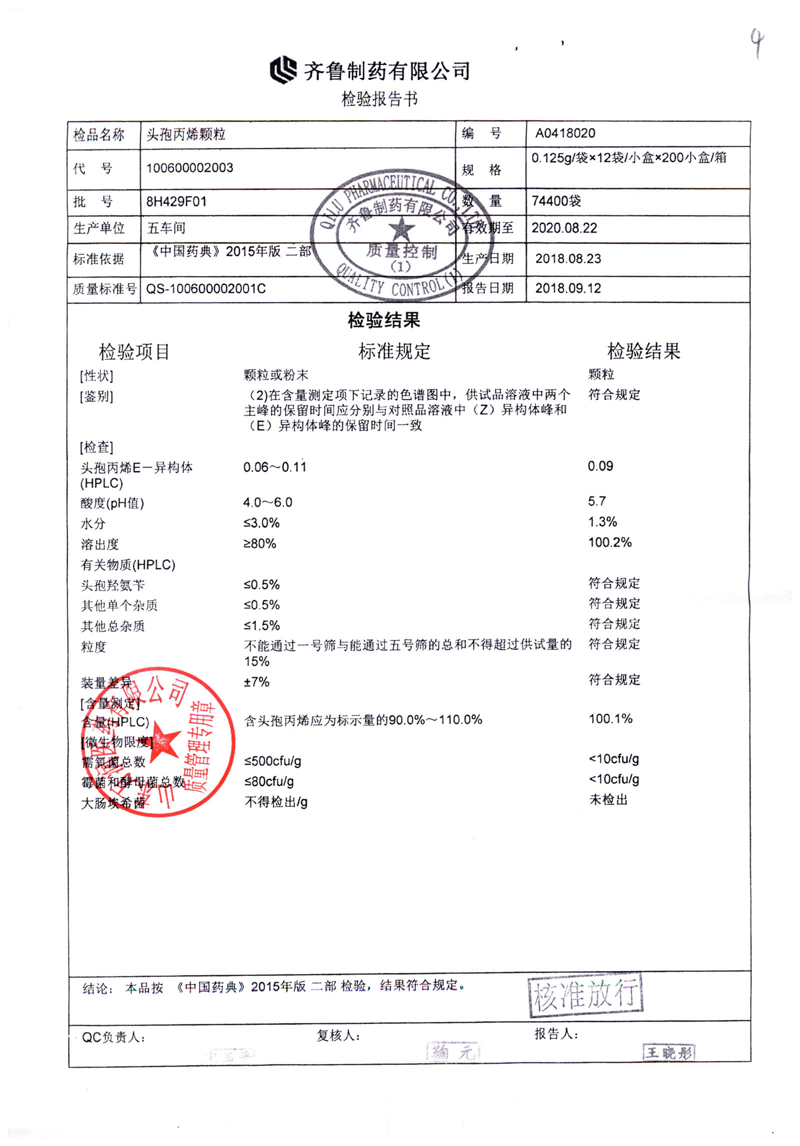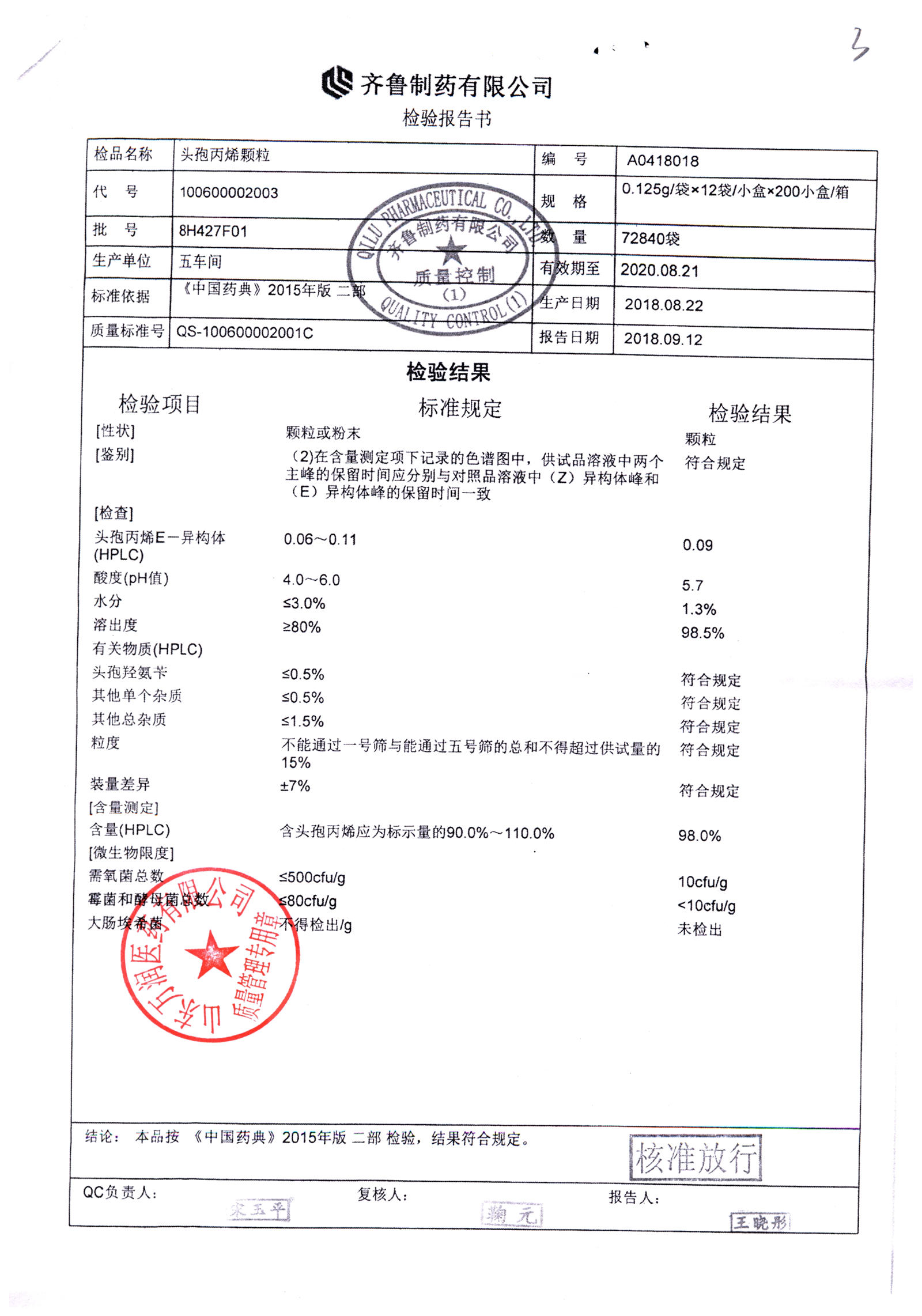 | 頭孢丙烯顆粒 | 0.125g*12袋 | 8H420F01 | 查看詳情 |